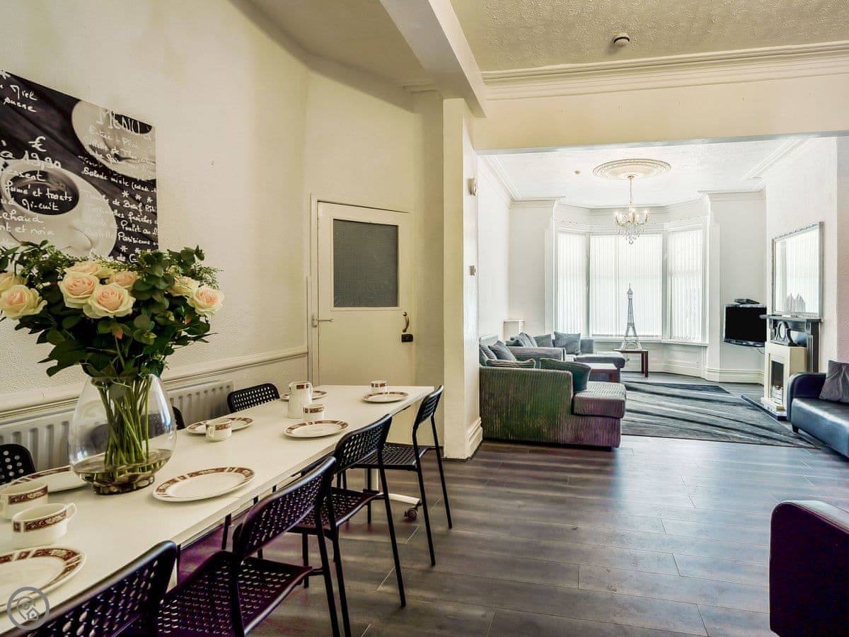 You're two minutes from the promenade at South Shore. The Pleasure Beach and the Sandcastle Waterpark are about ten minutes on foot. Blackpool Tower and the central attractions are about twenty minutes the other way. You can get the tram from just down the road.