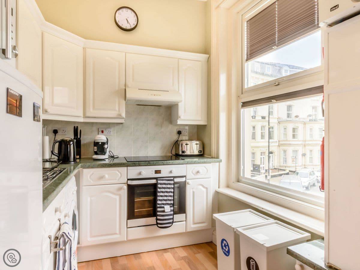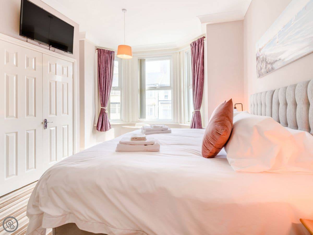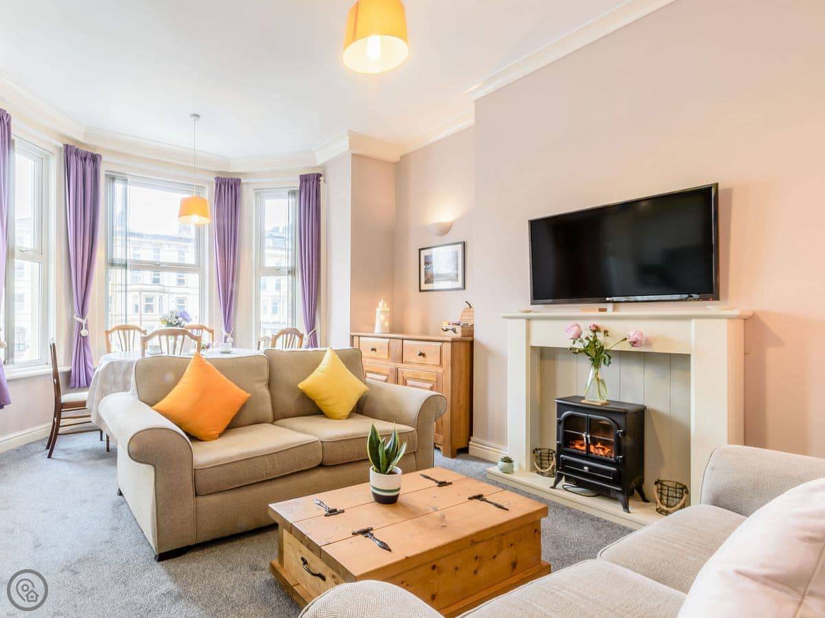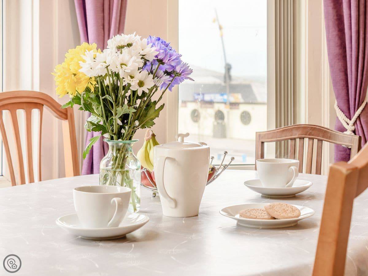 Buoy On The Bay is a first-floor apartment in a big Victorian house on The Crescent in Bridlington. It's about 50 yards from the beach. You get a good view of the sea and Flamborough Head from the front room.