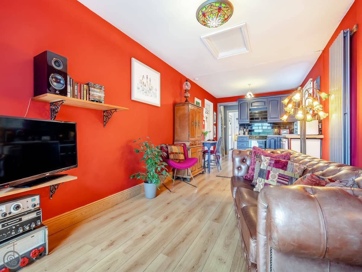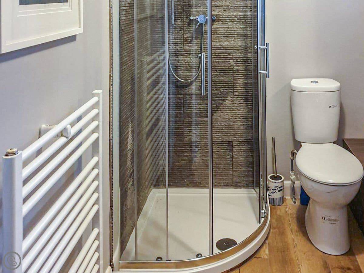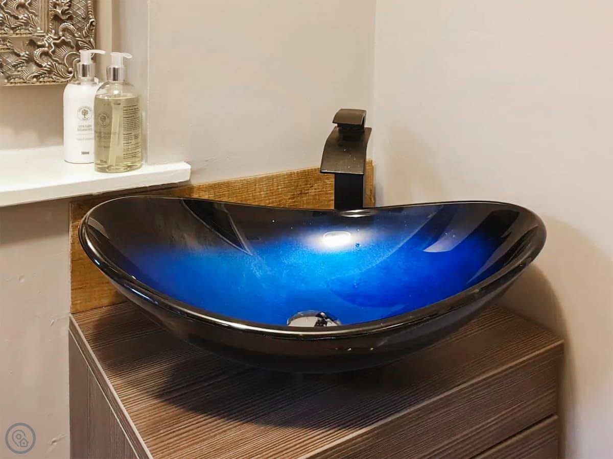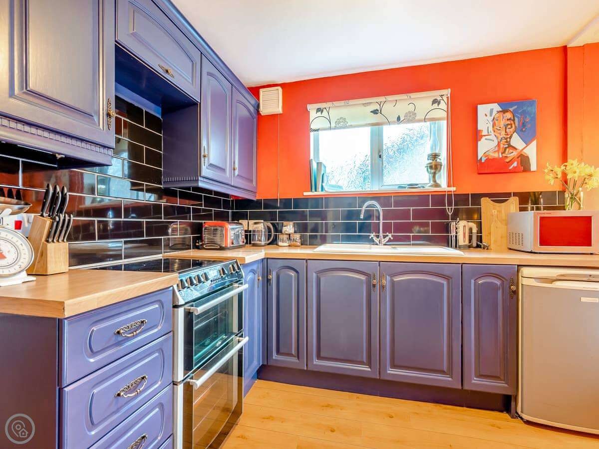It’s for four people. There’s one proper bedroom with a kingsize bed. The other double is a sofa bed in the living room. It’s a leather chesterfield and it’s comfortable, but it is a sofa bed. There’s one bathroom with a good shower. The kitchen has what you need. The WiFi is fast fibre.