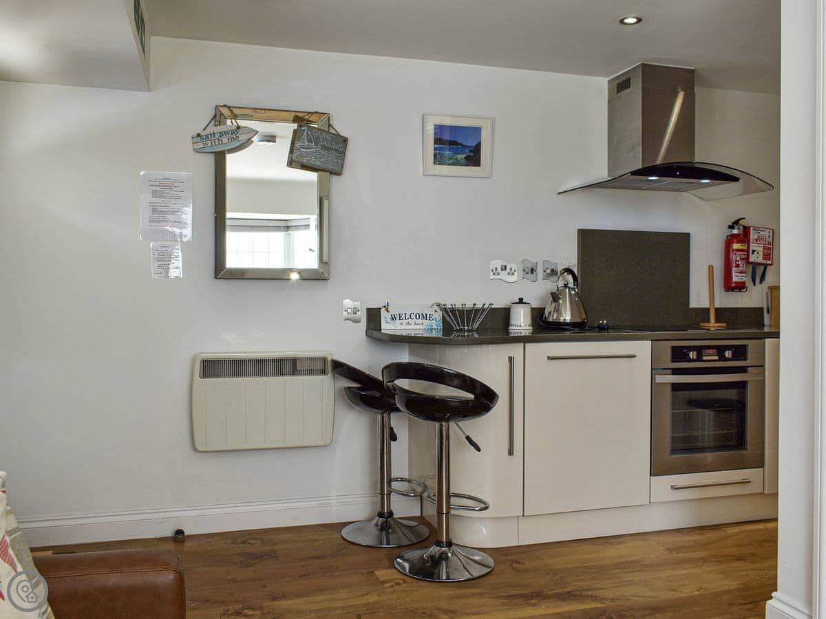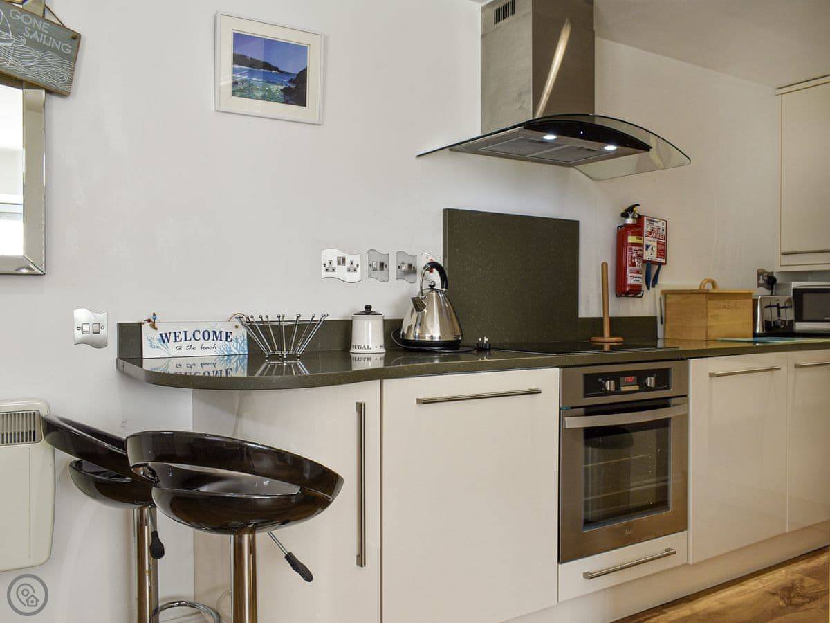 The place is called Trenpeskador. It's an apartment, one of three in a building called the Quarter Deck. It's right on Porth Beach. You step out the front door and you're on the sand.