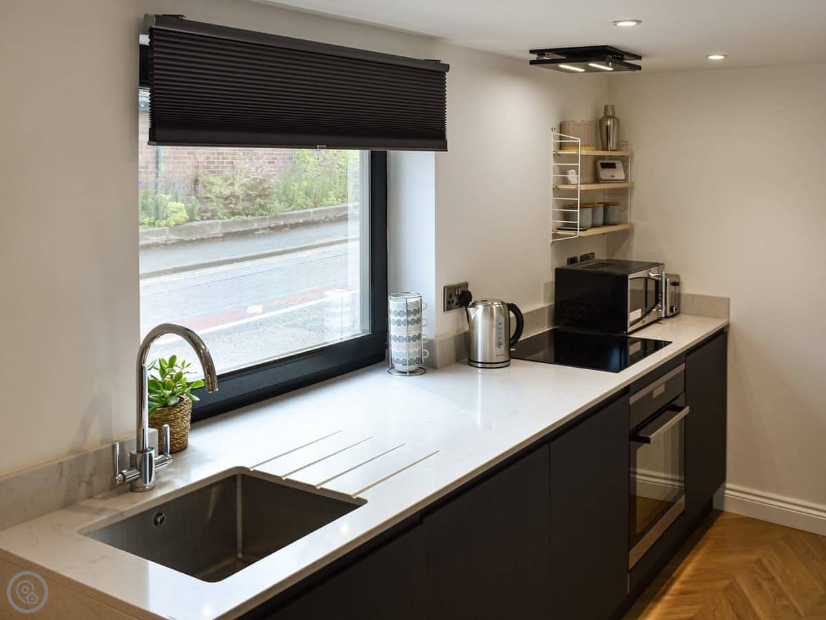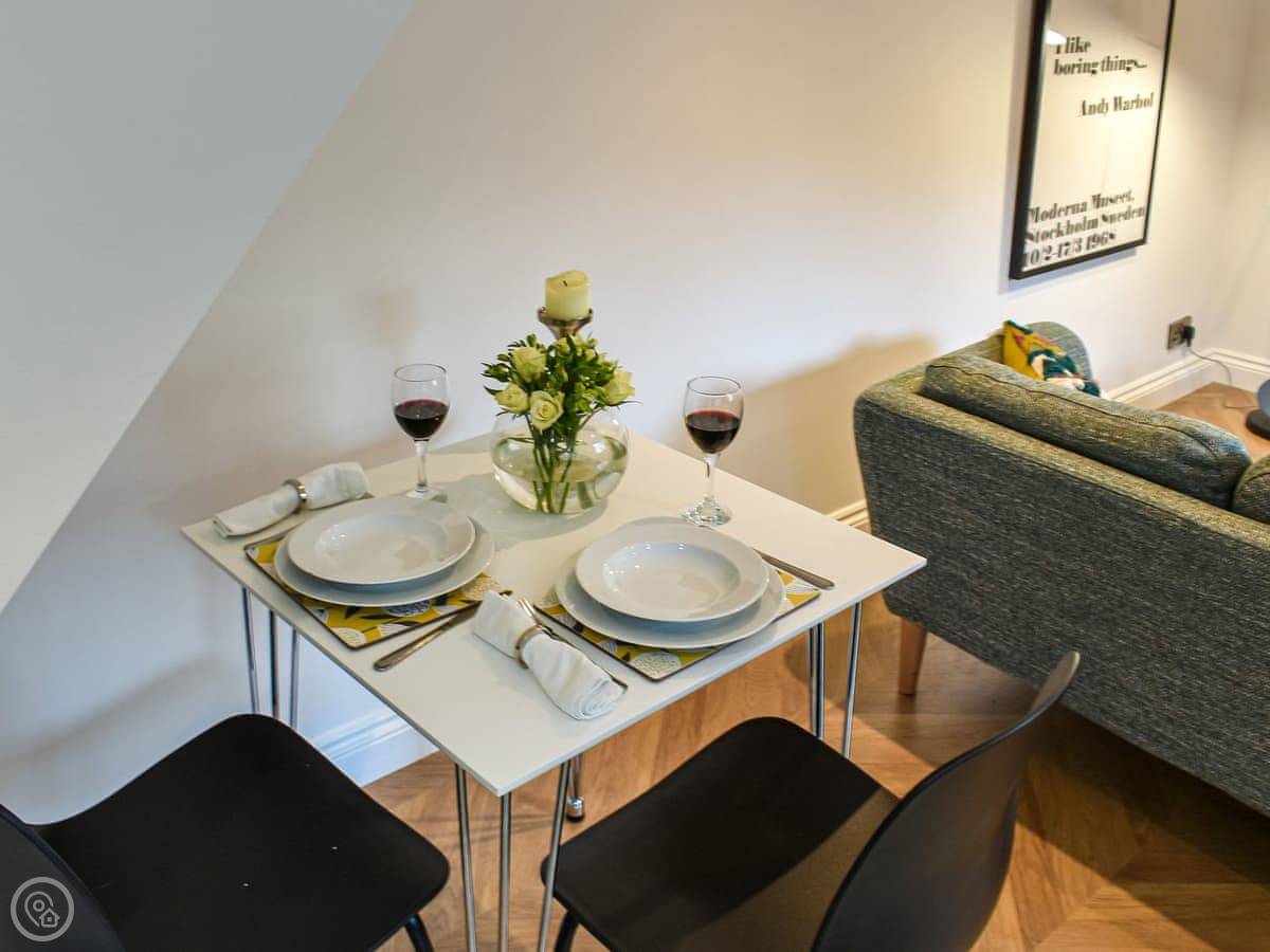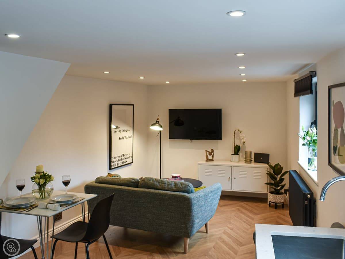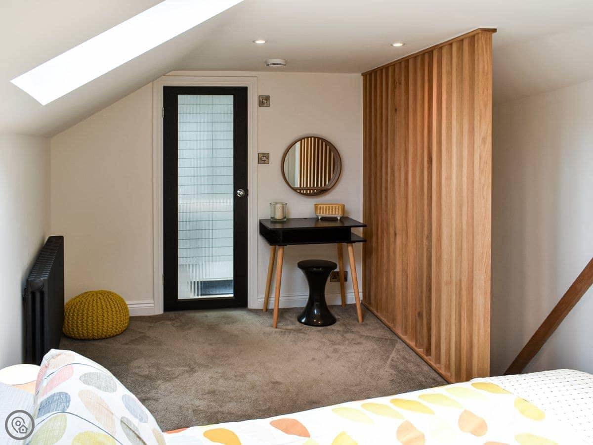 You enter the property into the open plan living/kitchen area on the ground floor. The kitchen is well equipped and well-presented and has all the necessities should you not wish to dine out at the many restaurants and pubs close by. The living area has a comfortable sofa which is great to snuggle up on in front of the Smart TV. Up one flight of stairs you have a good-sized bedroom with plenty of storage space and a plush kingsize bed with luxurious linen guaranteeing a perfect night’s sleep after exploring this stunning area. On the same floor is the stylish en-suite bathroom with contemporary white sanitary ware and large walk-in shower.