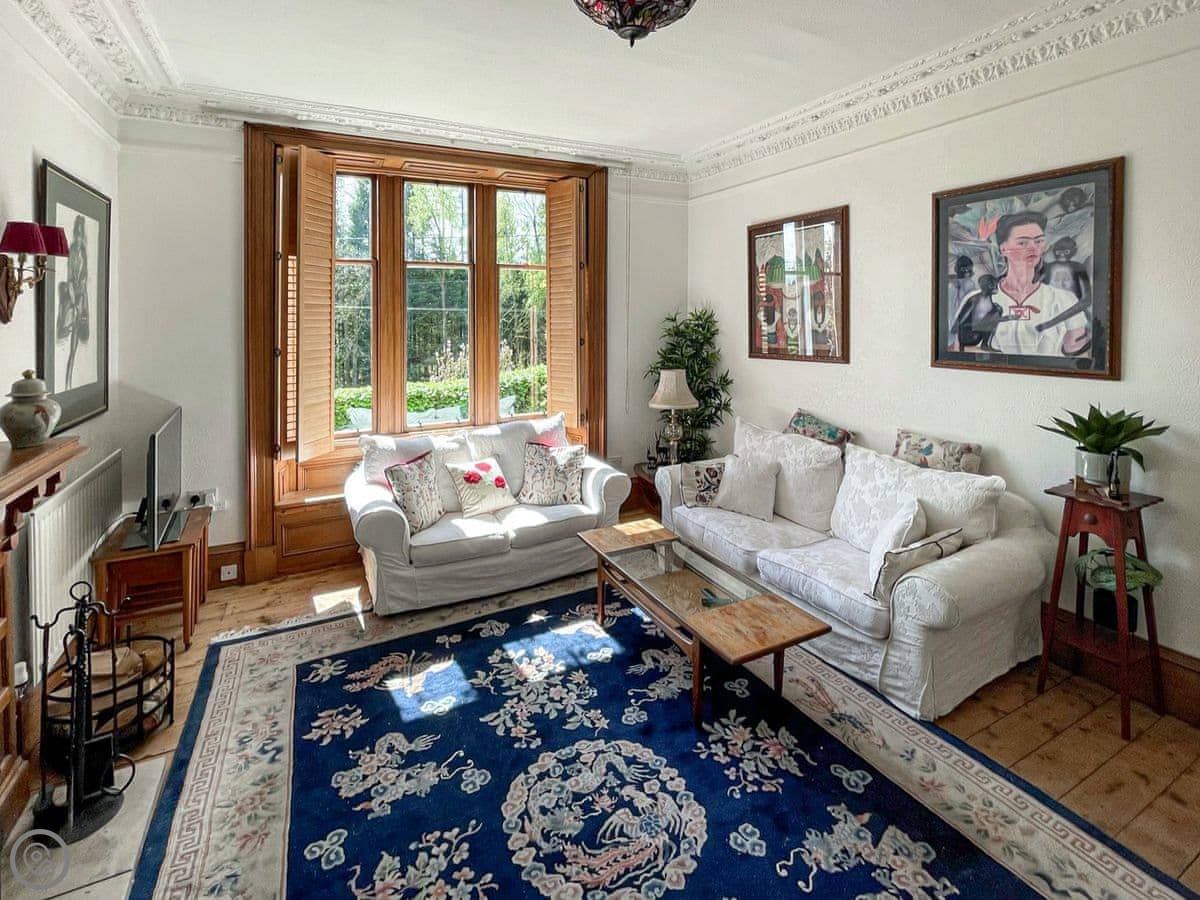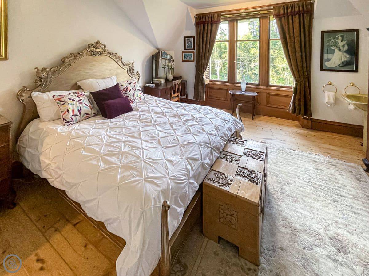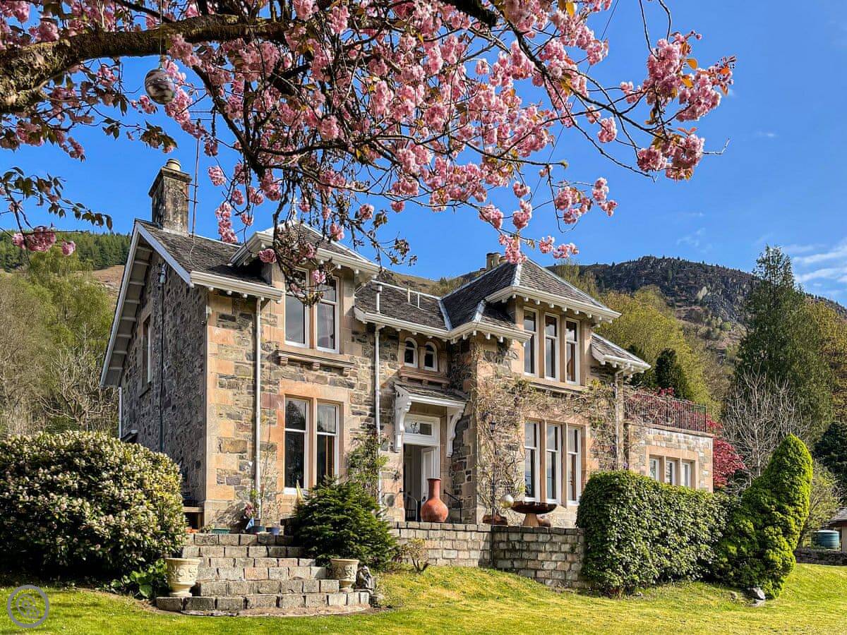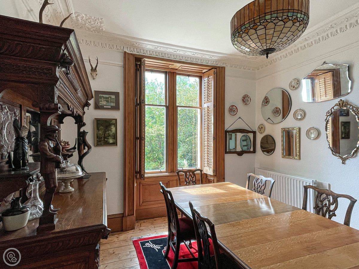 Avondhu House is a truly stunning Victorian Villa full of traditional character, set amidst large mature private gardens, combining woodland, mountain and river views in the heart of the Lomond and Trossachs National Park. Overlooking Loch Ard’s Avondhu river the Duchry and the river Forth, you’ll find an abundance of outdoor activities and wild nature on your doorstep. Nestled close to the foot of Craigmore mountain, its protected ancient forest, Loch Ard and forest; Avondhu House sits on a private plot of land providing an abundance of outdoor space in which to dine, relax and take in nature. Occasional visitors to the garden include wild goats and deer. The house itself is very spacious and retains original Victorian period features throughout offering two dining rooms, a living room, an office/reading room and five large bedrooms. Relax by the open fire in the living room or take advantage of the outdoor barbecue area and patios, there’s an option for any mood. As well as being in an area known for outdoor pursuits and the most stunning nature Scotland has to offer, the location is also popular with star gazers, due to light pollution restrictions, so do pop out onto the flat roof at night for a gaze at the stars against the back drop of the hooting owls and the sound of a gentle stream.