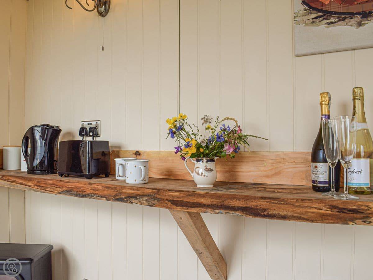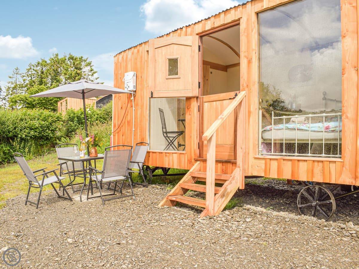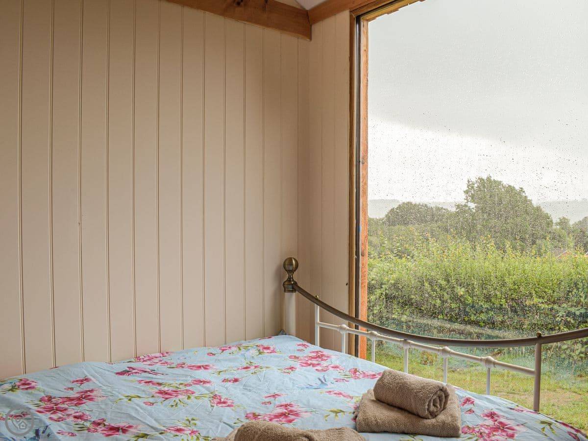 A delightful group of three shepherds huts offering guests a stunning, rural location with fantastic views over the surrounding countryside. These detached huts offer guests comfortable accommodation with spectacular views to the front. Set on a working farm, they are near to many areas of interest, such as The Elan Valley Dams at nearby Rhayader. They are within easy reach of Clywedog Reservoir and Powys Castle. It is an ideal spot for birdwatching, cycling and walking, and the west coastline is only an hour’s drive away. Other attractions include Lake Vyrnwy, source of the Severn, Hafren Forest, Plymlimon Hills and Devils Bridge. This is also a great base for the Royal Welsh Show in Llanelwedd. Close by are towns such as Newtown and Llandiloes which both host an array of bars, shops, and restaurants, and also a good range of takeaways which guests can use and enjoy at the property. The Cider Pressers Hut can be booked together with The Shearers Hut and The Sawyers Hut to accommodate up to 6 guests.