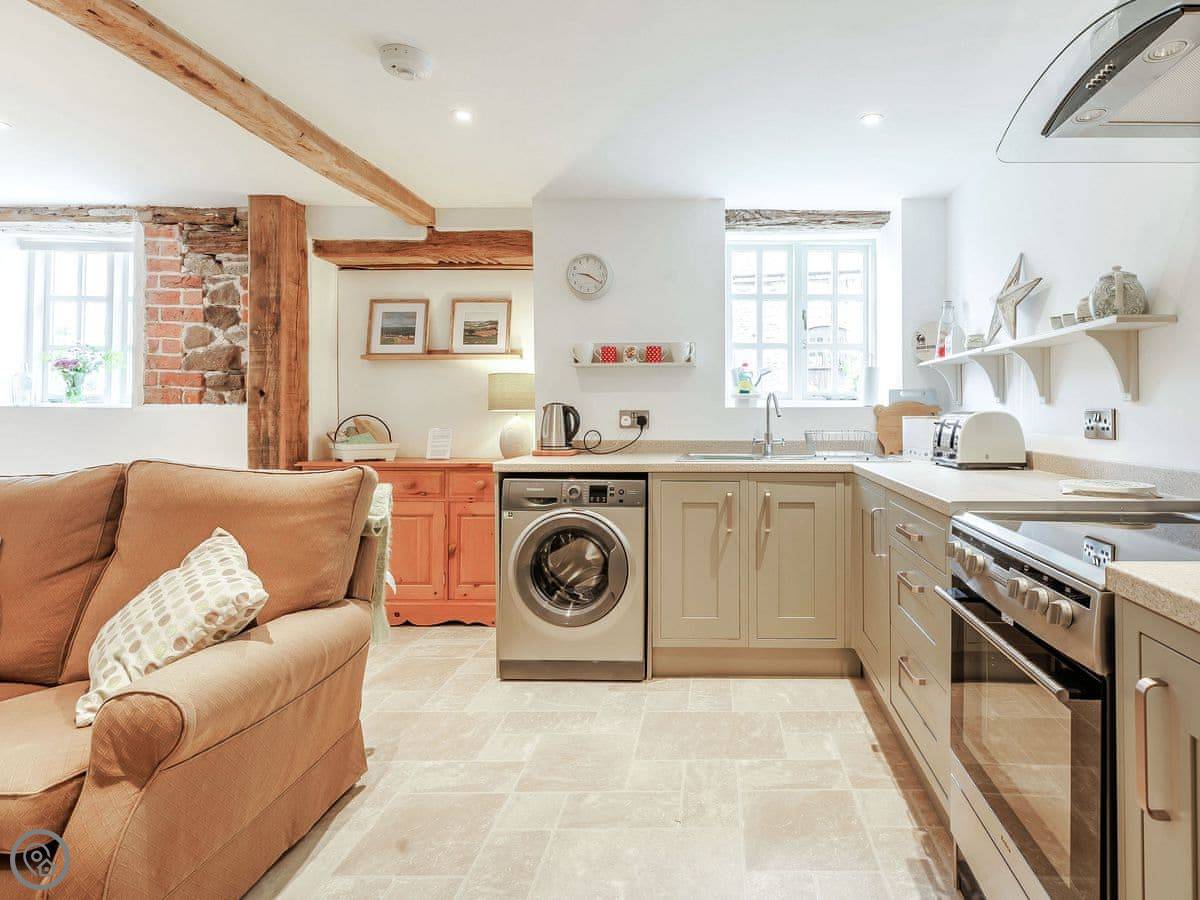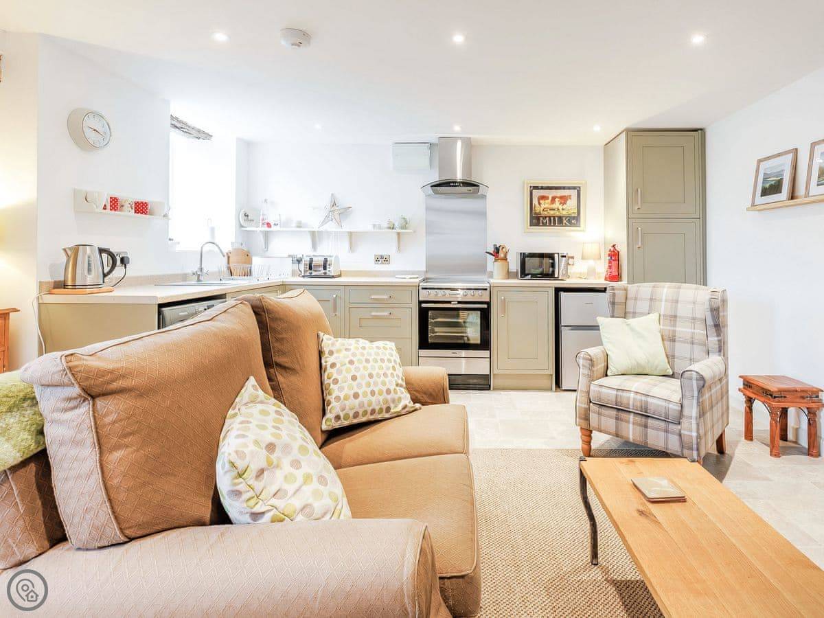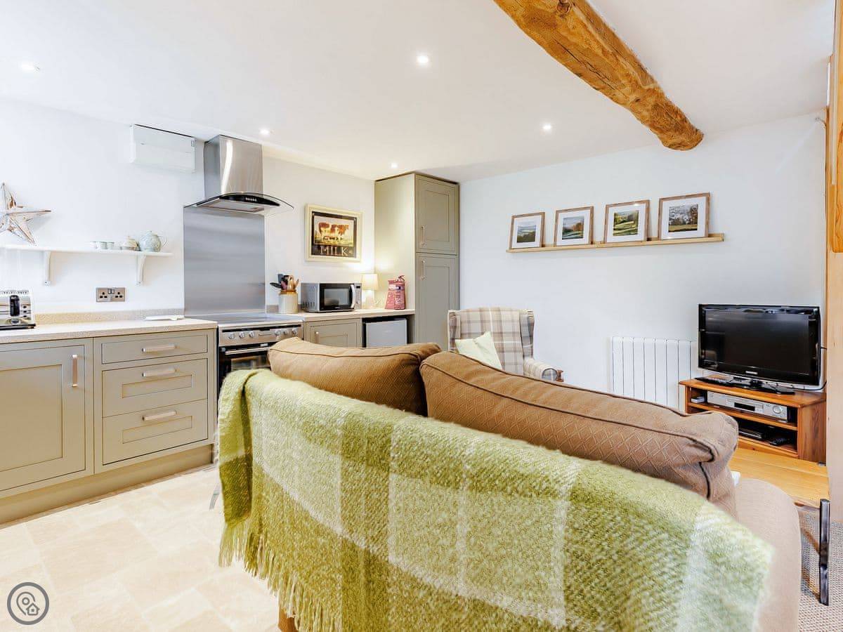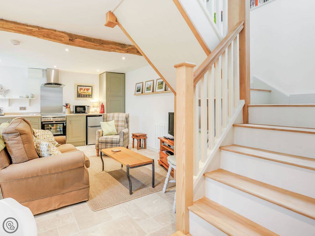 This fabulous barn conversion, which has been renovated to a high standard in 2021 and in keeping with the character of the building, has some lovely features which will be appreciated by all. The property consists of an open plan living space with a living area, dining area and a fully equipped kitchen. To the first floor there is a large bedroom with a kingsize bed, exposed beams and stone walls, with en-suite shower room and heated towel rail. Outside and to the front of the property is an enclosed garden with seating area. The property has a bike rack and heated area for those wanting to keep their bicycles inside the property.
