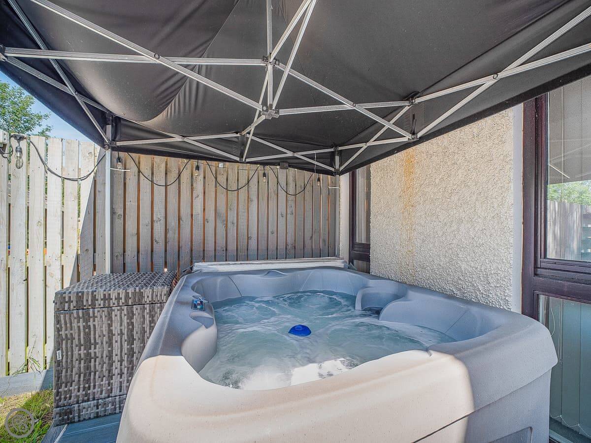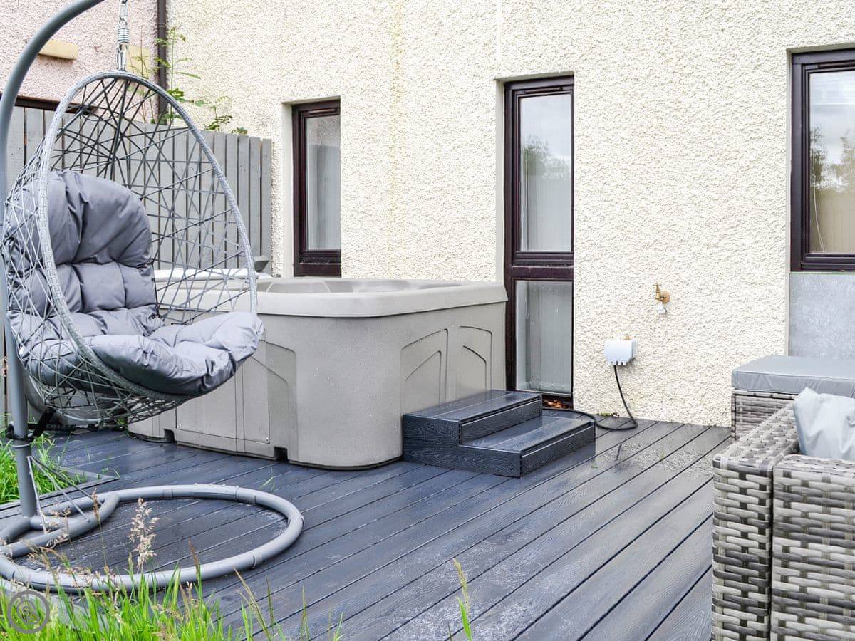 It sleeps six, with three bedrooms. There's one bathroom with a shower. It's got a 4 Star rating. The main space is open-plan. Patio doors open out to your own enclosed garden. There's a hot tub out there.