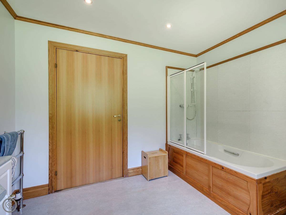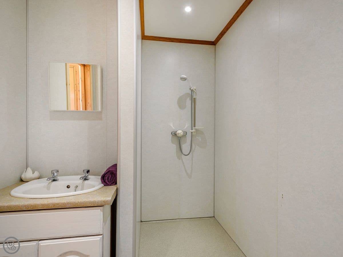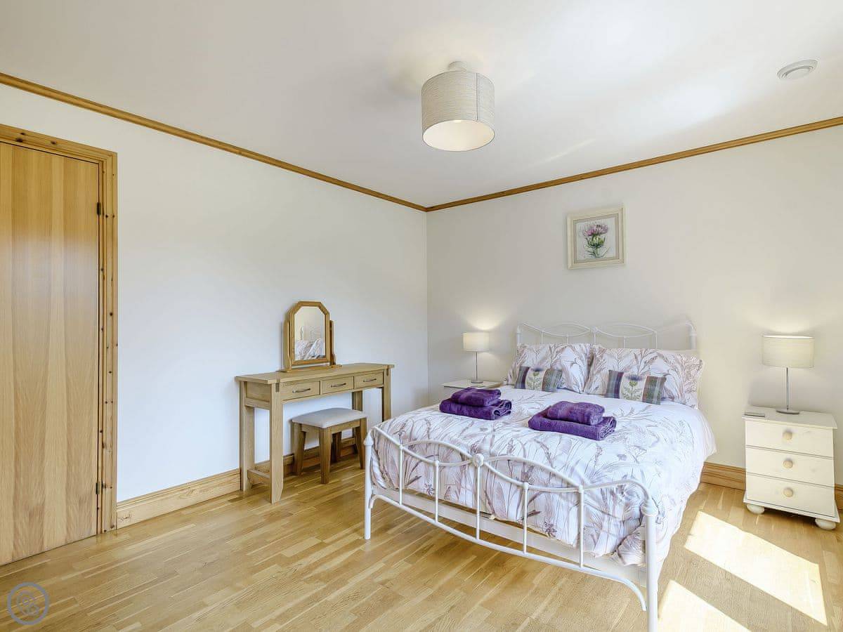 It sleeps six, in three bedrooms. There are two bathrooms, and one is a wet room on the ground floor. The whole place is wheelchair accessible, which means no steps and wide doors. It's a detached bungalow, so you're on your own.
