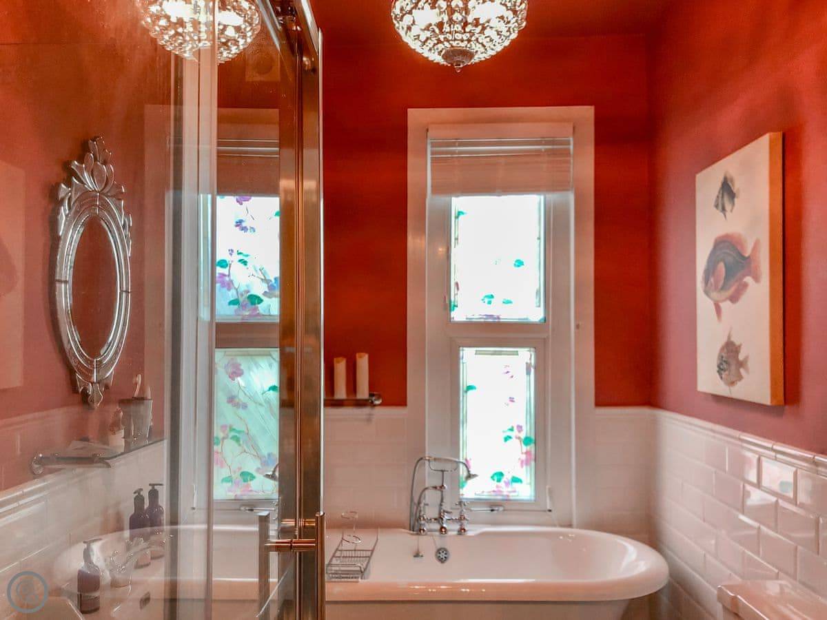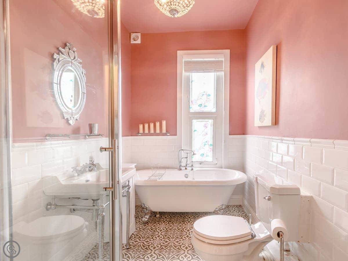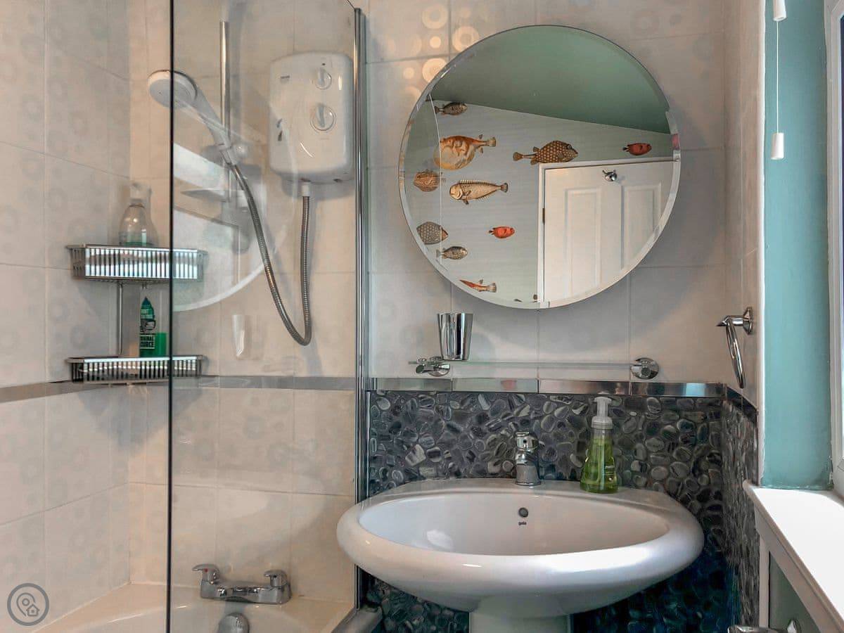 It sleeps eight over four floors. There are two king bedrooms and two twin bedrooms. One bathroom is downstairs, with a shower. The other bathroom is on the first floor and has a roll-top bath and a separate shower cubicle. It's a 4 Star rating, so it's comfortable and well kept.