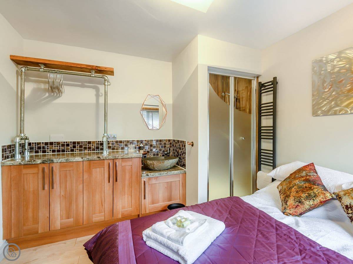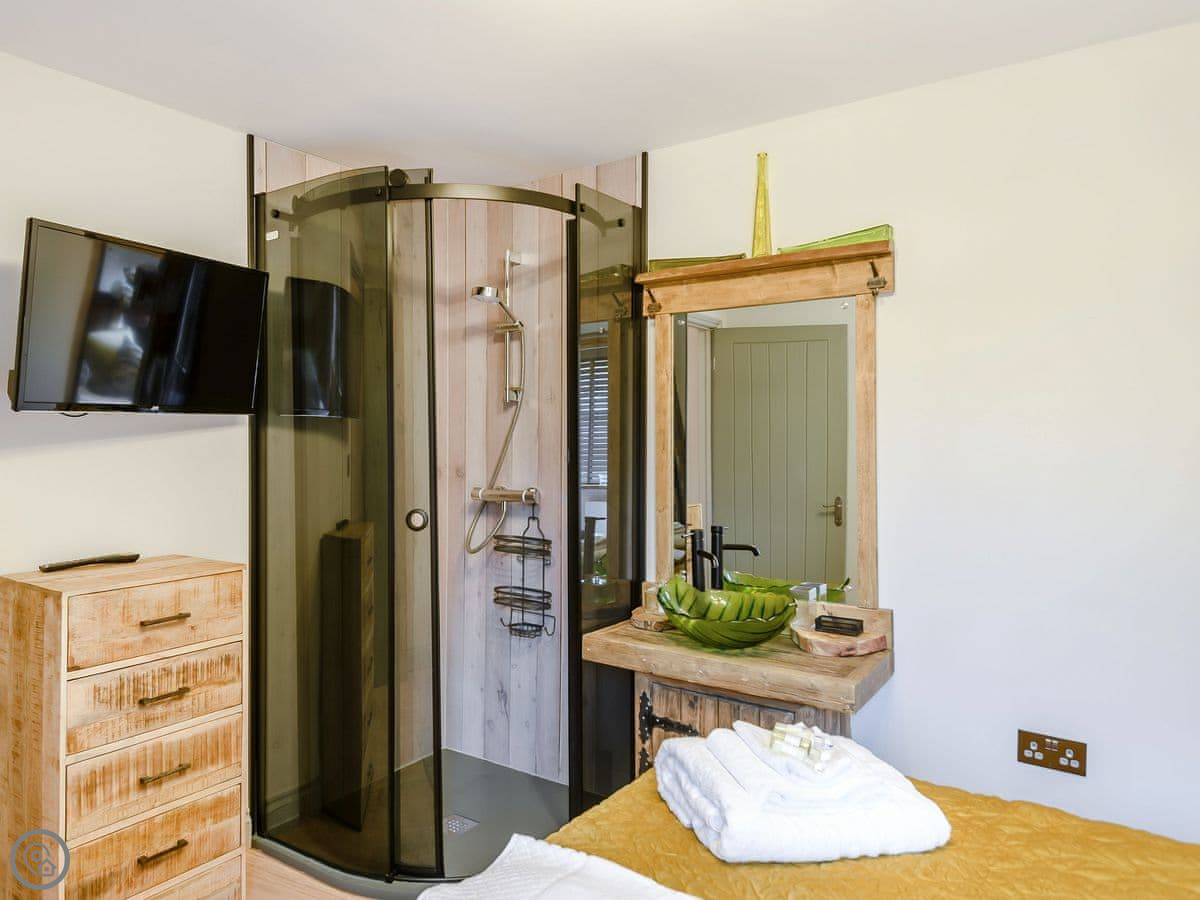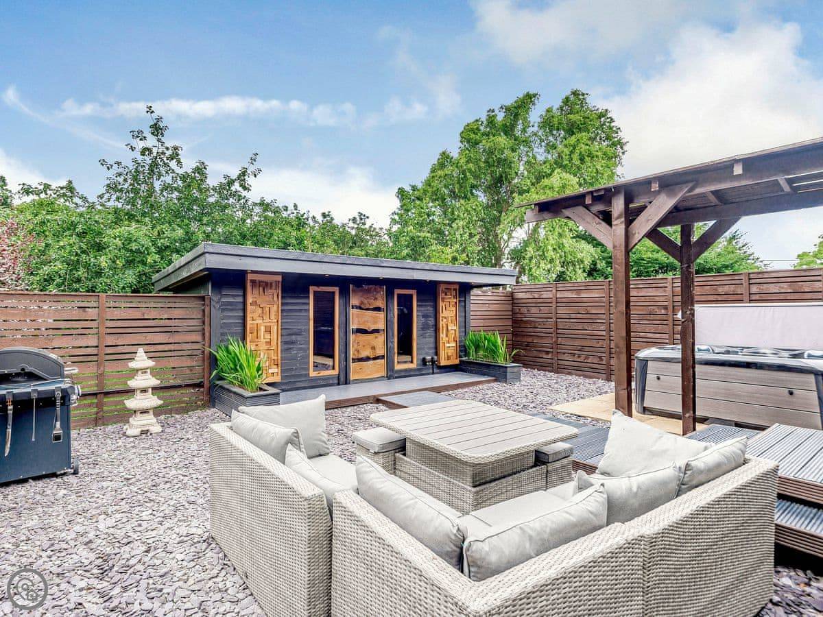 A truly unique lodge fitted out with comfort and quality in mind to make for a lovely relaxing stay with both bedrooms having their own en-suite shower room. Not only is there a hot tub, sauna, gas fire pit and barbeque, but also a large garden room to sit back and relax in. There is also an ice bath that can be provided on request.