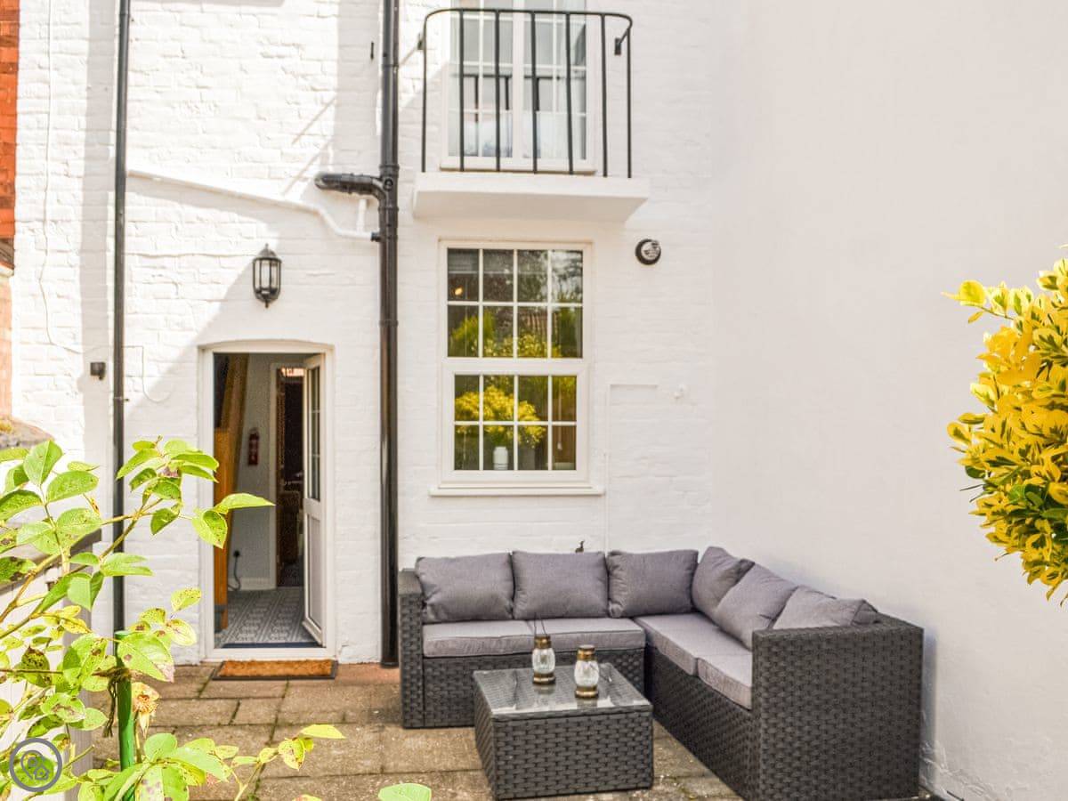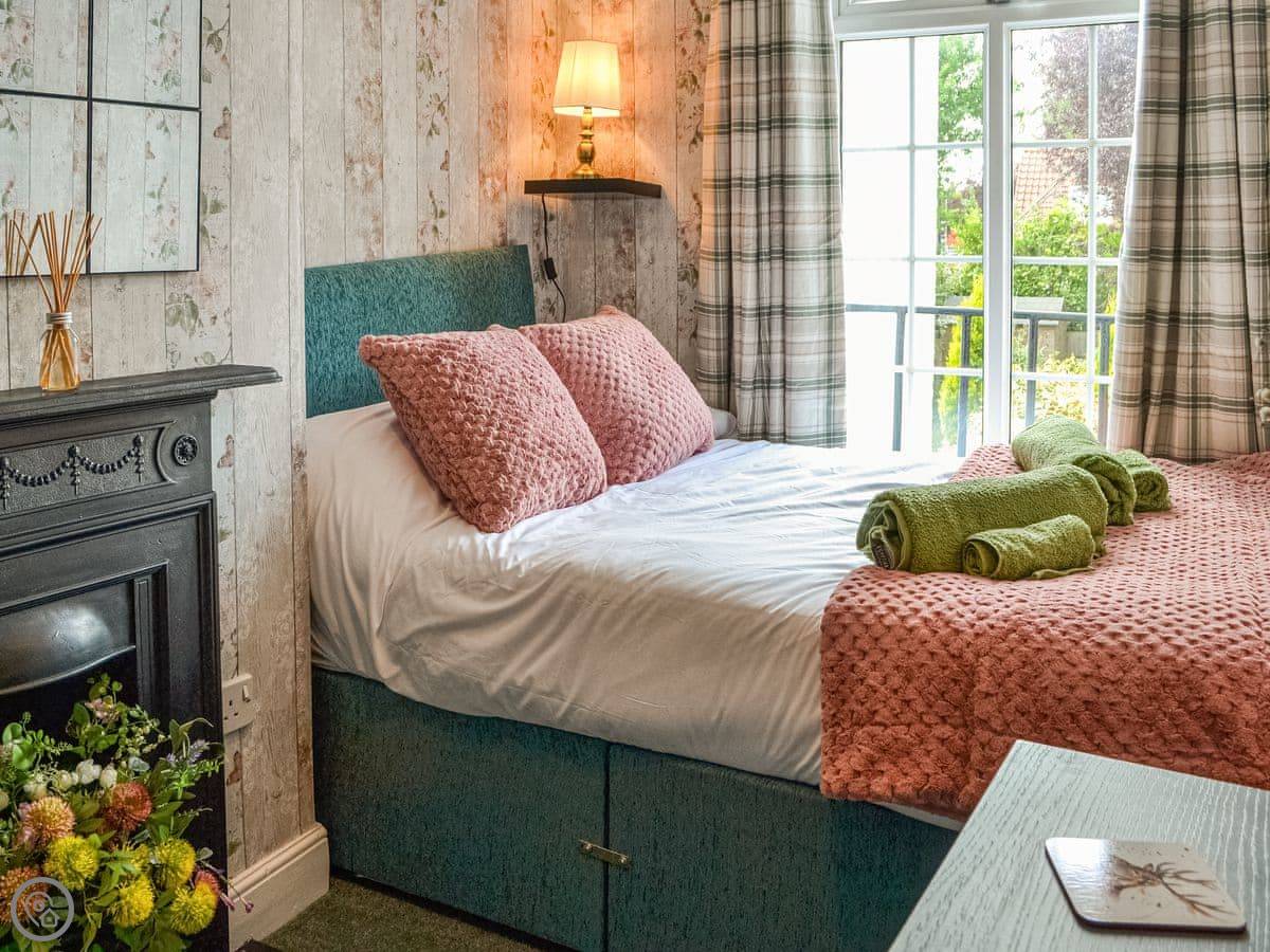 In the corner, the stairs lead up to the first floor. The house bathroom which offers a bath with shower over sits between the two beautiful bedrooms. You can take your pick from a king-size double room which is decorated in tones of silver and dusky pink or a double room with a Juliette balcony overlooking the garden. Both bedrooms retain the original feature fireplaces and offer luxury soft furnishings. White Cottage has a lovely cottage garden to the rear. A patio with seating sits close to the house and a neatly trimmed lawn with mature borders make up the rest. Enjoy an early morning coffee whilst planning the day ahead, or perhaps partake in an alfresco evening meal.