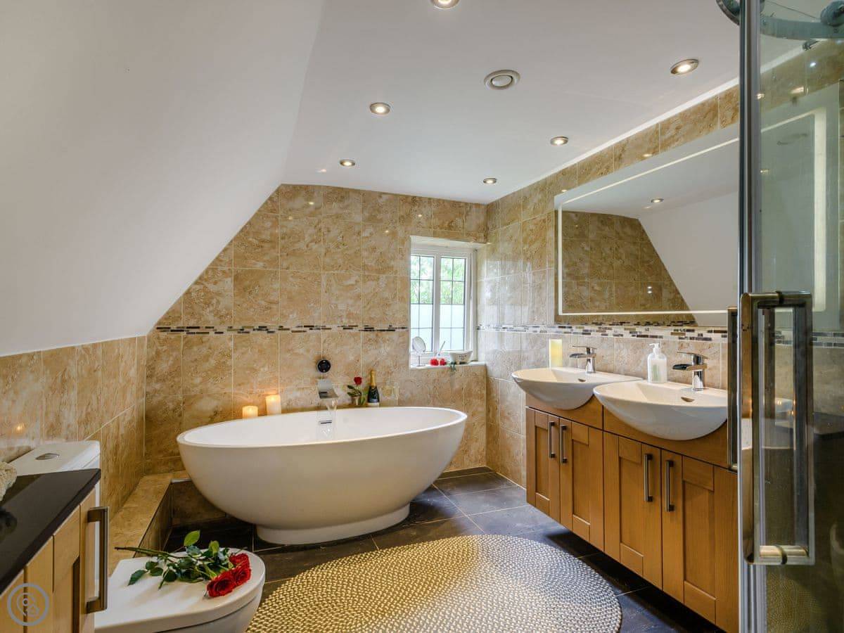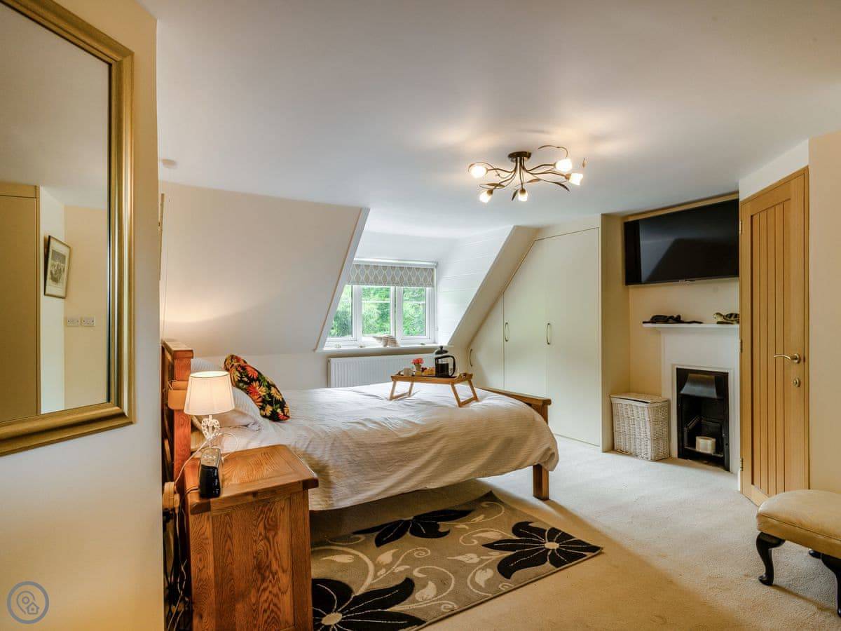 Facilities wise: it's got a washing machine, dishwasher, WiFi, and bedding is included. There's on-site parking. You can bring up to three dogs. There's also a hot tub in the garden, away from the house.