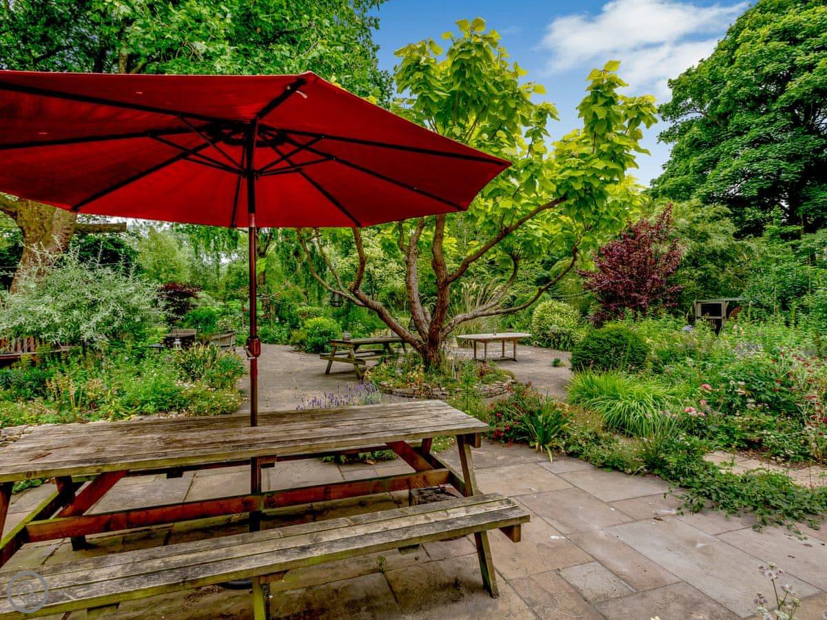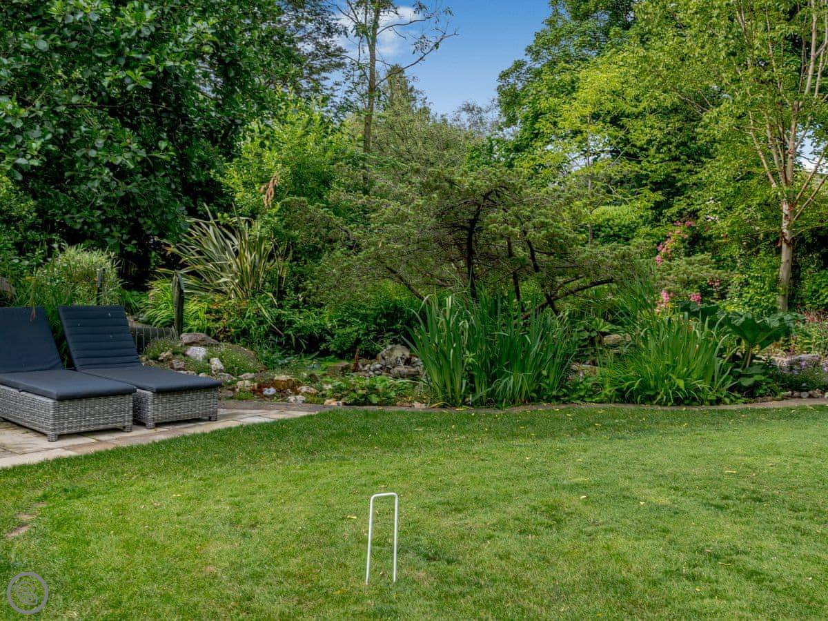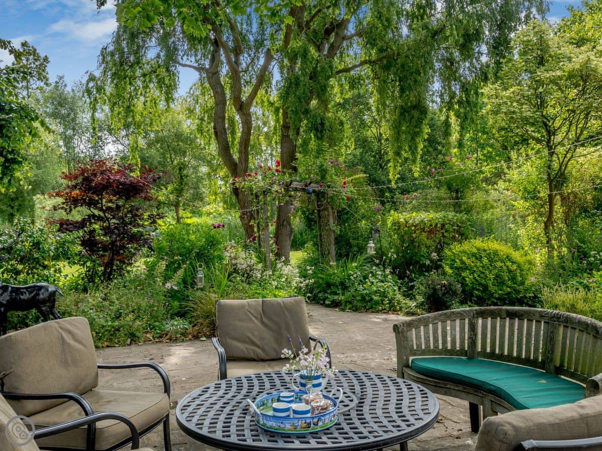 A couple of things to know. There are two staircases to the first floor. One of them is quite steep, as you'd expect in an old place. And because of the streams and ponds, you'll need to keep an eye on children and dogs. The garden gets a lot of sun but there are shaded bits too.