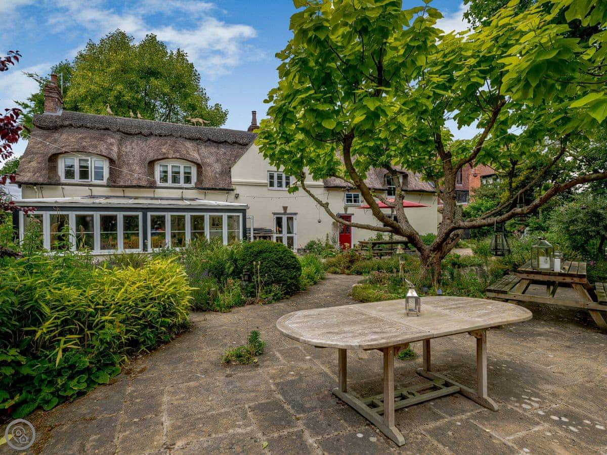 The Mowle is a thatched cottage in Ludham. It's old, built around 1550. It's detached and sleeps up to ten people, across five bedrooms and three bathrooms.