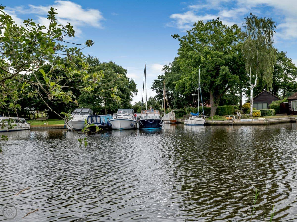 Ludham village has a shop, a post office, a pub, and a butcher. It's a good base. You can hire boats locally at places like Potter Heigham or Horning, which are a short drive away.