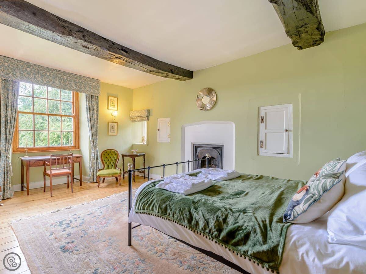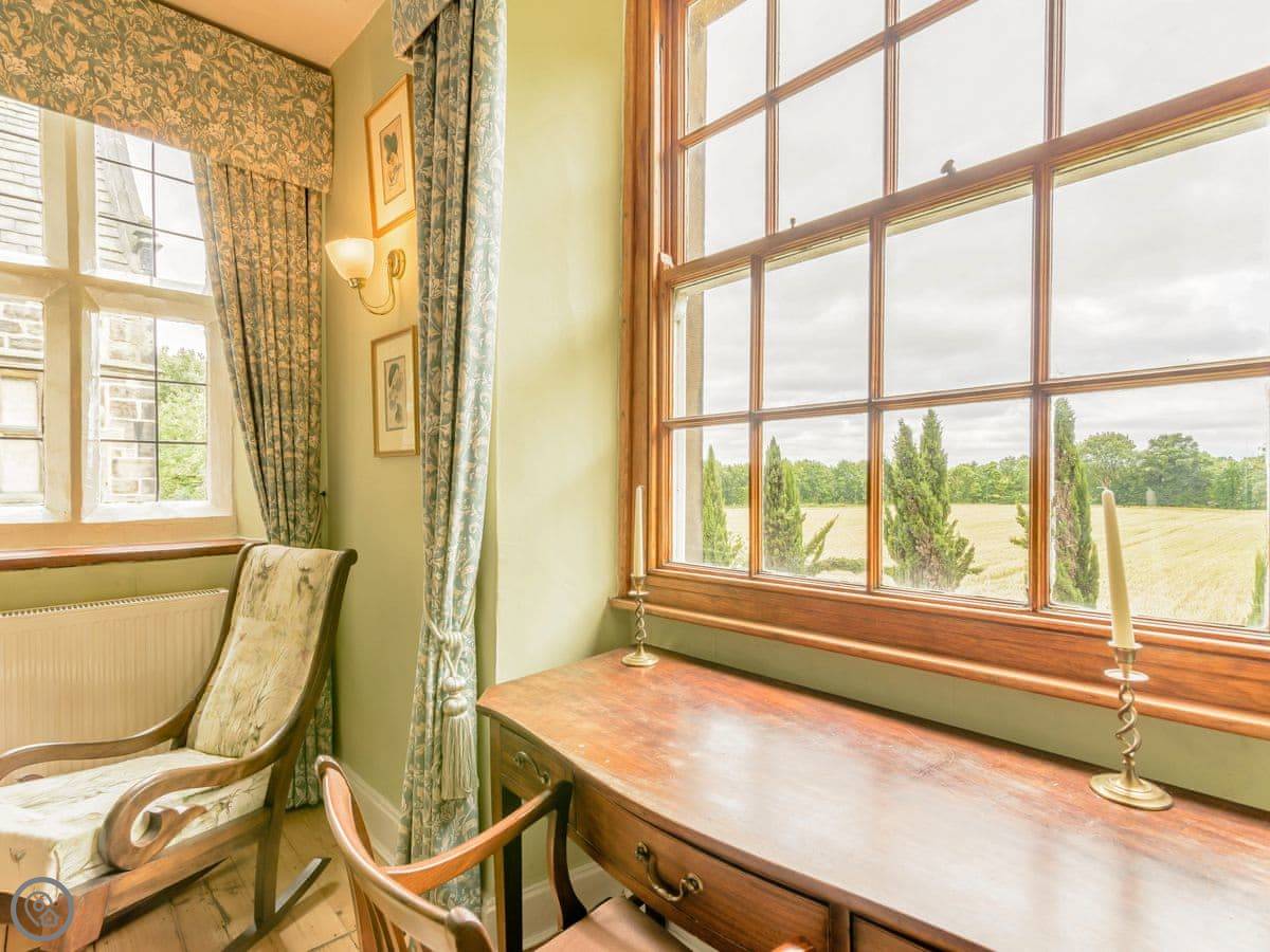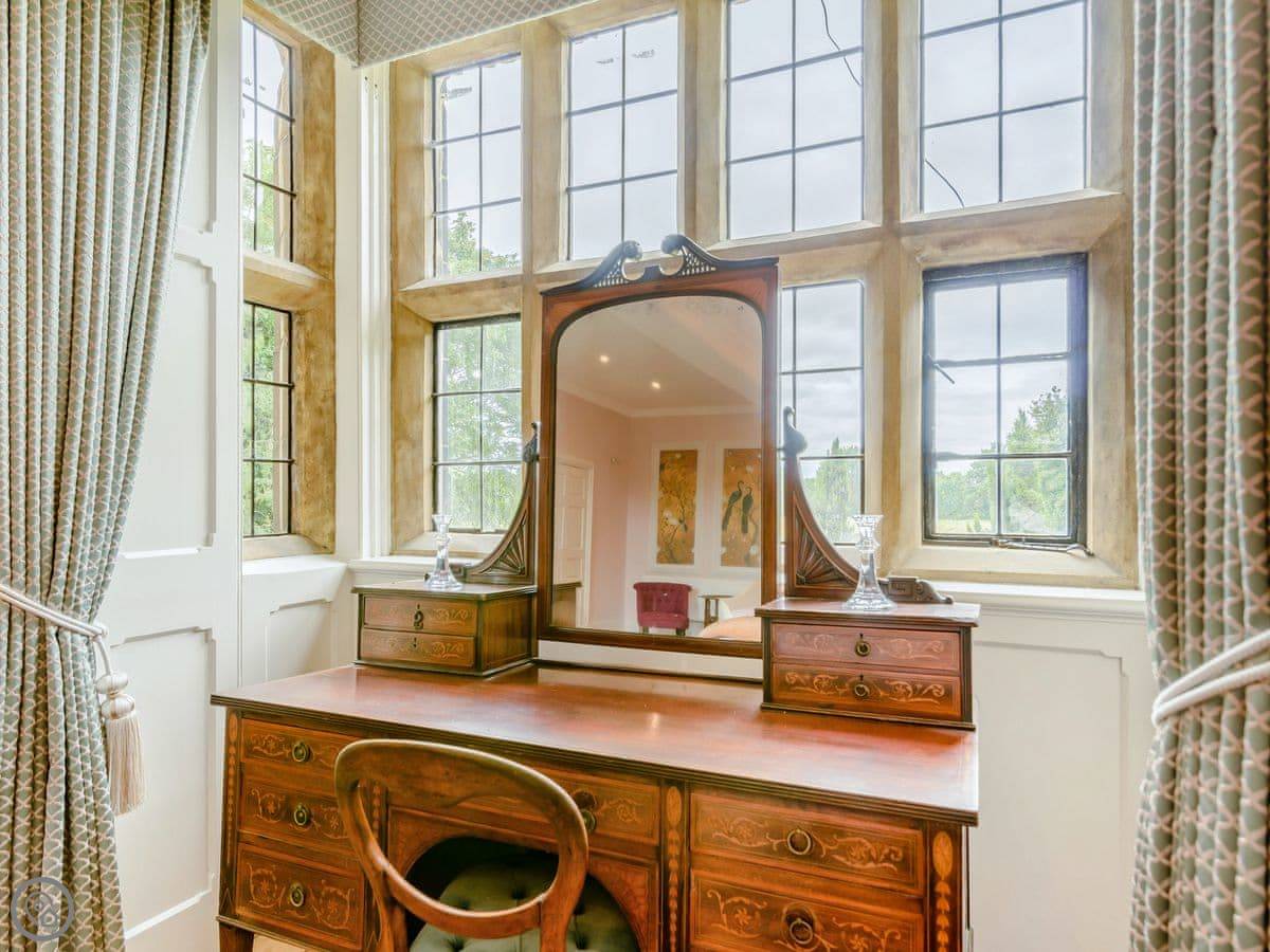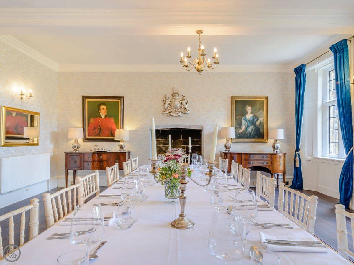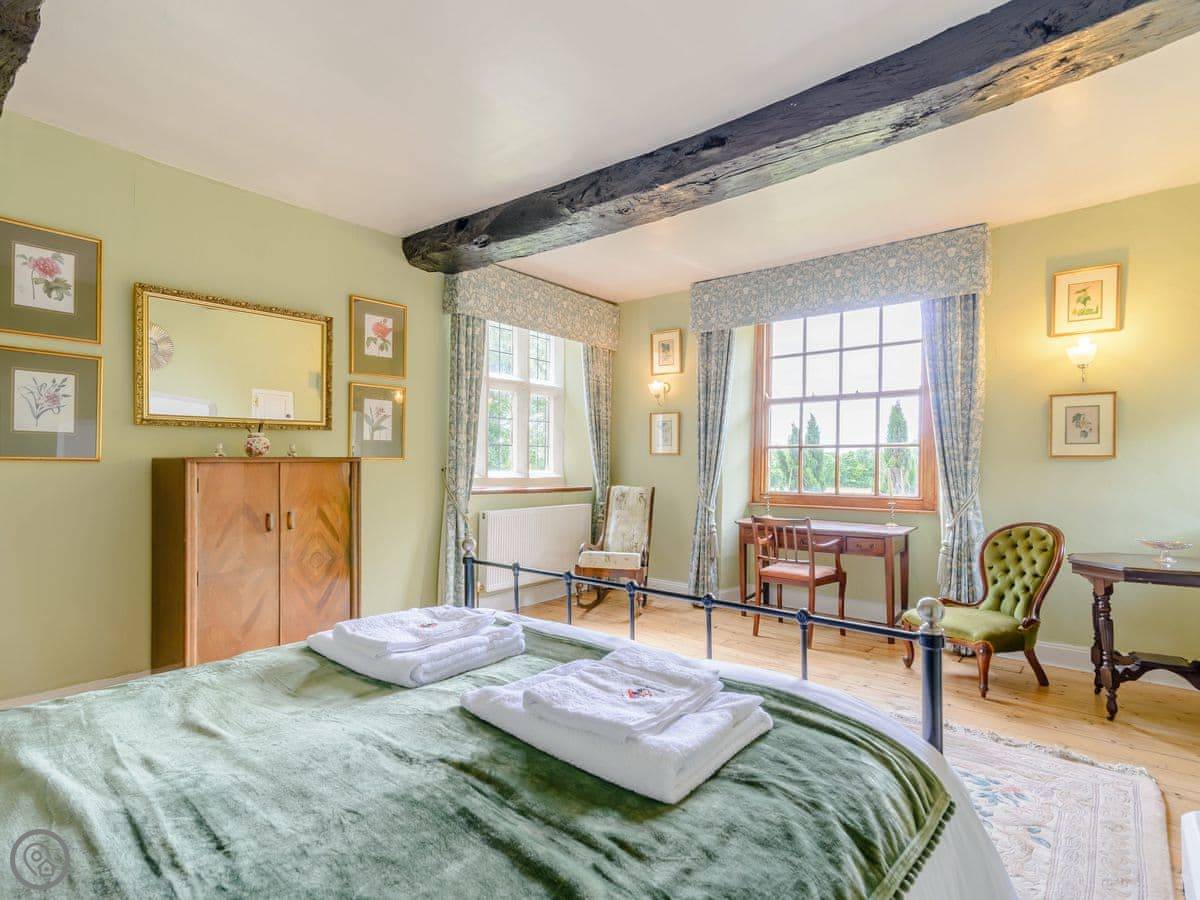 It sleeps eight, but there are only three bedrooms. They're large suites really, each with its own bathroom. There's a fourth bathroom downstairs too. One room is called the Cromwell Room. He did apparently stay here. The Queen's Chamber is another. The story is Mary Queen of Scots stopped here. They're just bedrooms though, comfortable ones.