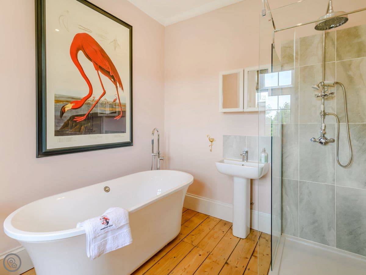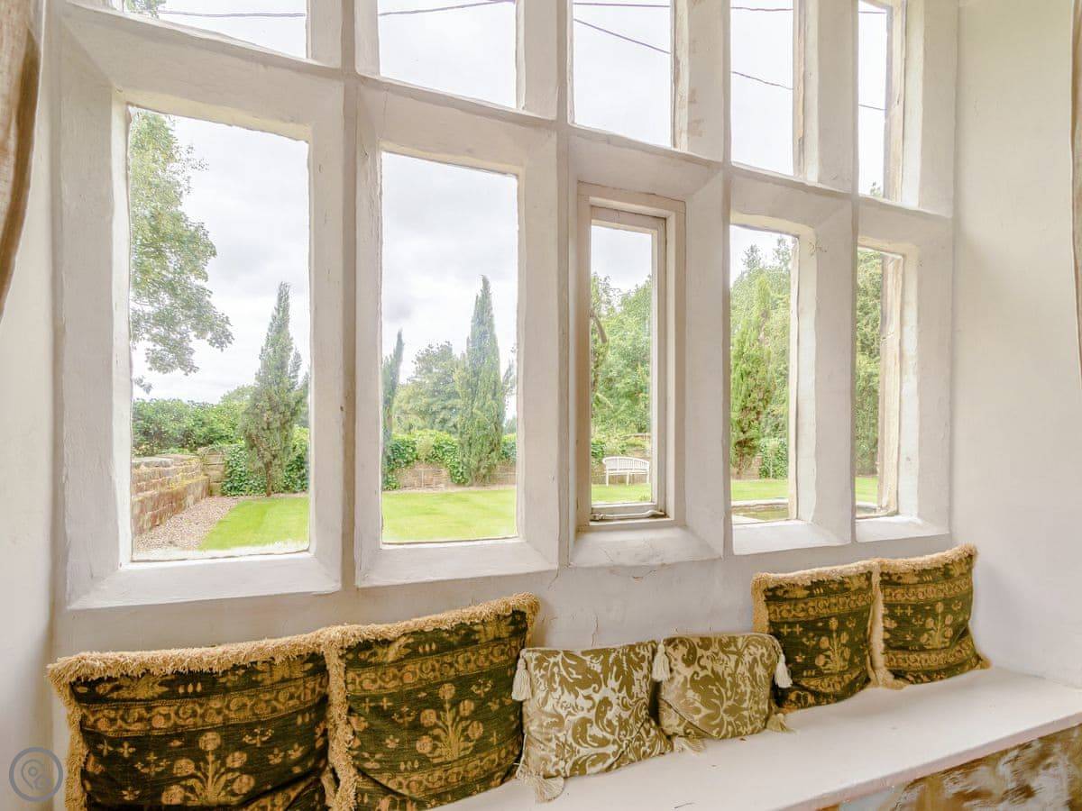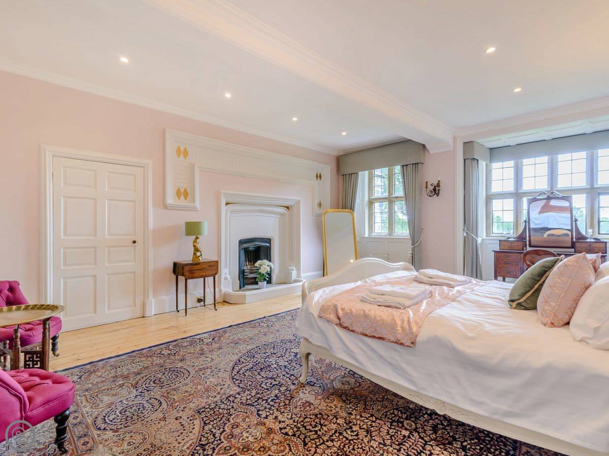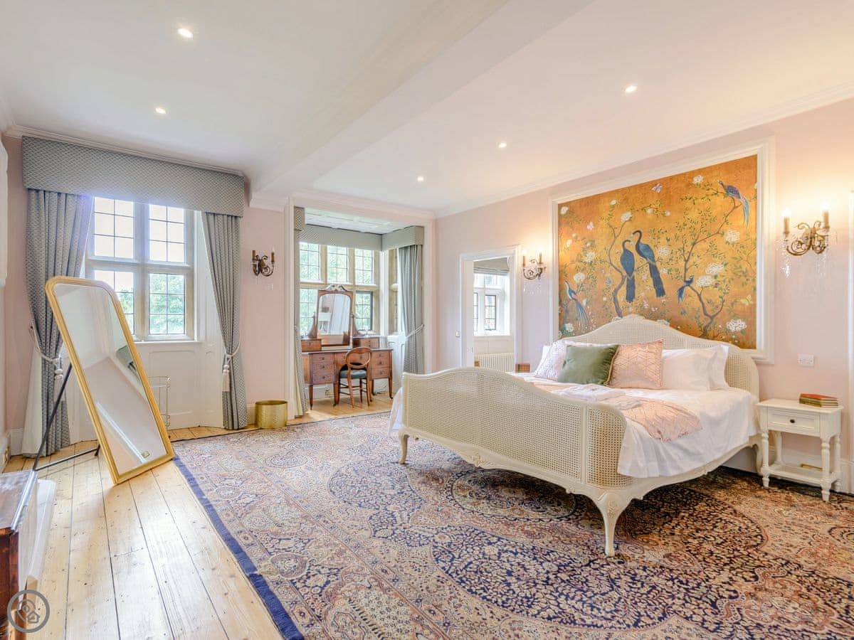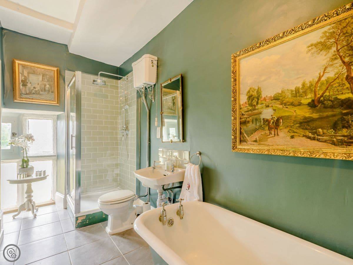 It sleeps eight, but there are only three bedrooms. They're large suites really, each with its own bathroom. There's a fourth bathroom downstairs too. One room is called the Cromwell Room. He did apparently stay here. The Queen's Chamber is another. The story is Mary Queen of Scots stopped here. They're just bedrooms though, comfortable ones.