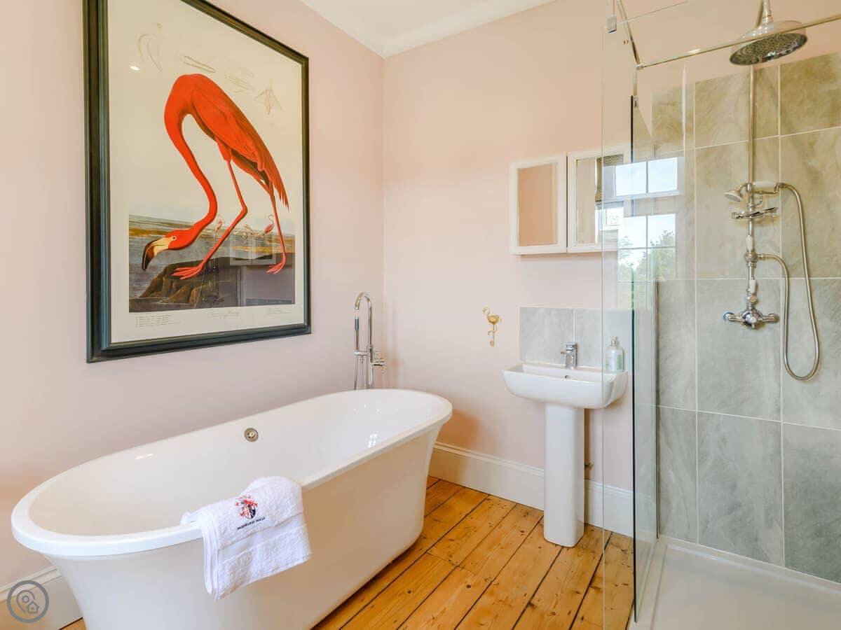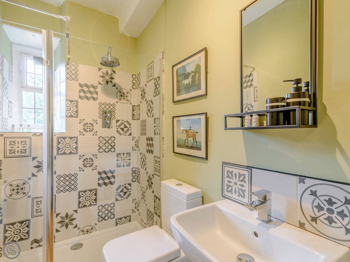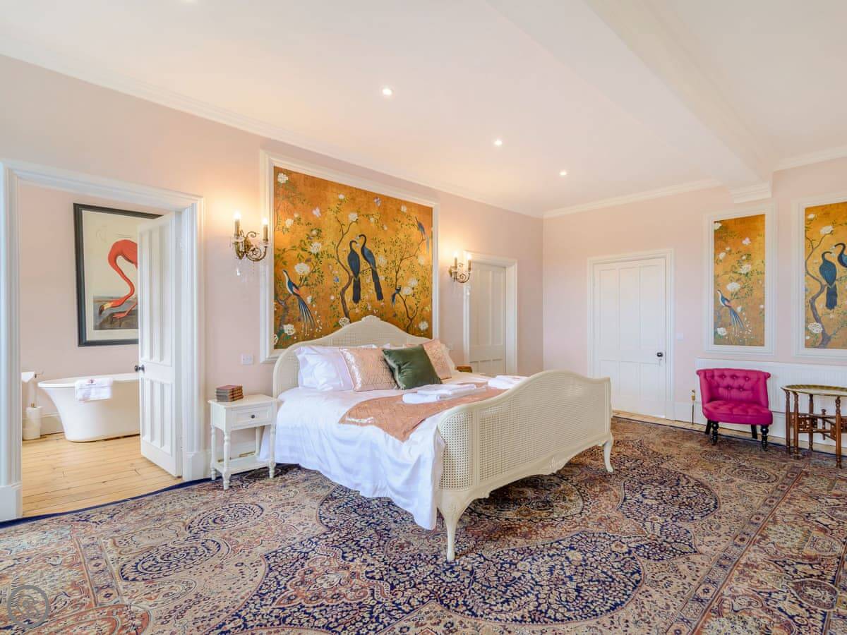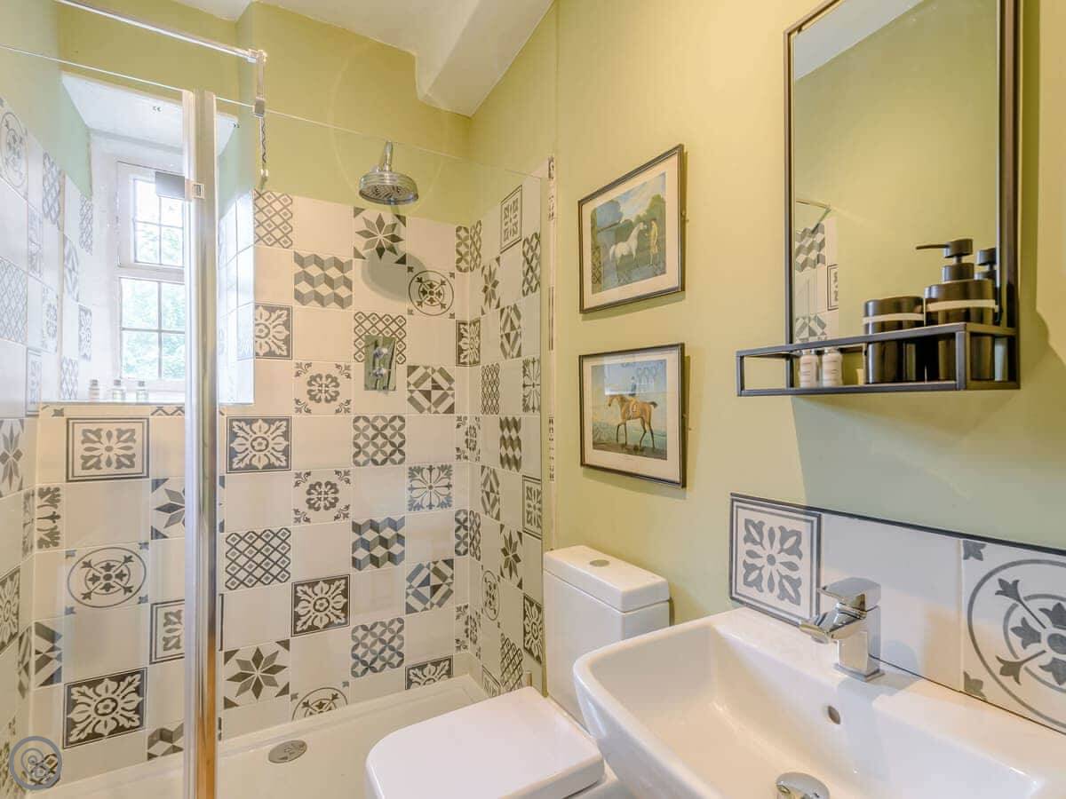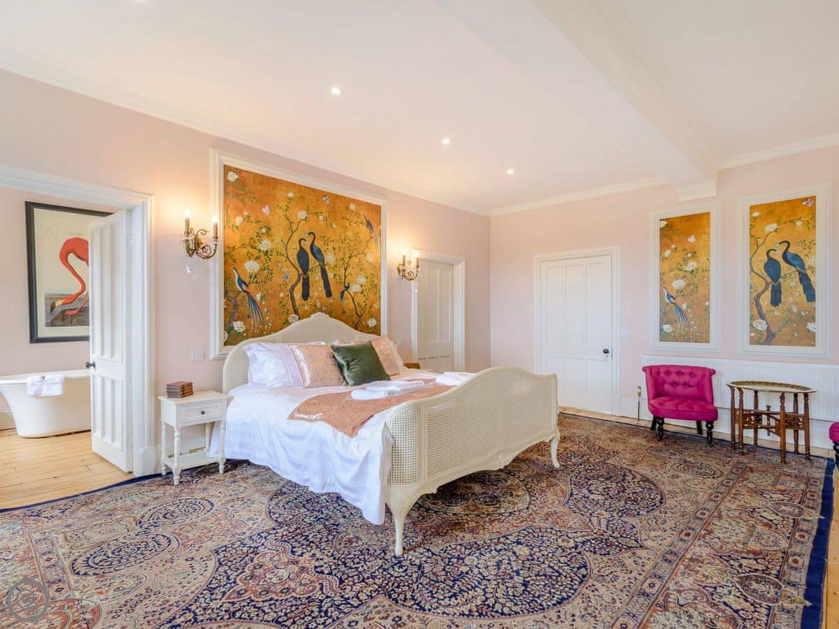 It sleeps eight, but there are only three bedrooms. They're large suites really, each with its own bathroom. There's a fourth bathroom downstairs too. One room is called the Cromwell Room. He did apparently stay here. The Queen's Chamber is another. The story is Mary Queen of Scots stopped here. They're just bedrooms though, comfortable ones.
