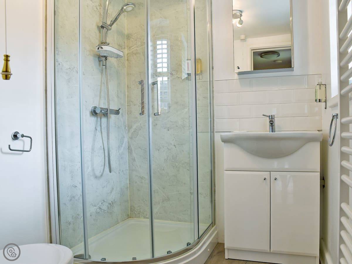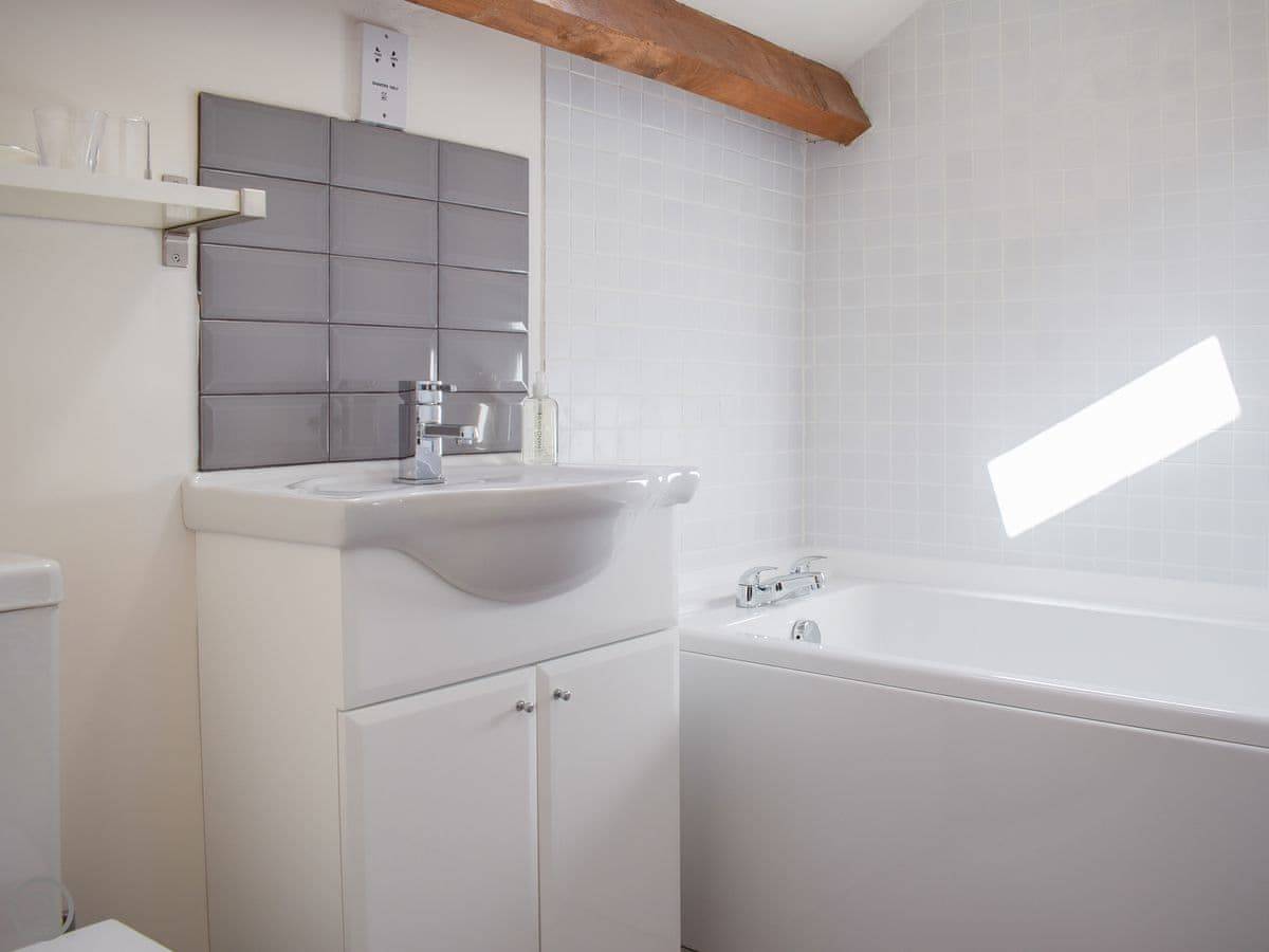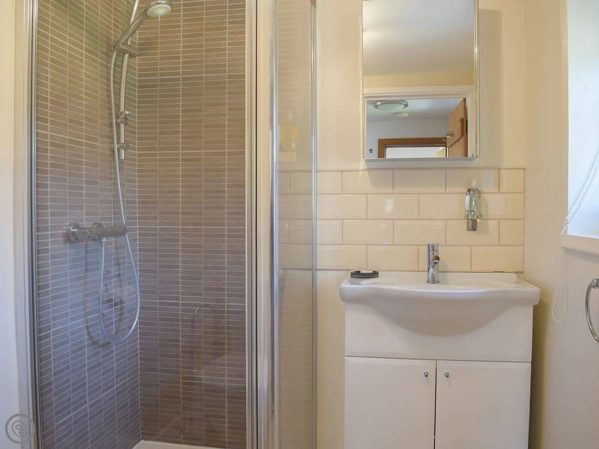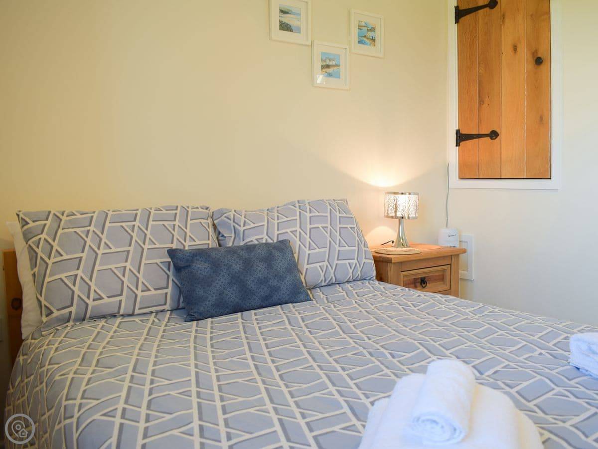 It sleeps six. Three bedrooms, two bathrooms. One bathroom is en-suite to the master, the other is a family bathroom. It's a 4 Star place. One of the double bedrooms is upstairs, the twin and the master are on the ground floor.