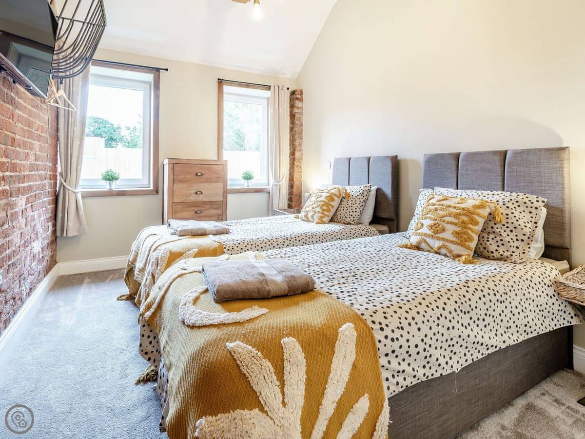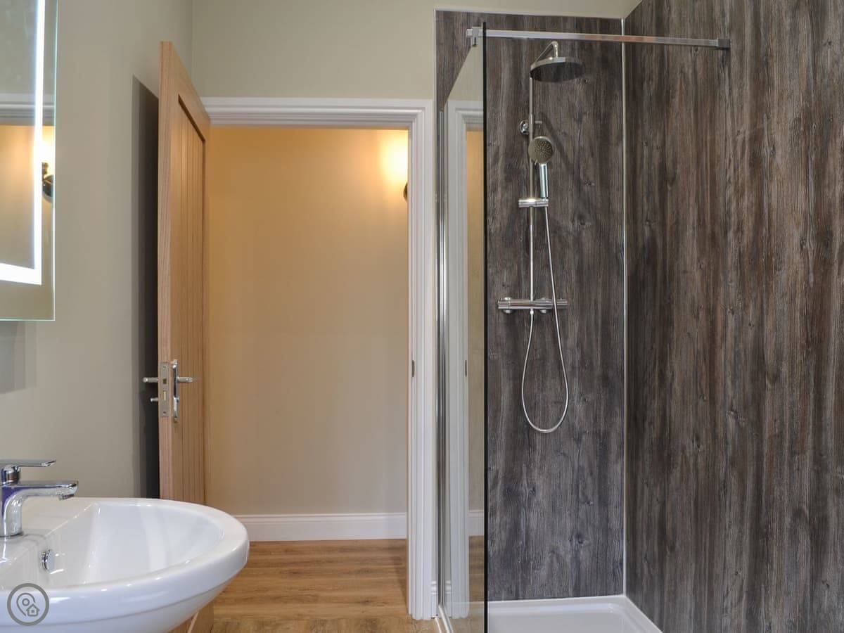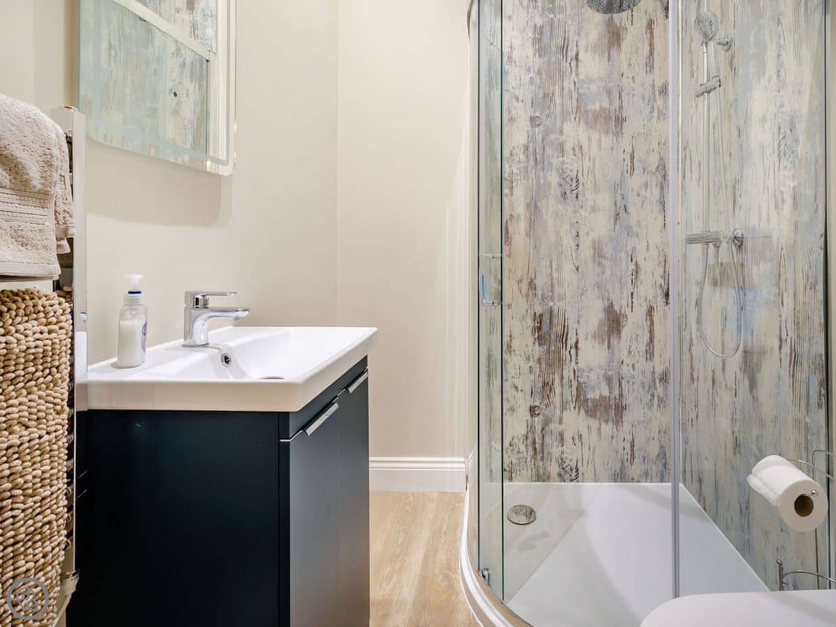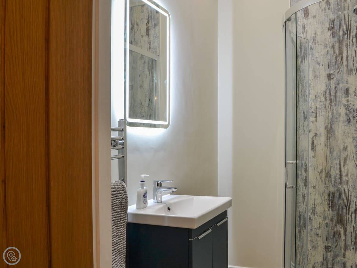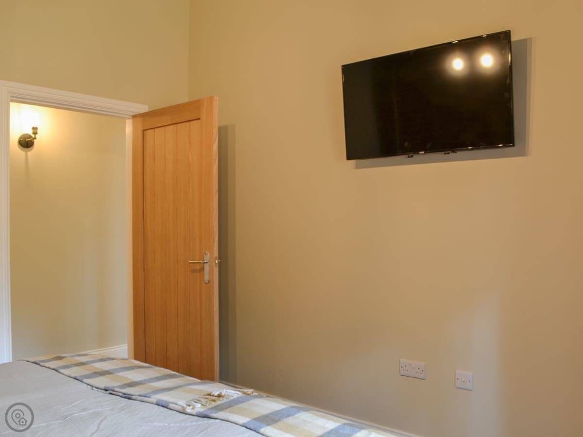 You've got a wood burner in the main room. There's a Smart TV. The kitchen has what you need. The garden is enclosed, with a patio and a hot tub. You can see the fields from there.