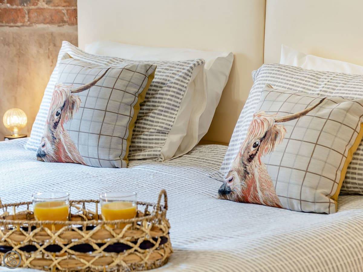 The cottage sleeps six. Three bedrooms, two bathrooms. It's all on the ground floor, which is handy. It's got a 4 Star rating. It's comfortable. We've put some things in there I made from bits and bobs found around the farm. They're just there. You'll see them.