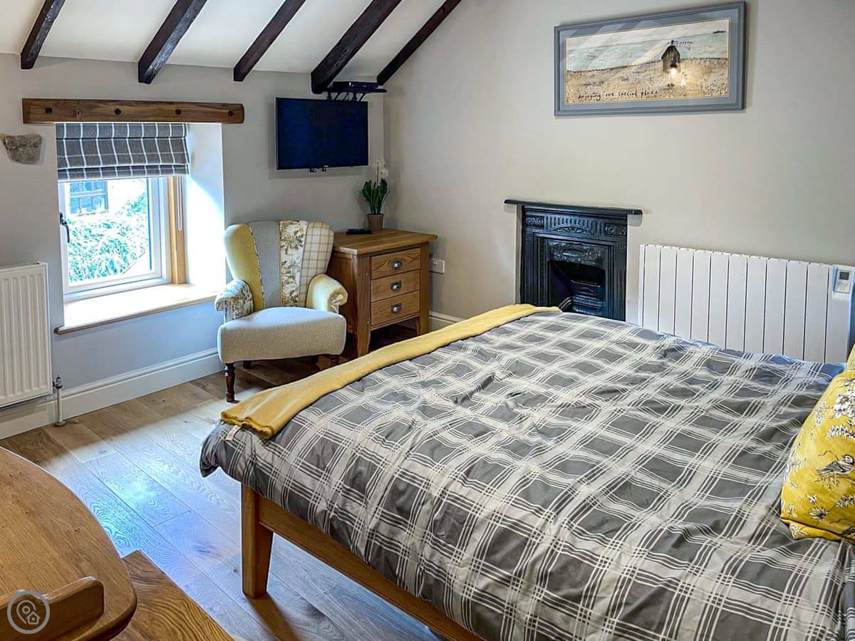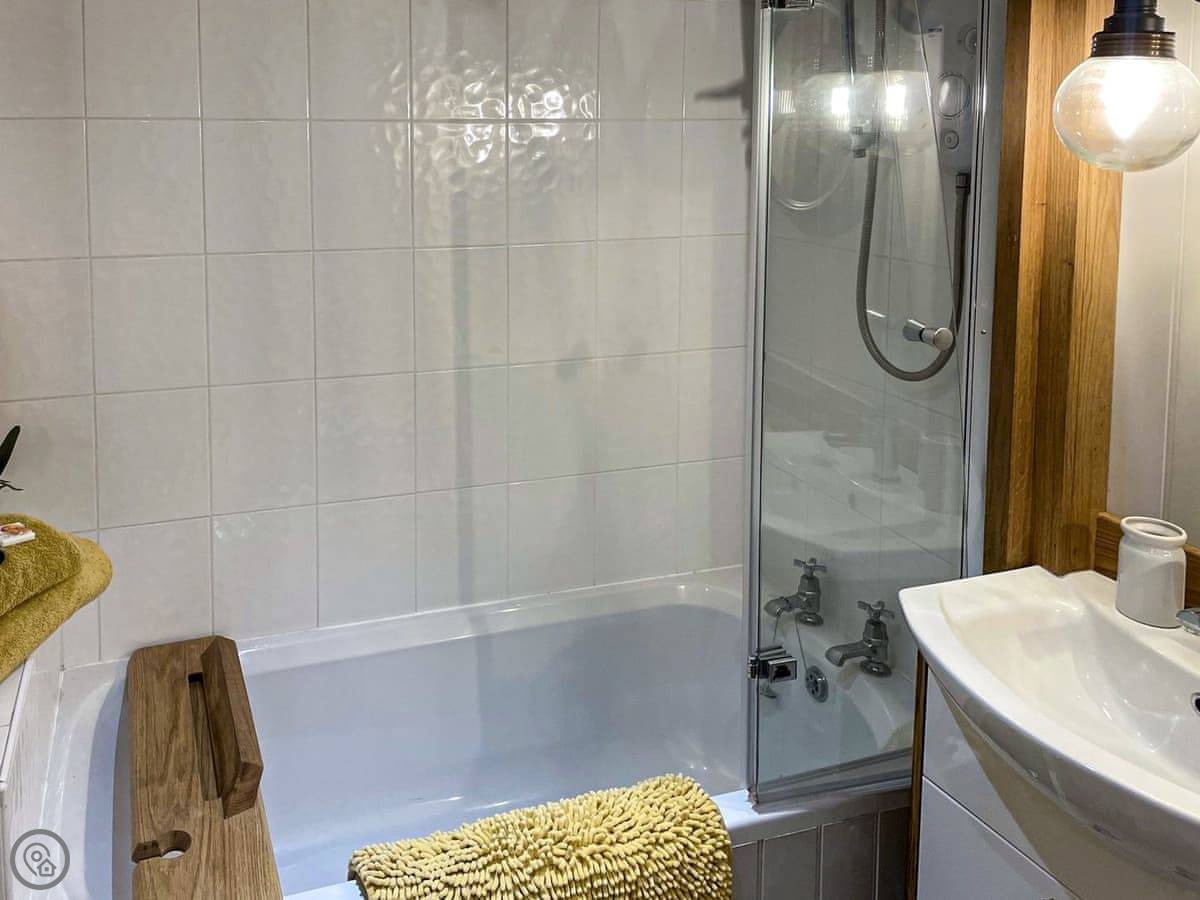 It was renovated a couple of years ago, so everything inside is clean and works properly. It sleeps four. Two bedrooms upstairs, a double and a twin. The bathroom is downstairs, with a shower over the bath.