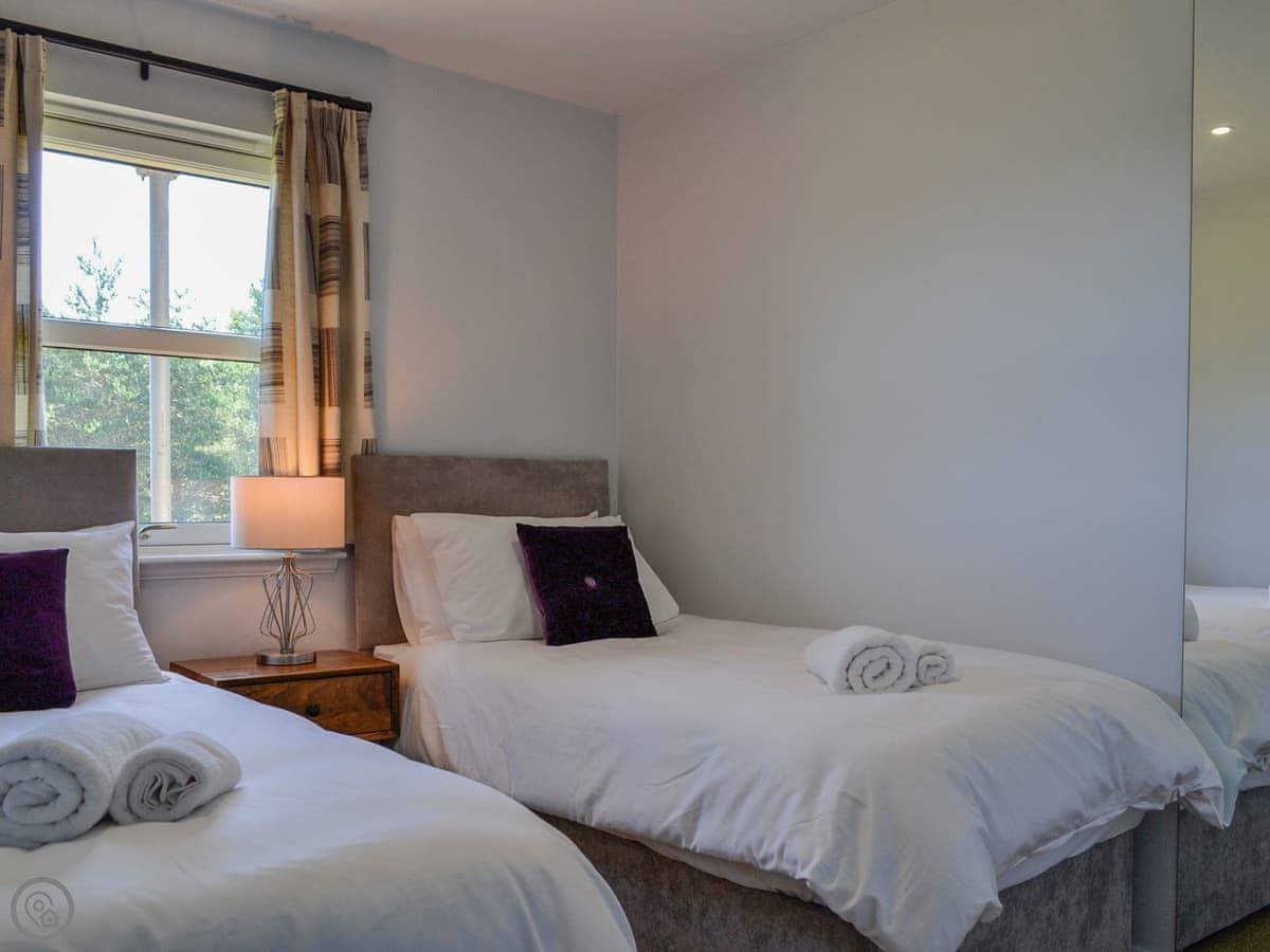If you are looking for comfort, quality and relaxation in a wonderful location, this stylish self-contained lodge on two floors is a great choice. Set in peaceful woodland surroundings of the Inchmarlo Golf Club, the property is set in an elevated position and has been furnished with flair and attention to detail. The elegant open plan living space on the first floor has French doors leading to a balcony which is perfect for al fresco dining or a drink with views over the surrounding woodland. Downstairs are three very comfortable bedrooms and contemporary bathroom with shower over bath.