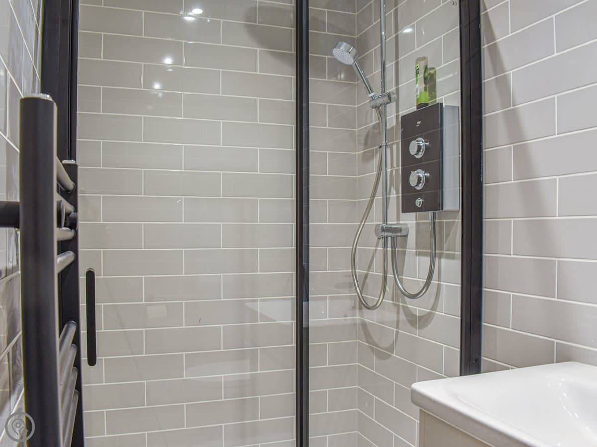 Upstairs on the second floor are the other three bedrooms. The main one has a super king bed and its own en-suite shower room. There's another double, and a twin room. The family bathroom on this floor has both a bath and a walk-in shower.