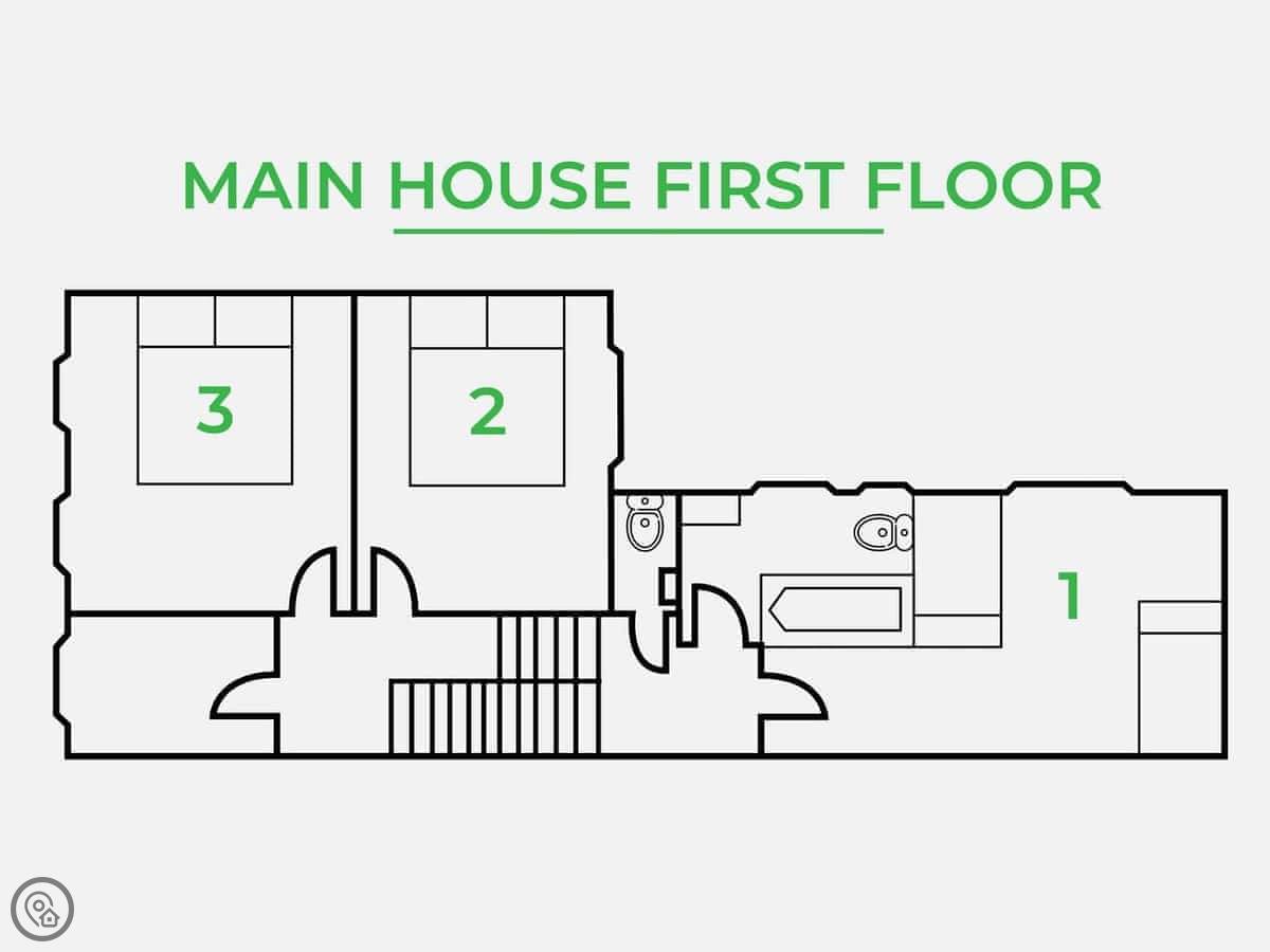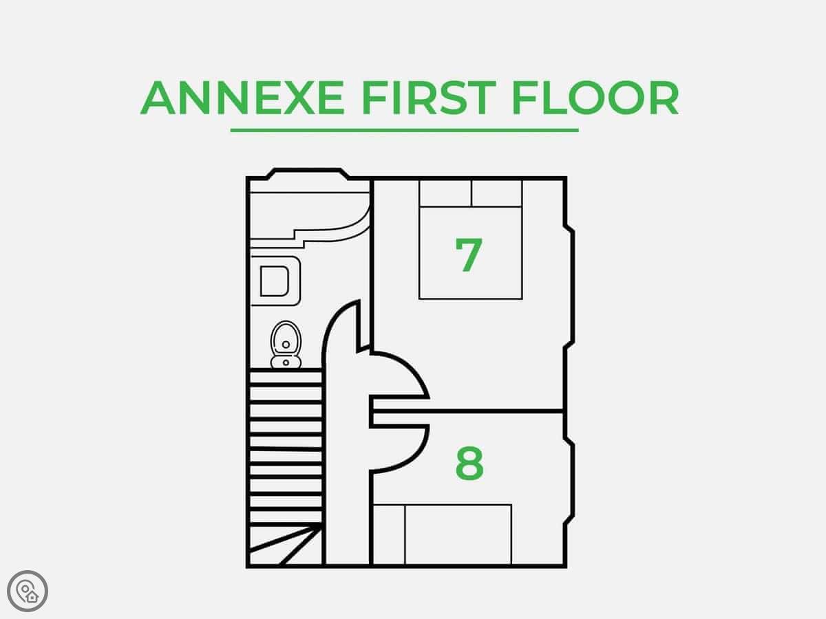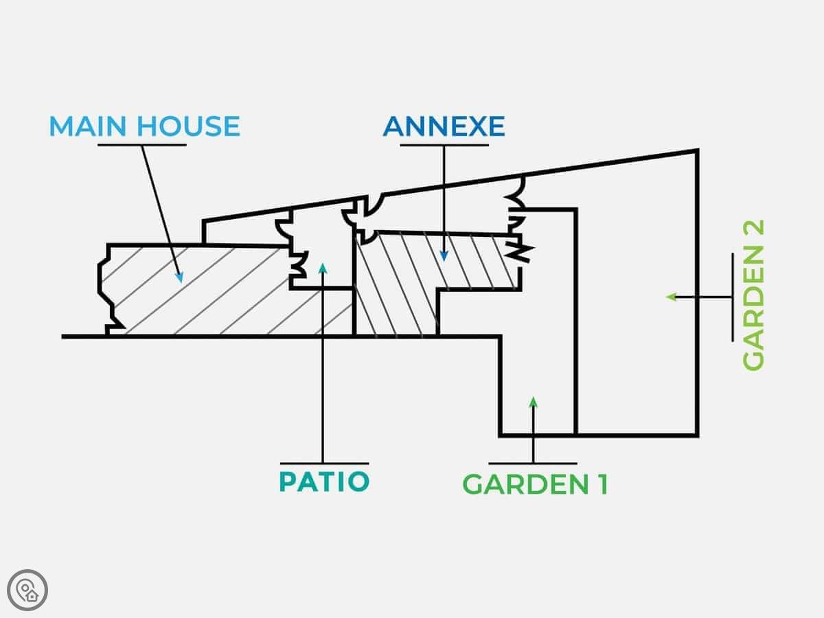 The house is actually two buildings. There's the main house and then a separate annexe in the garden. That means you've got two kitchens and two living areas. It works well for big groups because people can spread out. The main dining table seats eighteen.