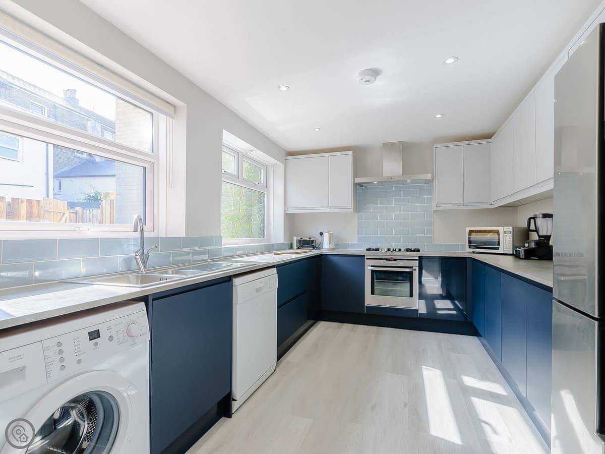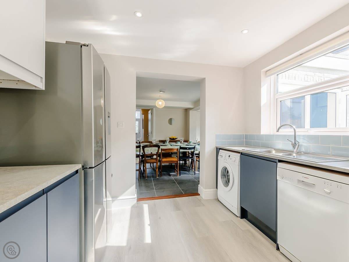 Facilities: two kitchens, both with dishwashers. There are washing machines, TVs, and WiFi. Bedding and towels are included. You can bring up to two dogs.