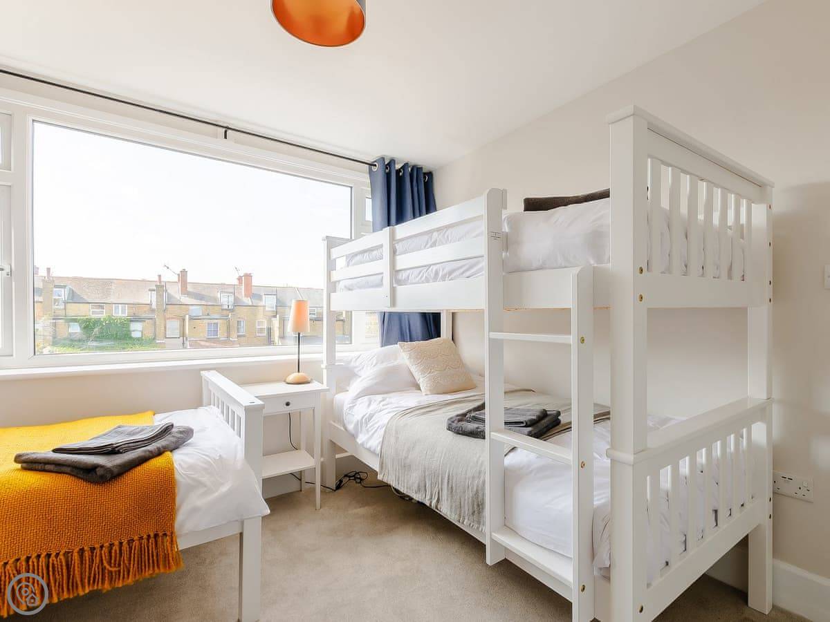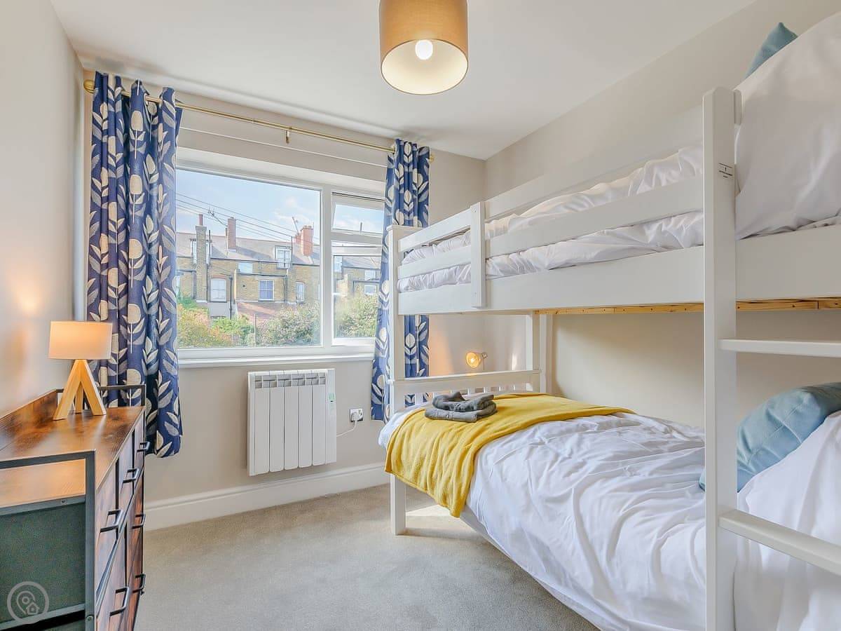 It's about 300 yards to the beach at Walpole Bay. The walk is step-free. There's a tidal pool there. Margate town centre is about a fifteen minute walk. You've got the Turner Contemporary gallery, the old town with shops, and lots of places to eat.