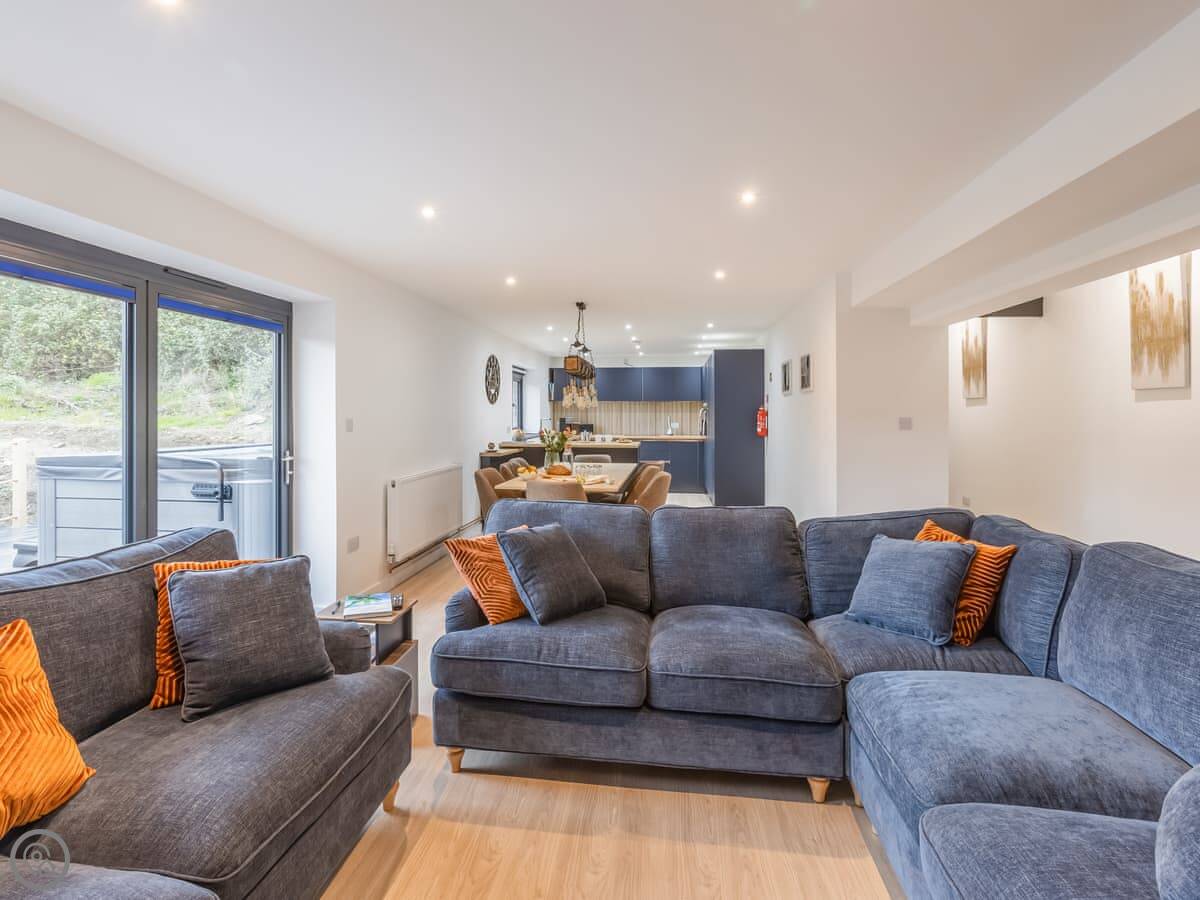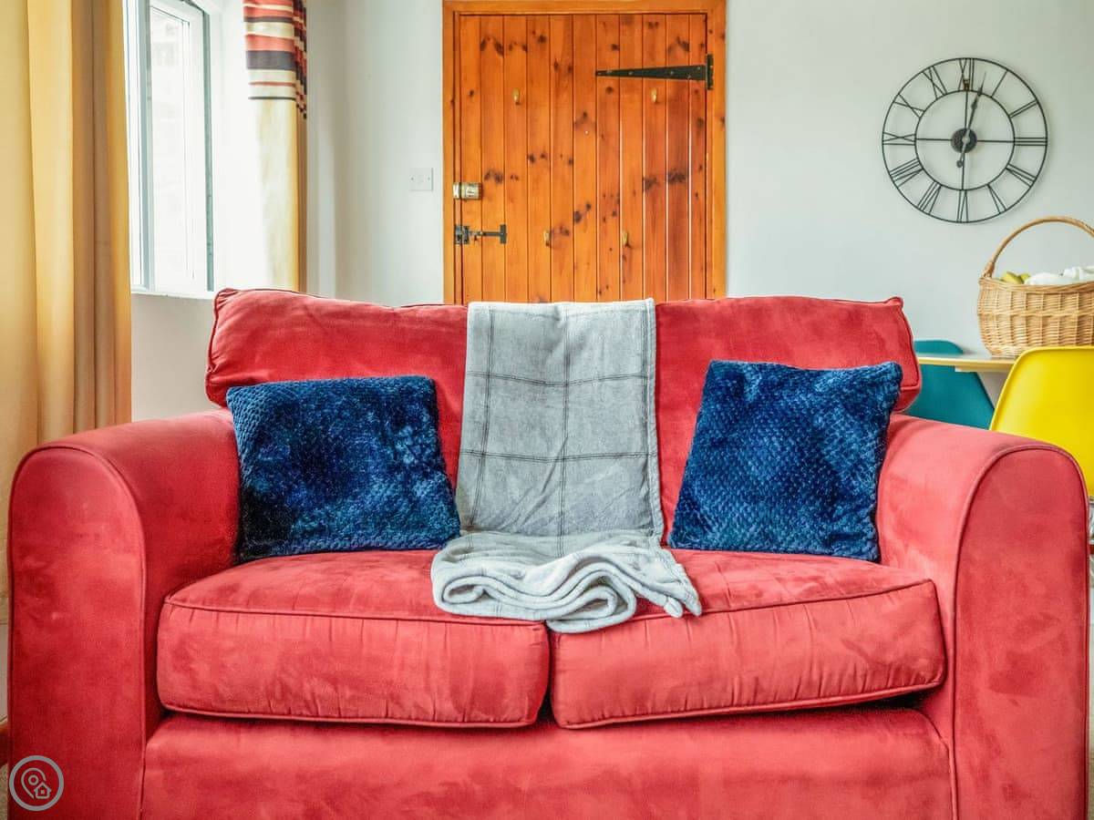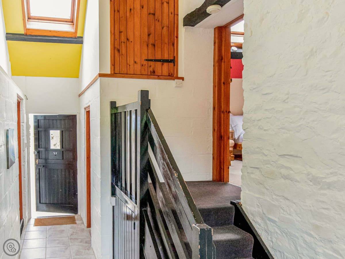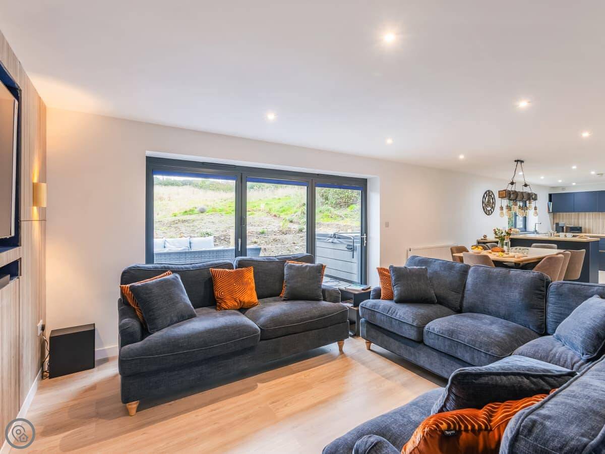 Inside, it's open plan. Washing machine, dishwasher, towels and bedding are all there. We allow up to two dogs. There's a cot if you need one.