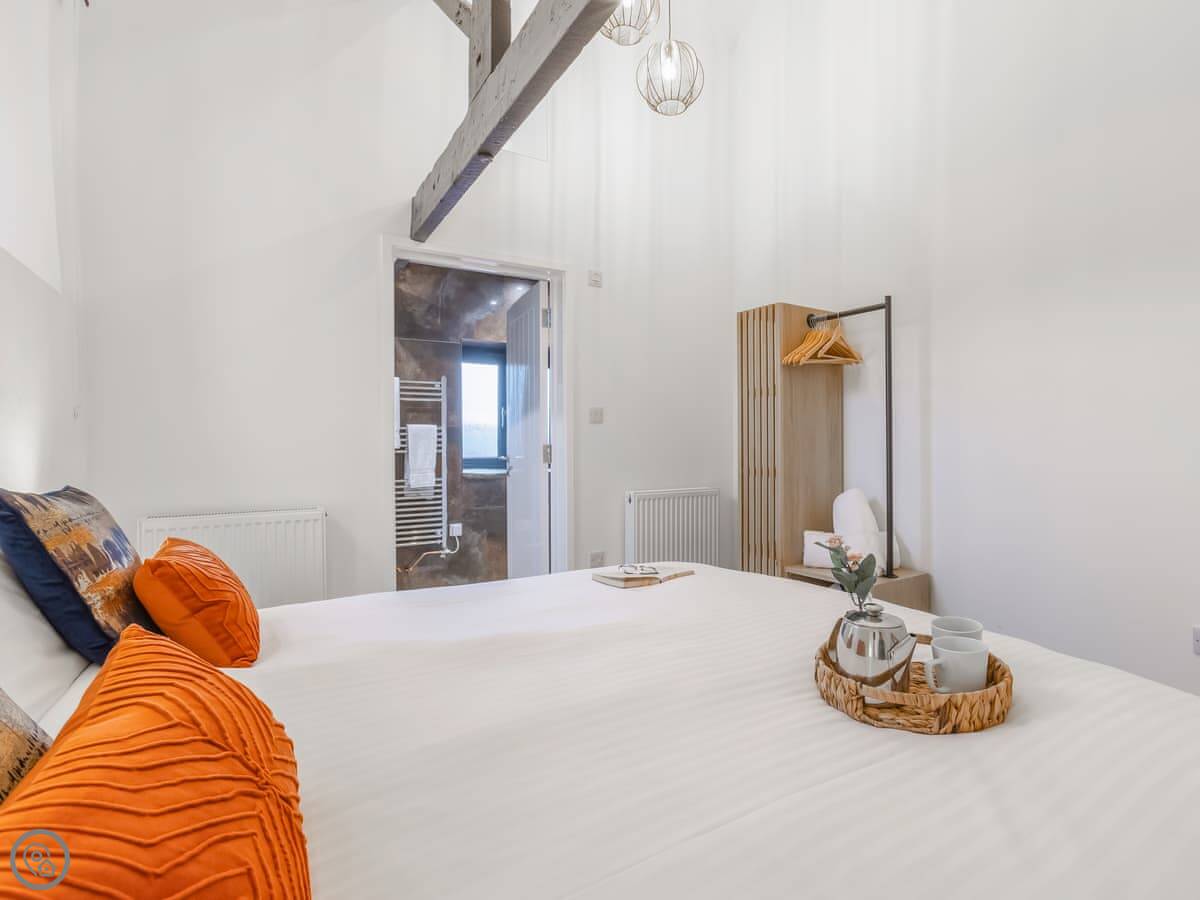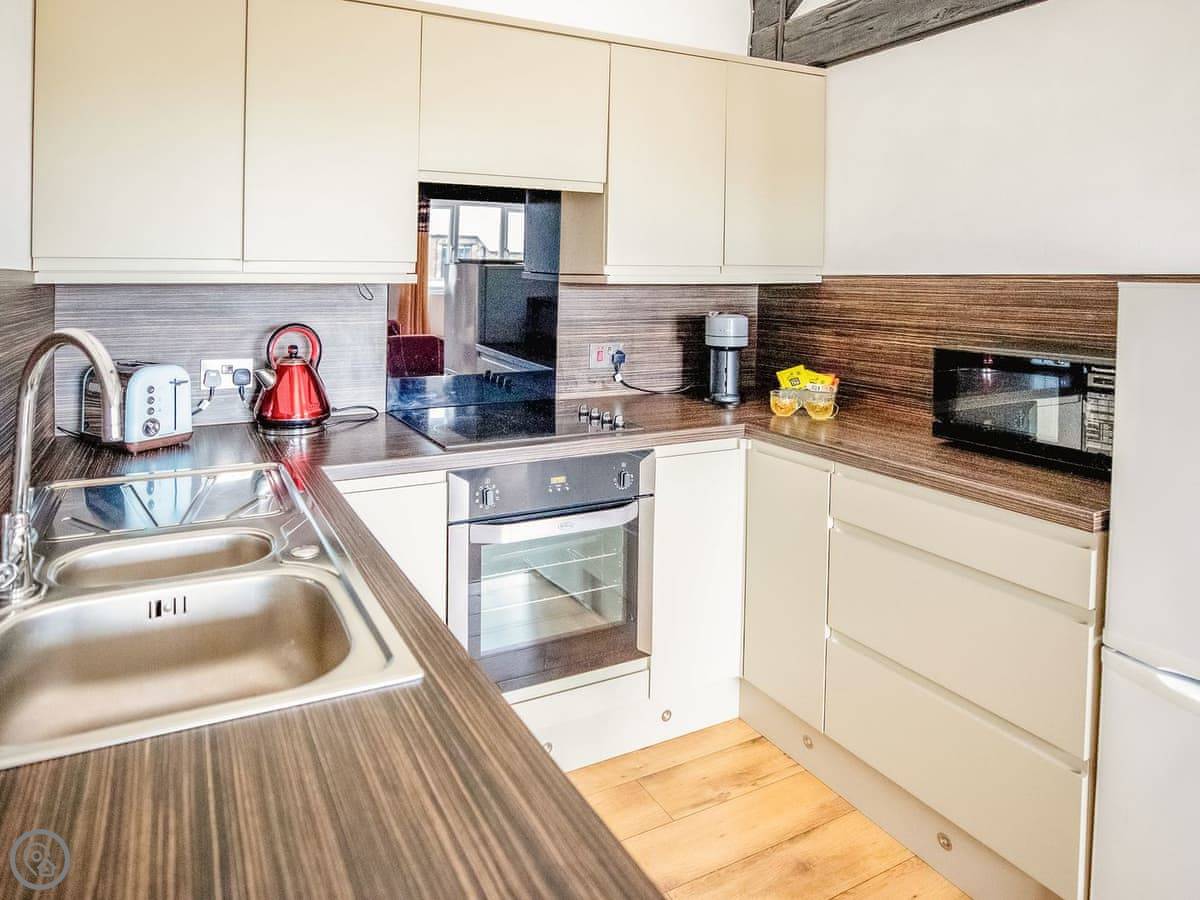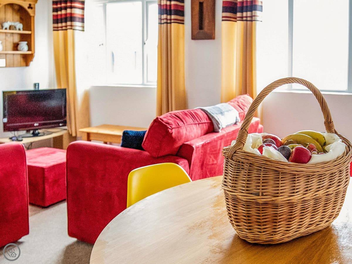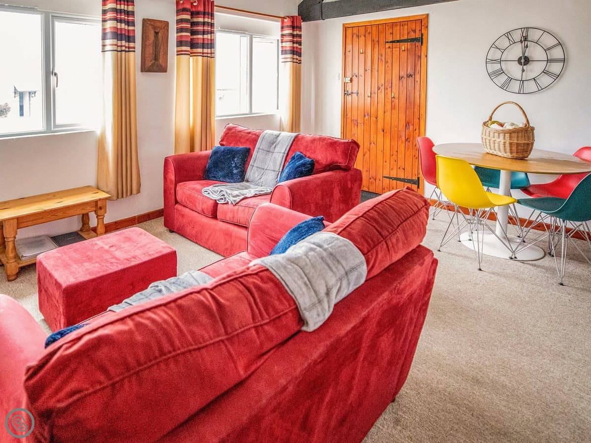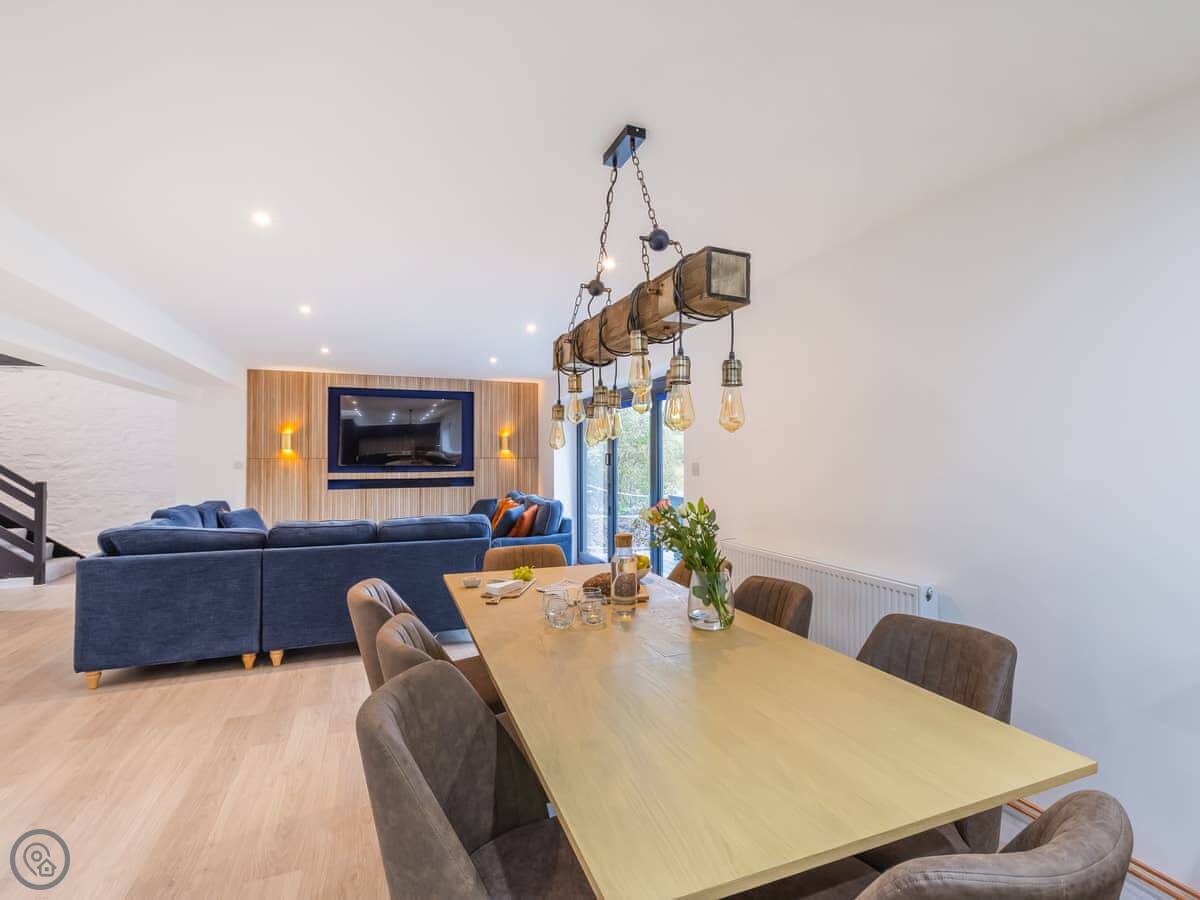 Inside, it's open plan. Washing machine, dishwasher, towels and bedding are all there. We allow up to two dogs. There's a cot if you need one.