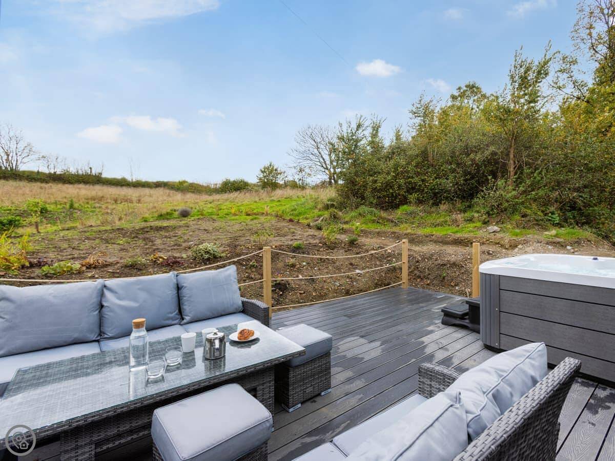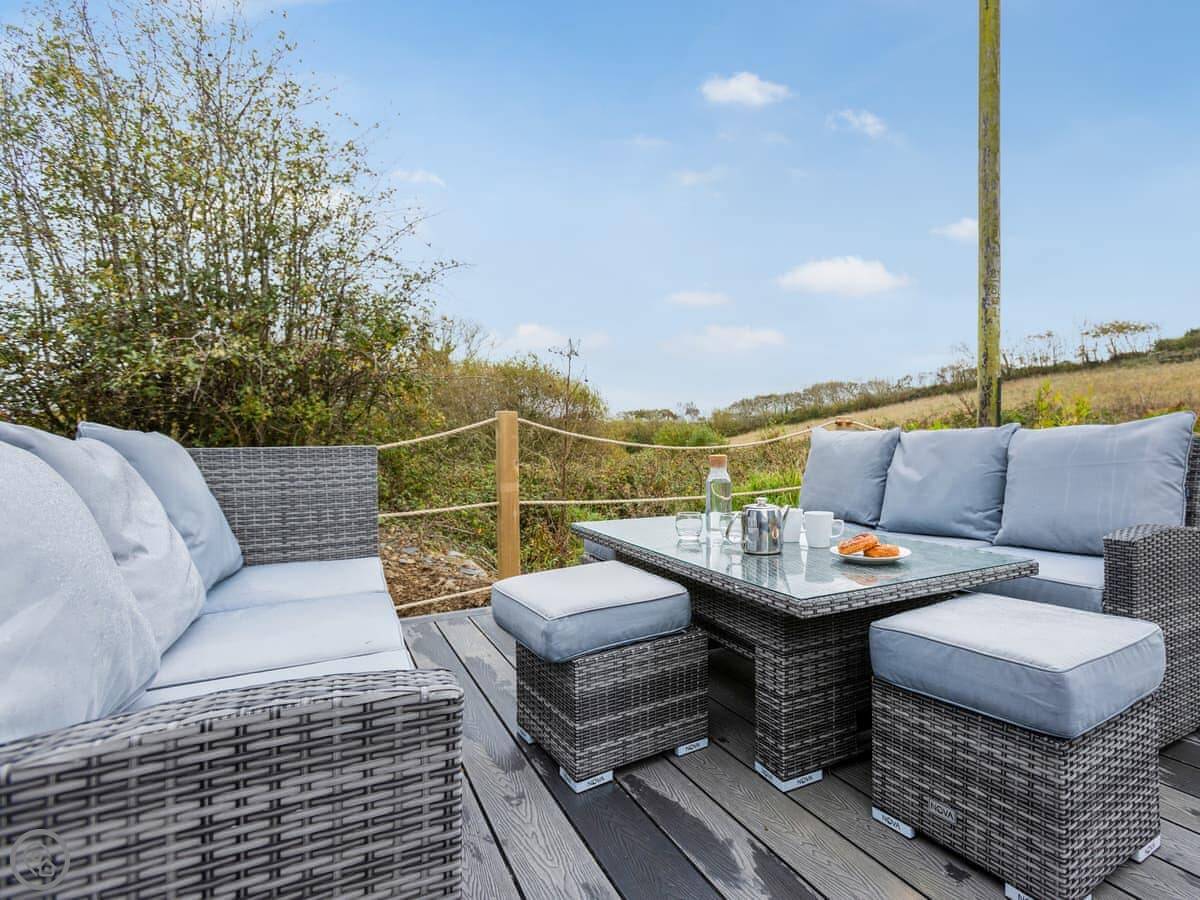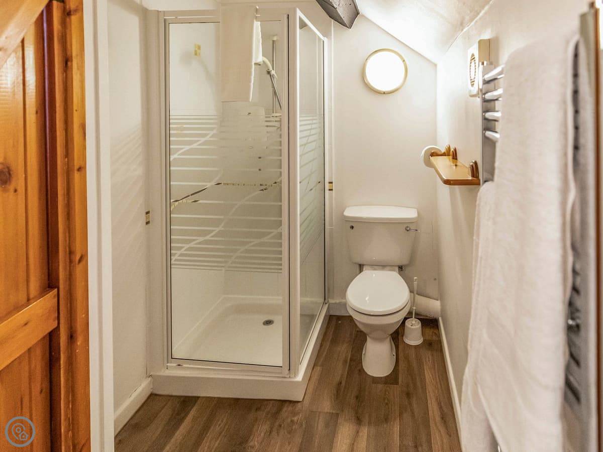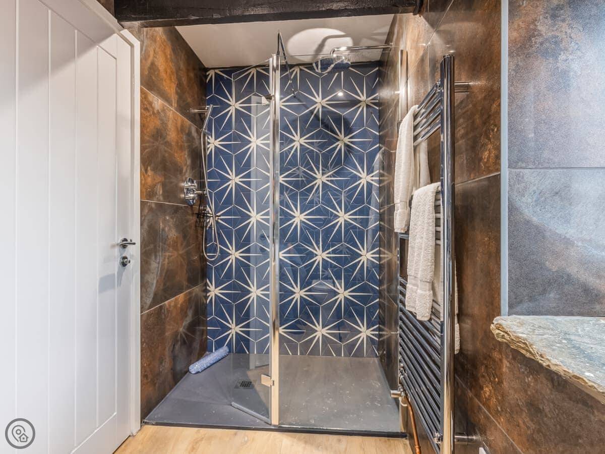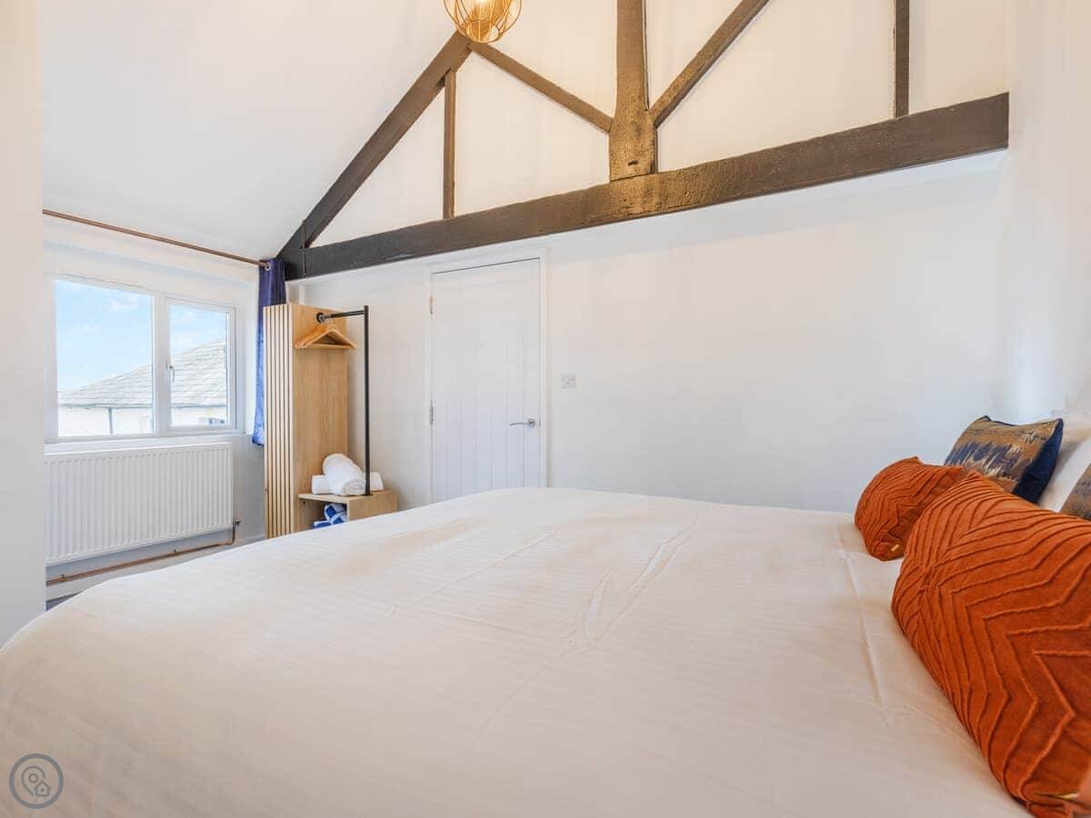 Inside, it's open plan. Washing machine, dishwasher, towels and bedding are all there. We allow up to two dogs. There's a cot if you need one.