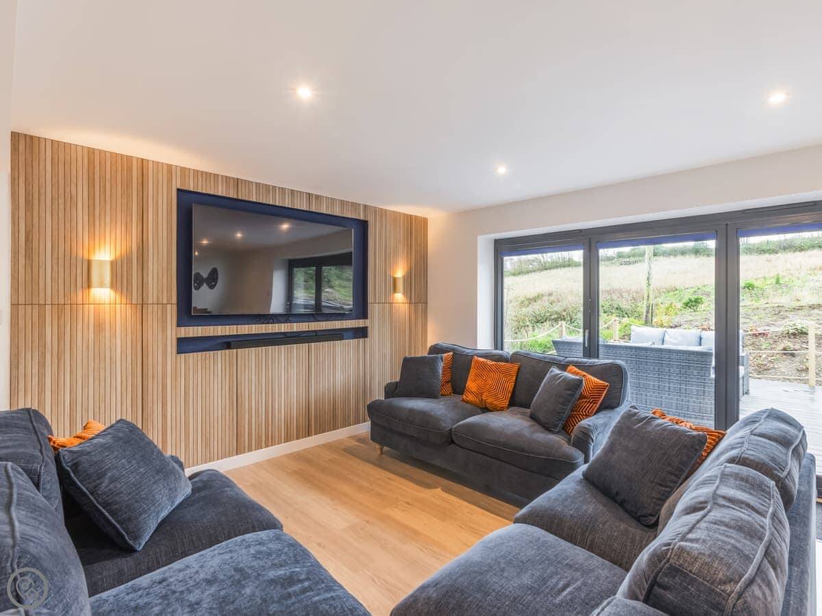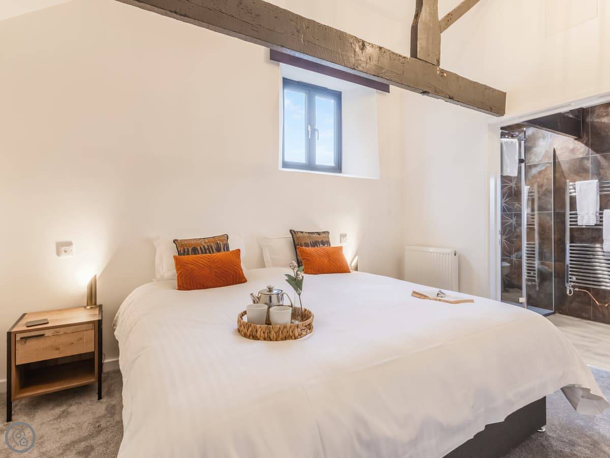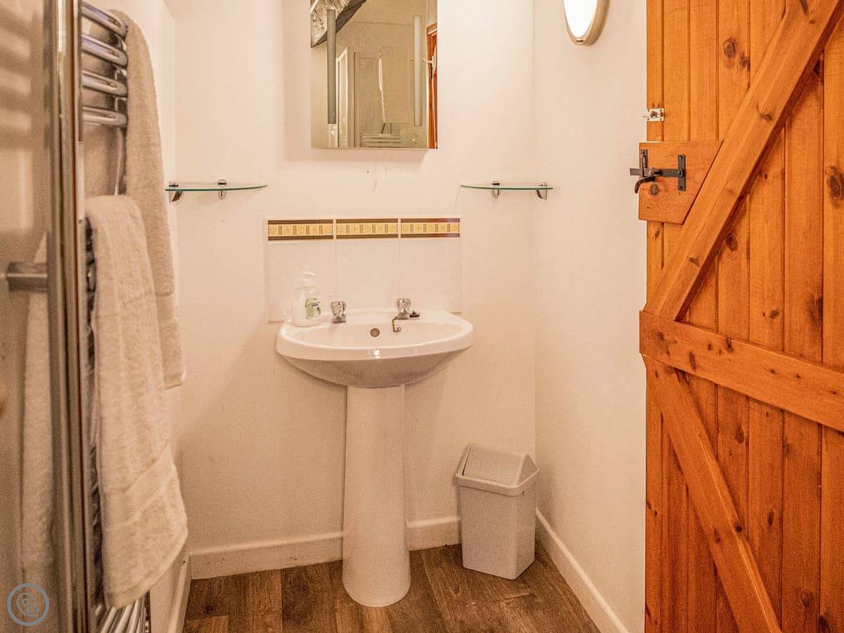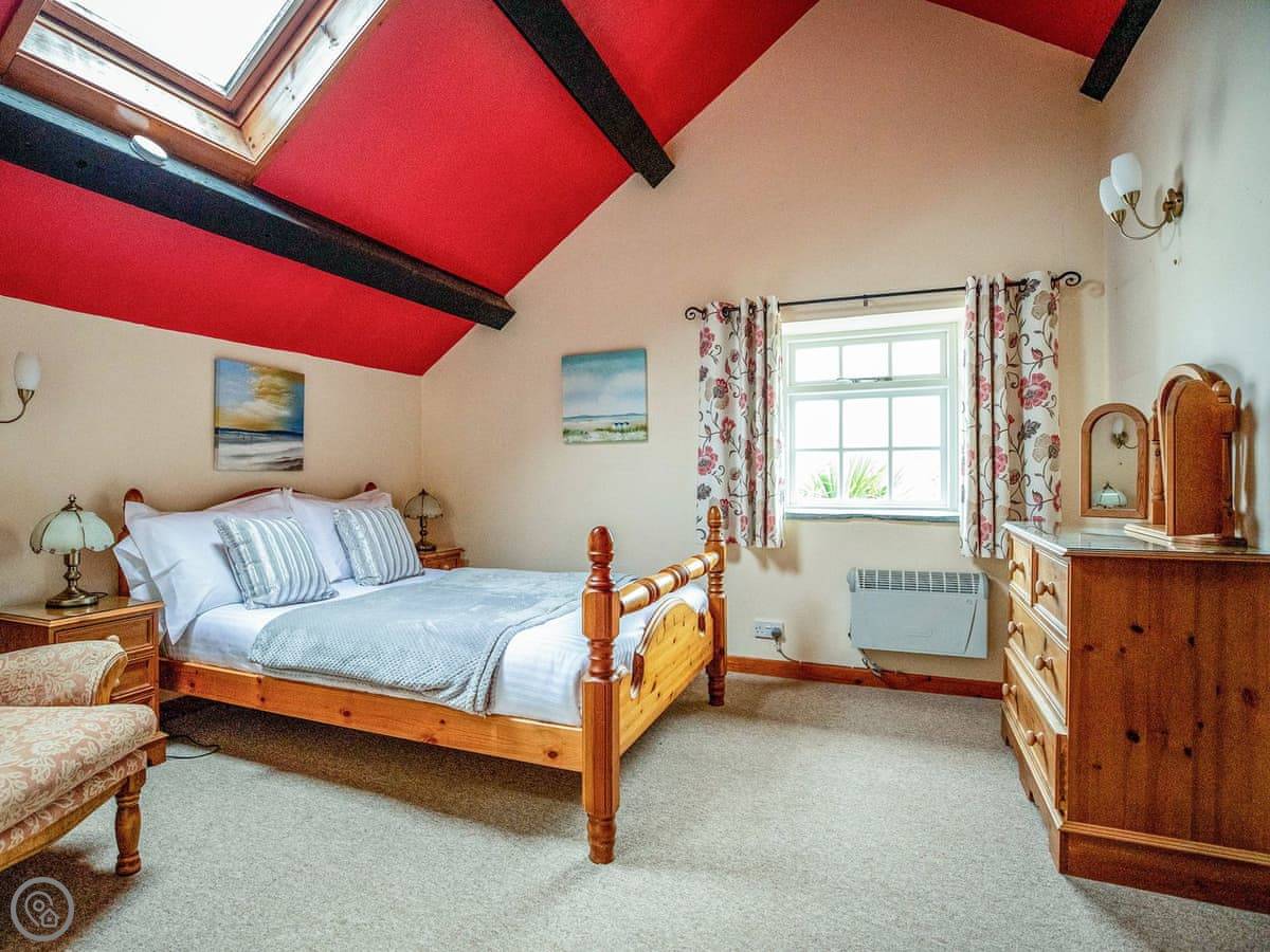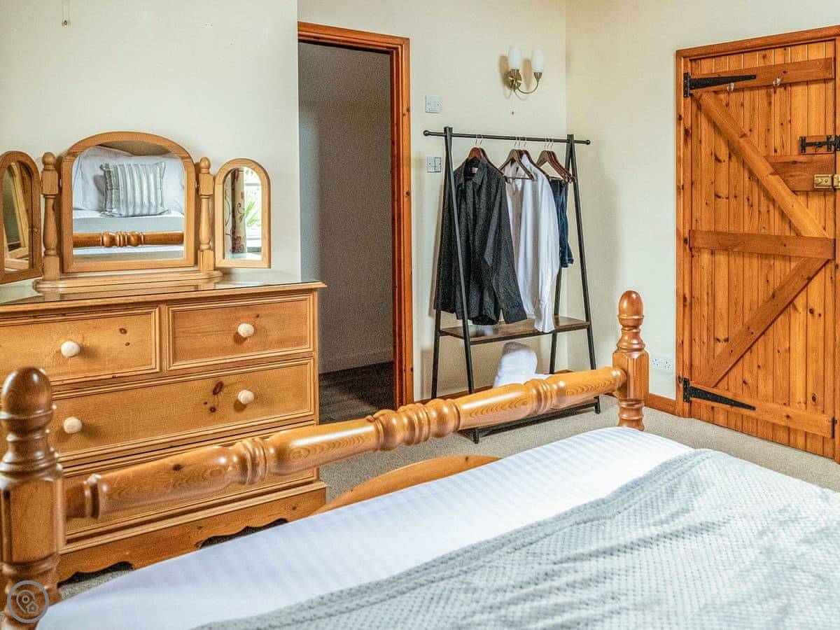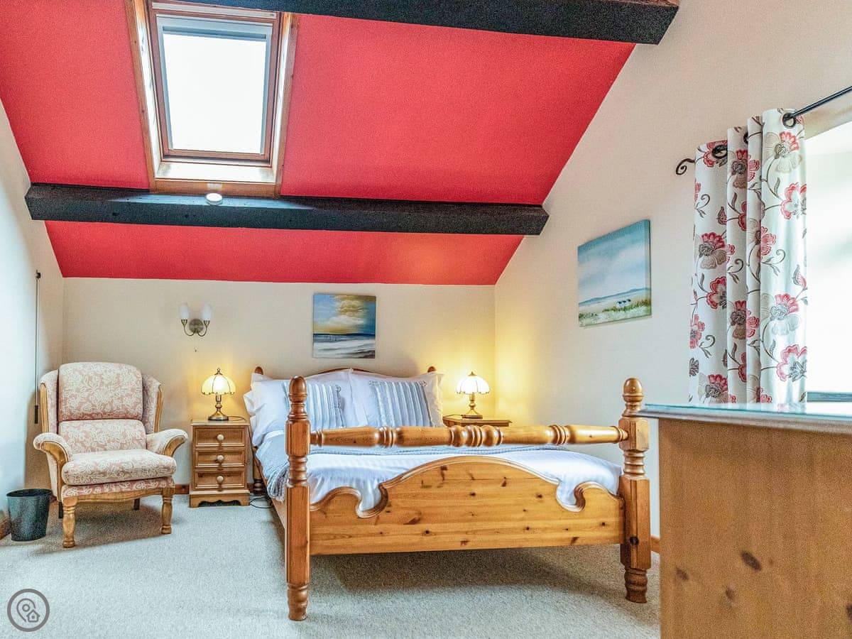 The house sleeps eight. Four bedrooms, each with its own bathroom. It's got a 4 Star rating, so it's well equipped and comfortable. There's a games room with a pool table and things, but it's shared with the other cottages on site if they're booked. Good for kids. The entrance is wheelchair accessible and there's parking right there.