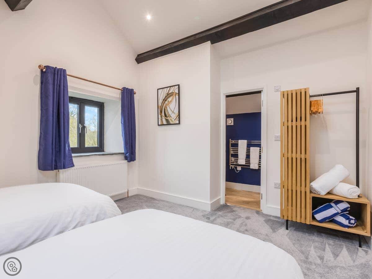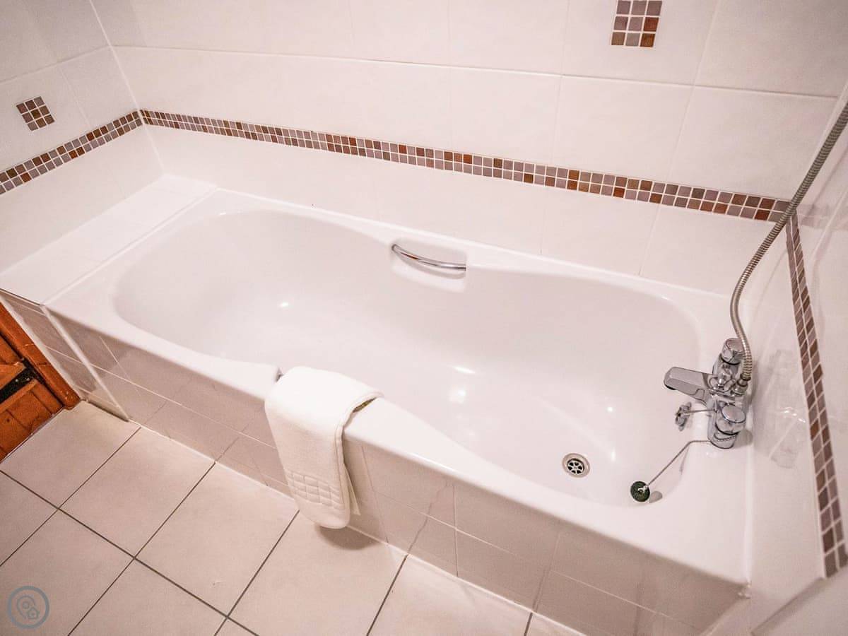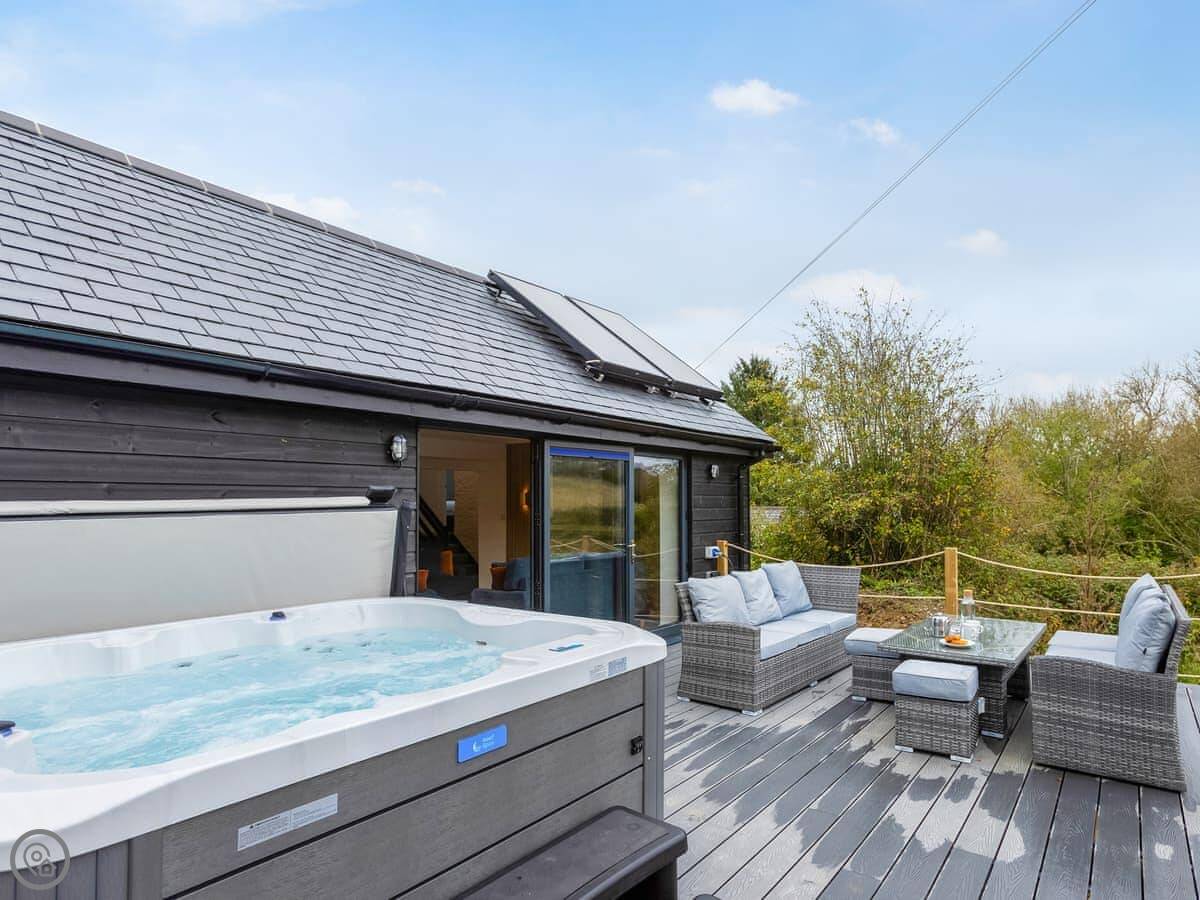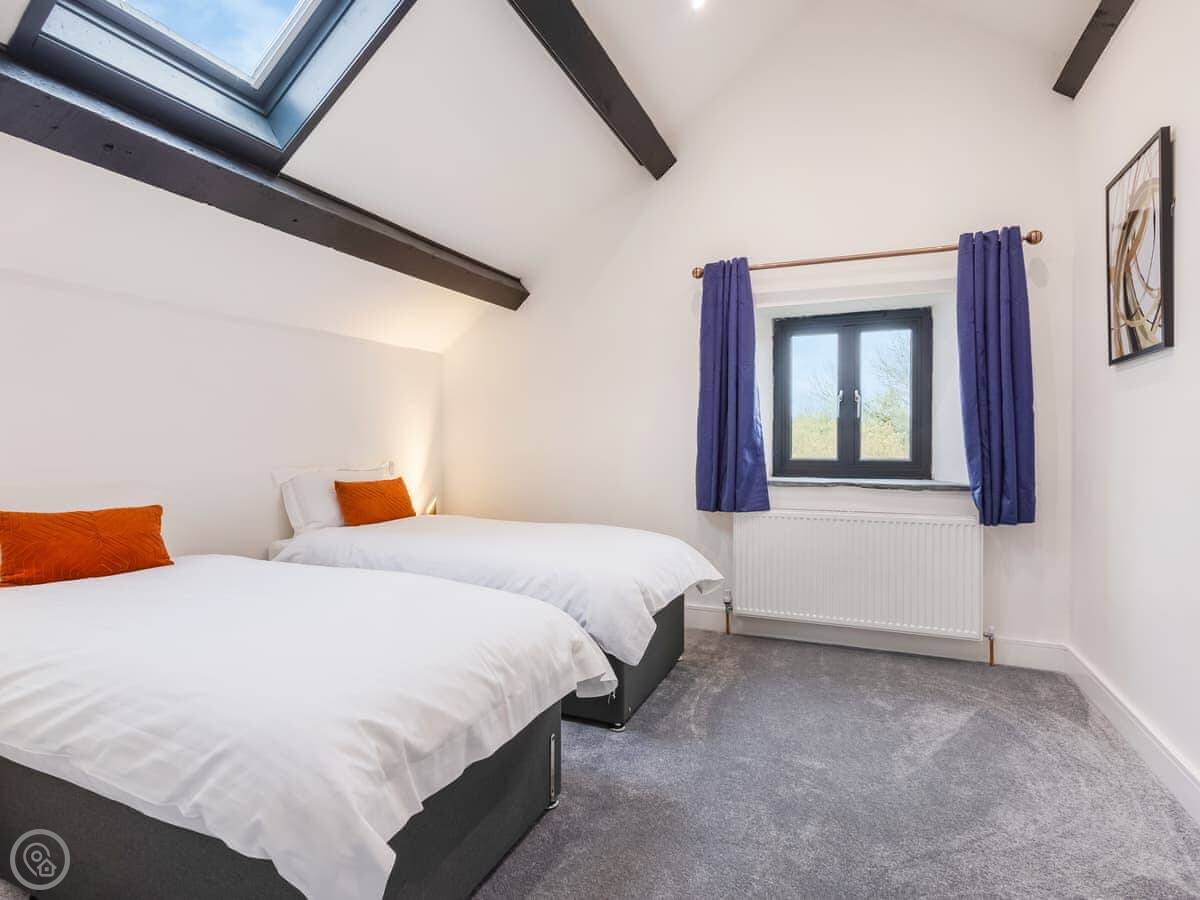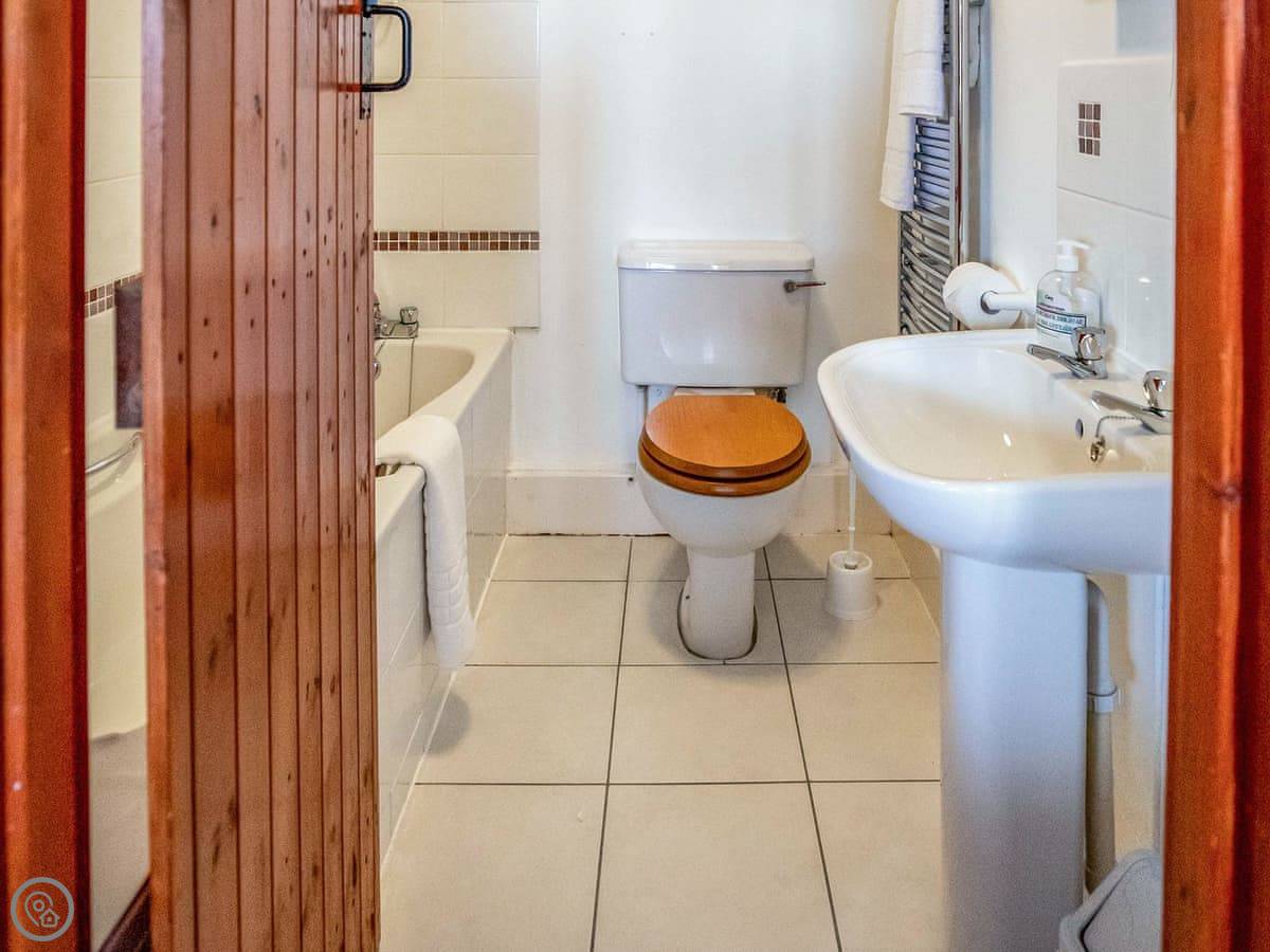 The house sleeps eight. Four bedrooms, each with its own bathroom. It's got a 4 Star rating, so it's well equipped and comfortable. There's a games room with a pool table and things, but it's shared with the other cottages on site if they're booked. Good for kids. The entrance is wheelchair accessible and there's parking right there.