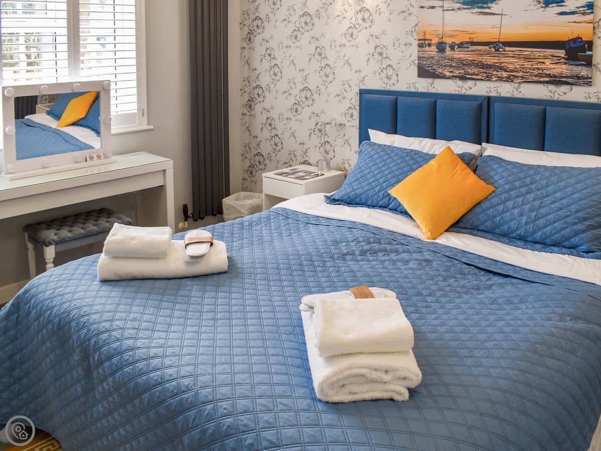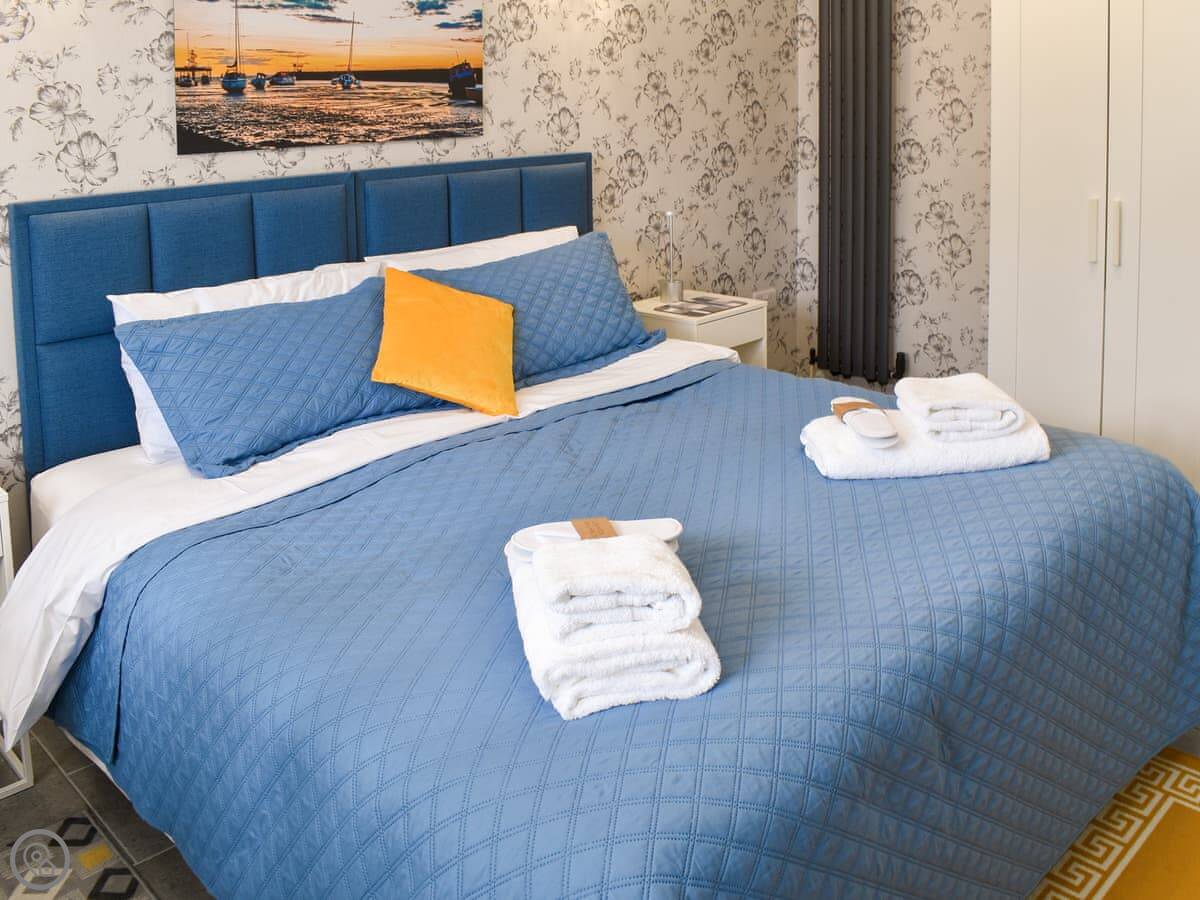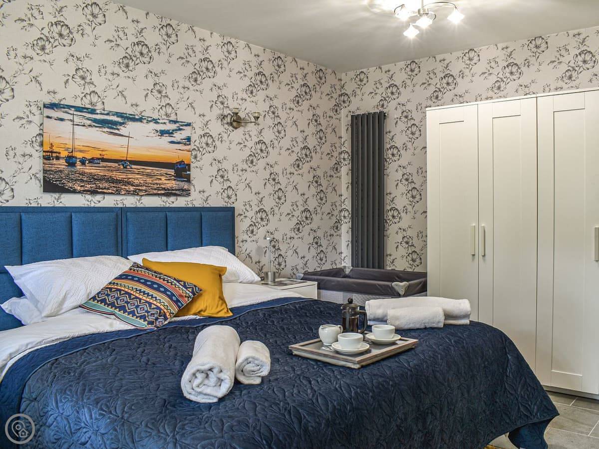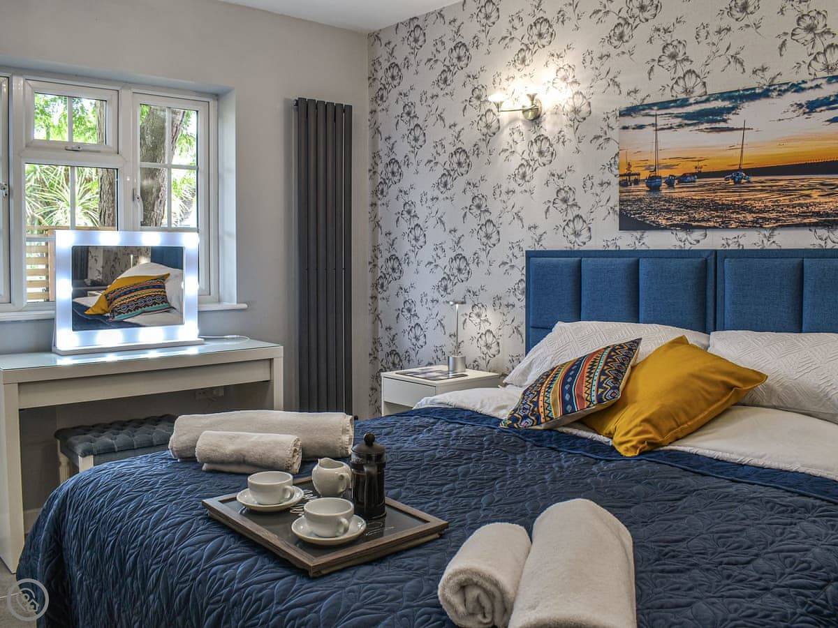 It sleeps two. One bedroom with a super king bed, and one shower room. It’s got a 4 Star rating. Everything is on one level, so no stairs.