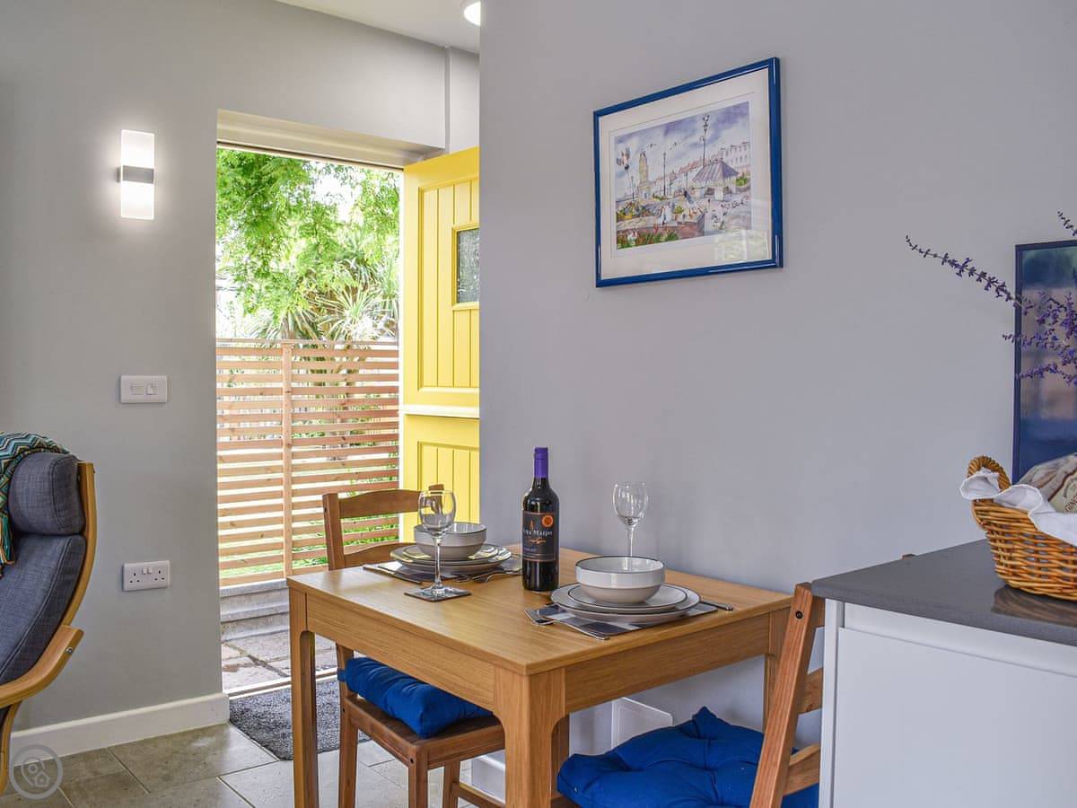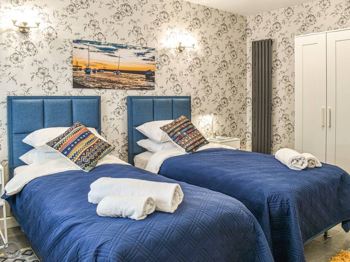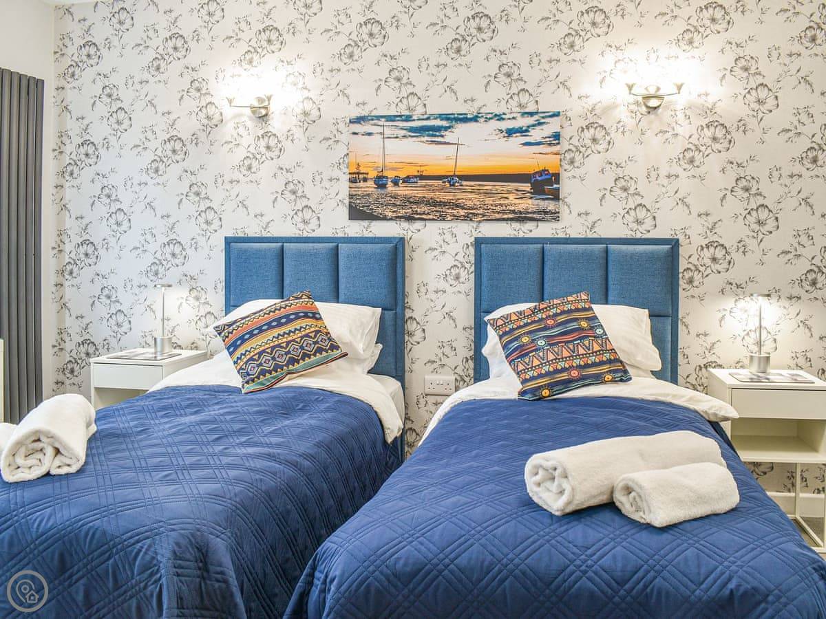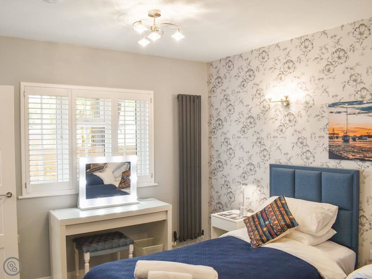 It sleeps two. One bedroom with a super king bed, and one shower room. It’s got a 4 Star rating. Everything is on one level, so no stairs.