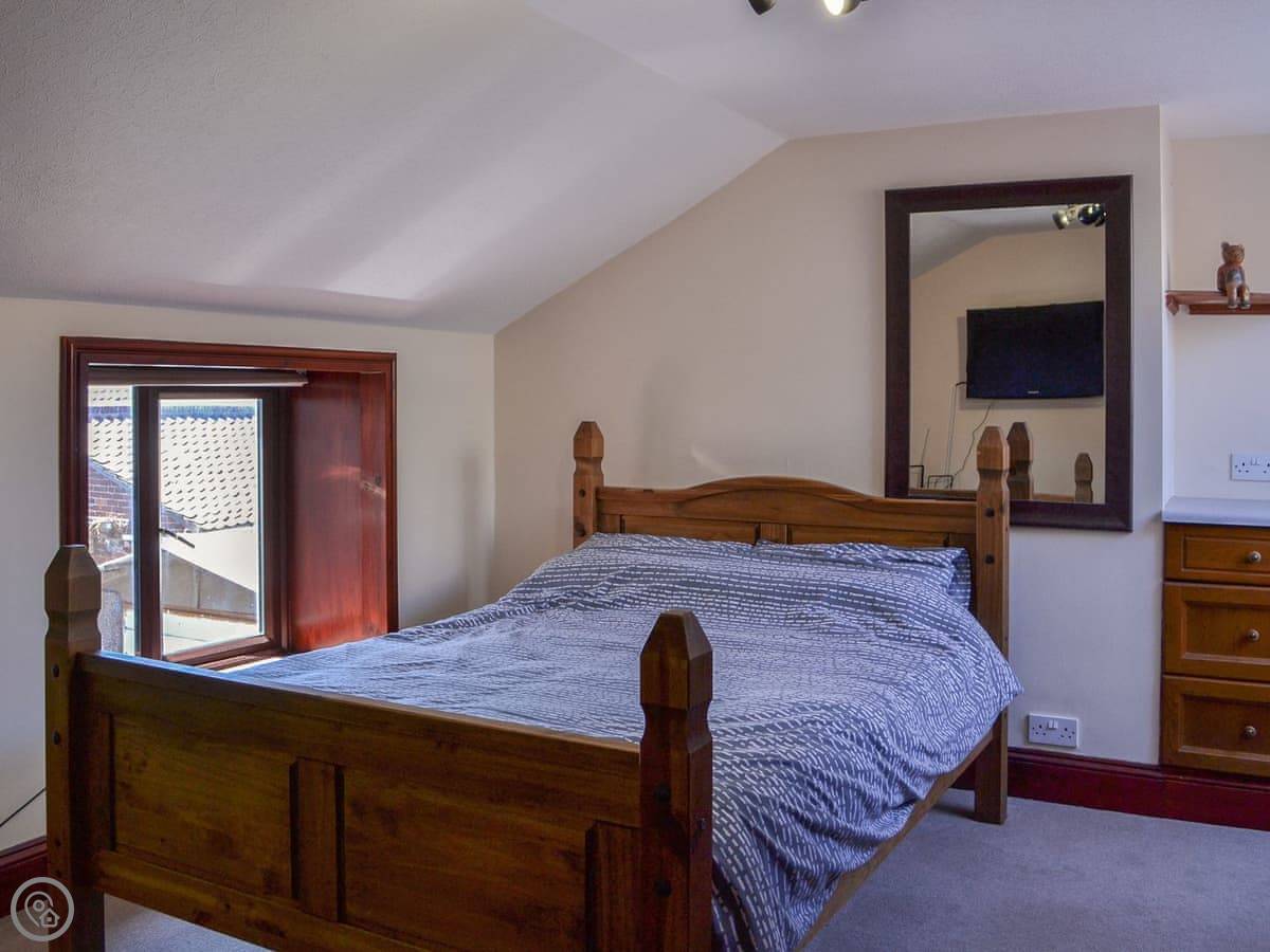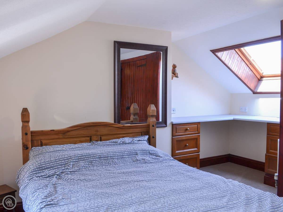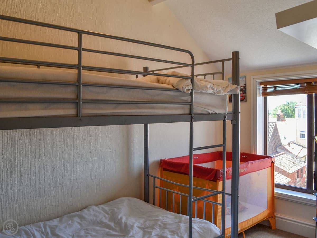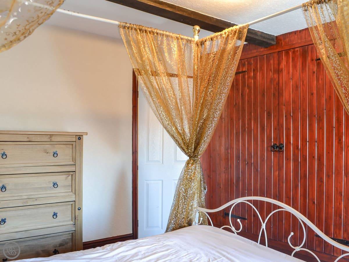It sleeps six with three bedrooms. There are two double rooms and a bunk room for the kids. One of the doubles has a four-poster bed, which is quite nice. You've got one bathroom. It's a 3 Star rating, so it's comfortable and clean. It has everything you need.