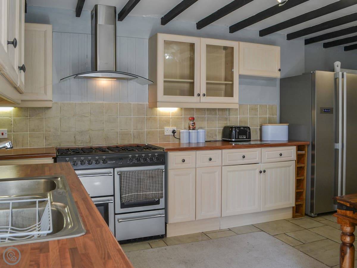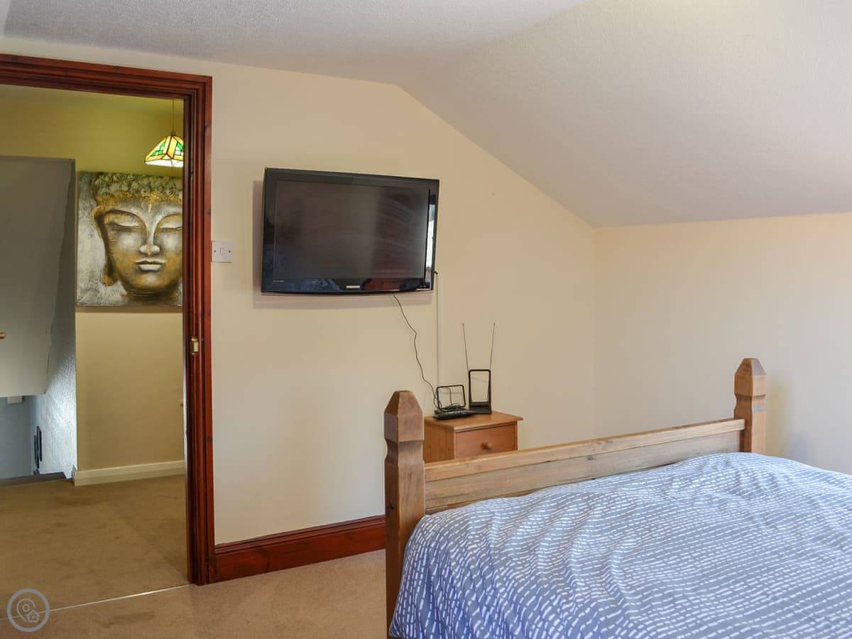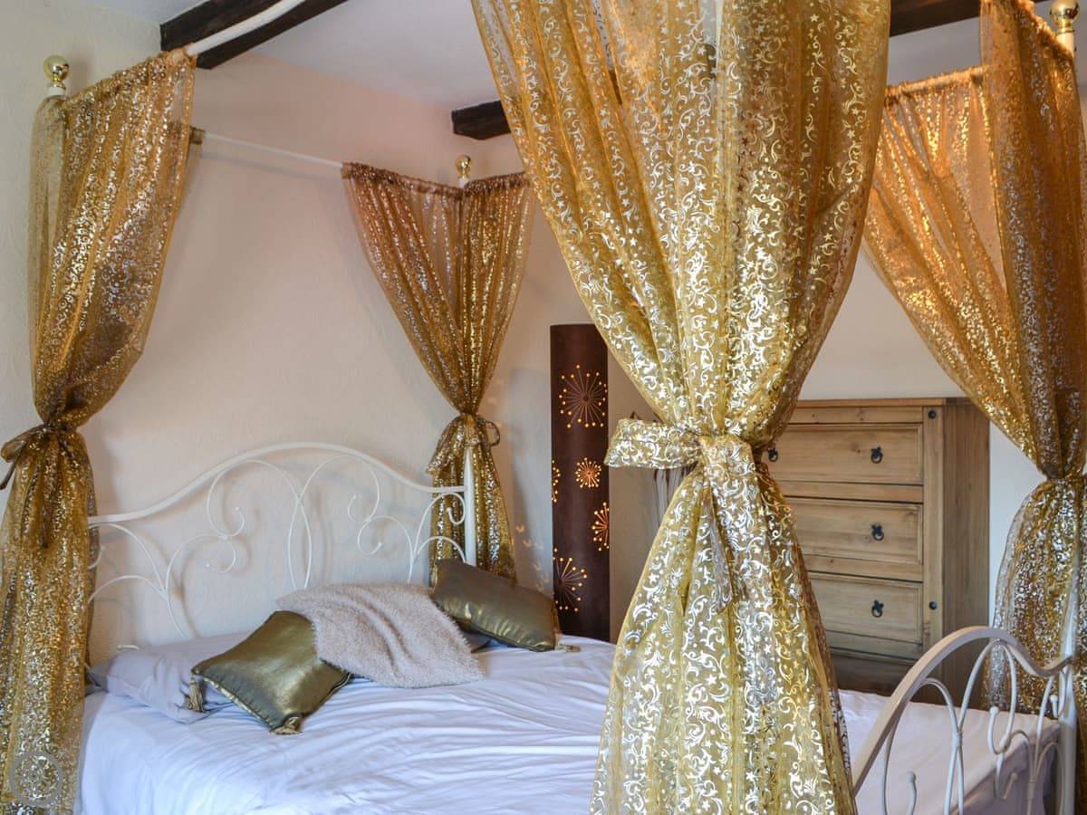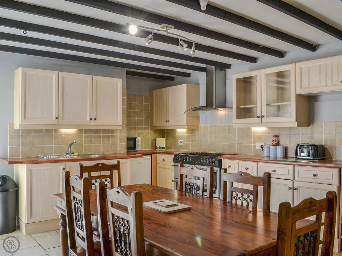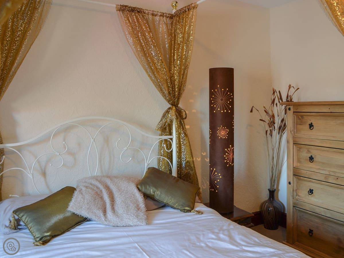 It sleeps six with three bedrooms. There are two double rooms and a bunk room for the kids. One of the doubles has a four-poster bed, which is quite nice. You've got one bathroom. It's a 3 Star rating, so it's comfortable and clean. It has everything you need.