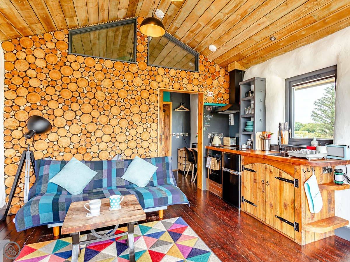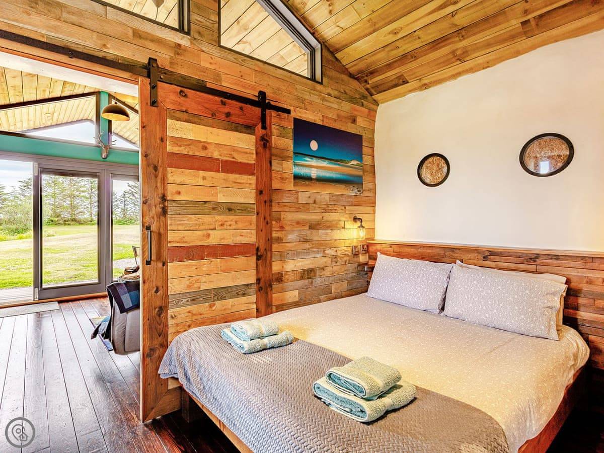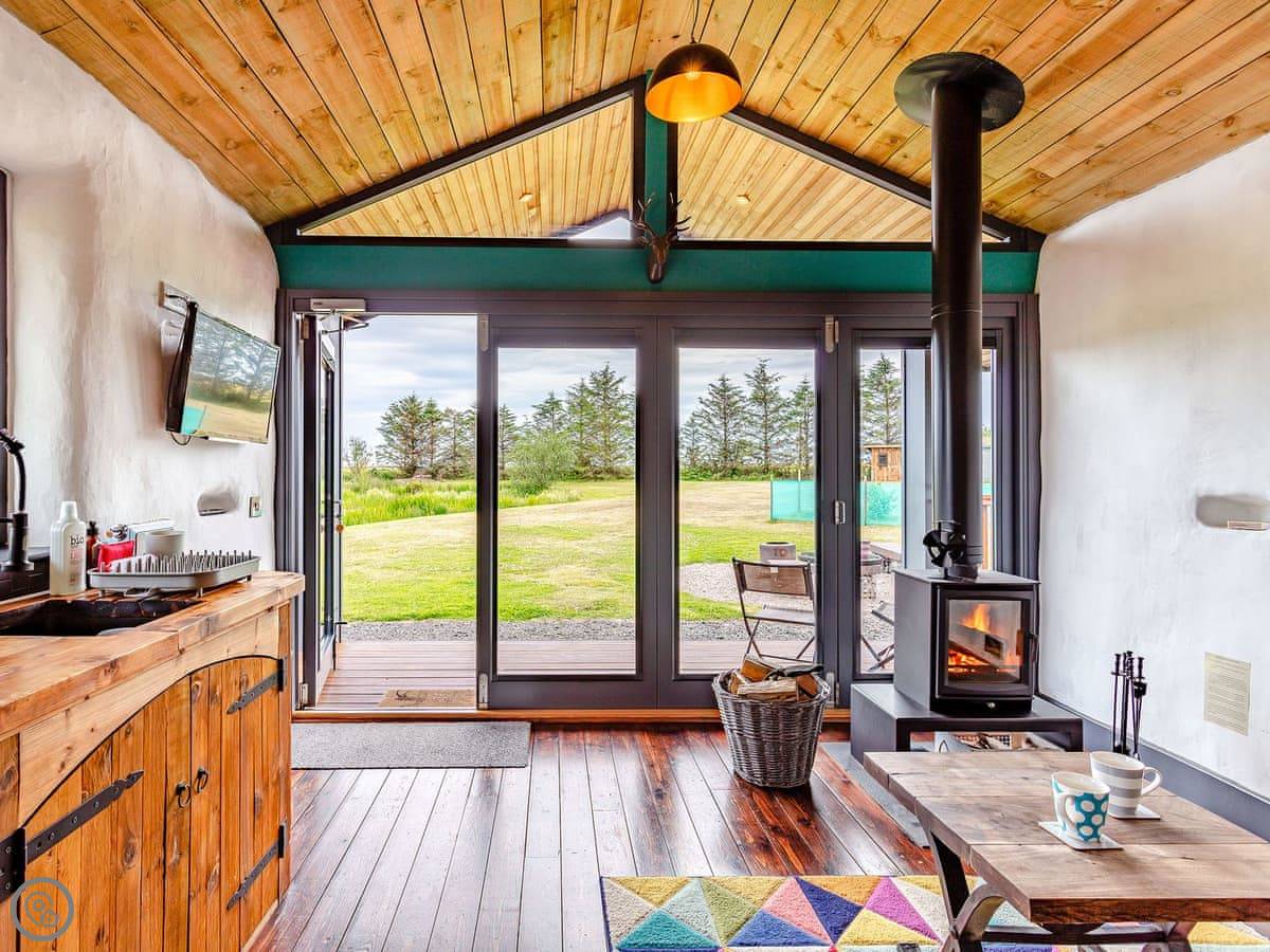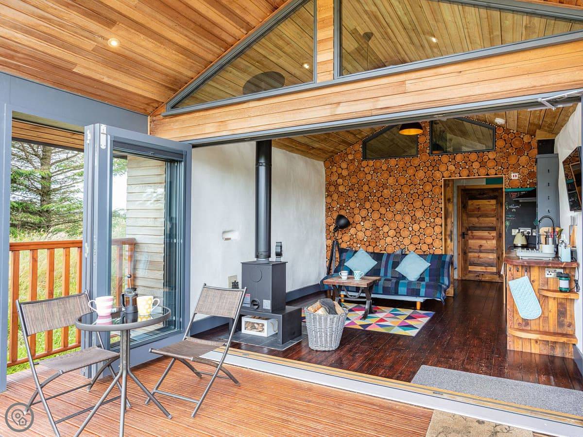Harrier Lodge lies in a stunning location and is perfect for a last minute romantic getaway, a longer winter stay or summer holiday. This living space is a comfortable ‘home from home’ where you can sit back and watch the world go by from the huge floor-to-ceiling windows. This uniquely designed straw bay built lodge provides a lovely space for two people with its cosy king-size bed and en-suite shower room. The lodge has a wood burner, a Smart TV, Wi-Fi and a sofa bed.