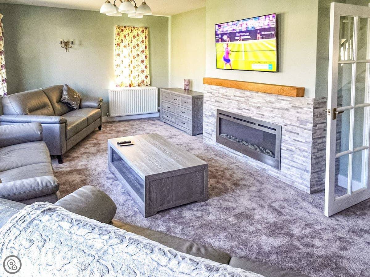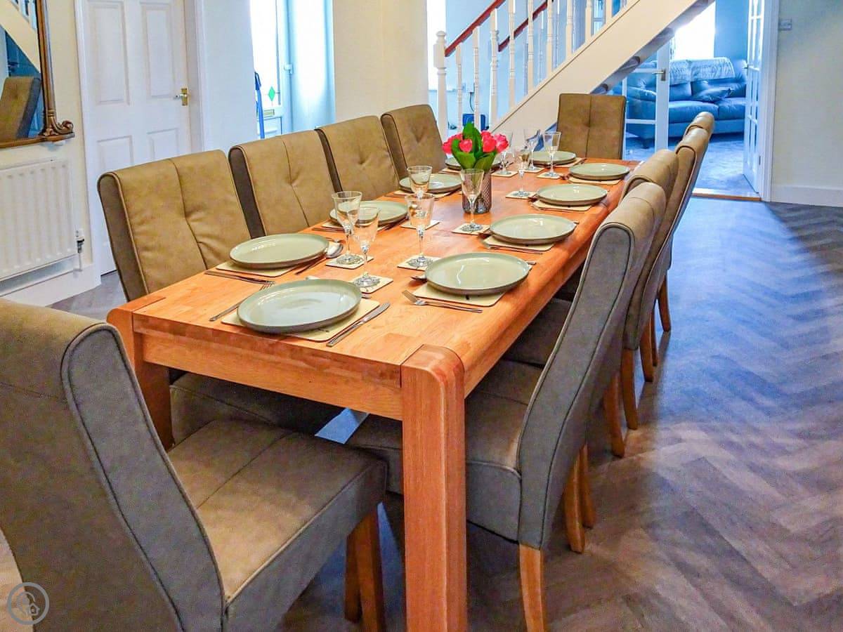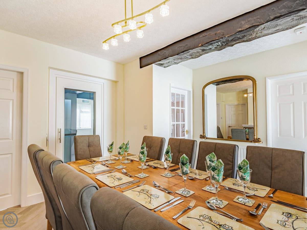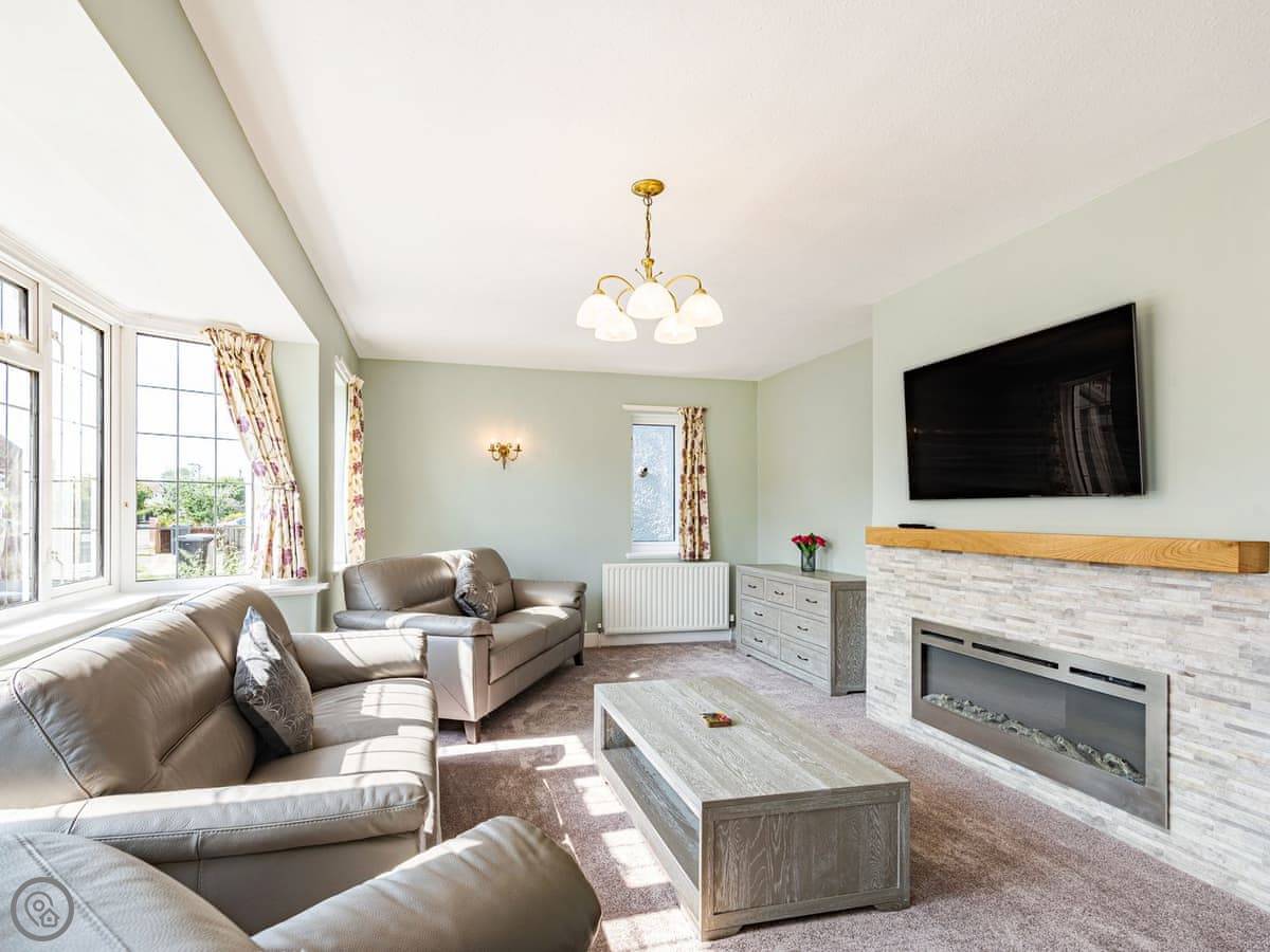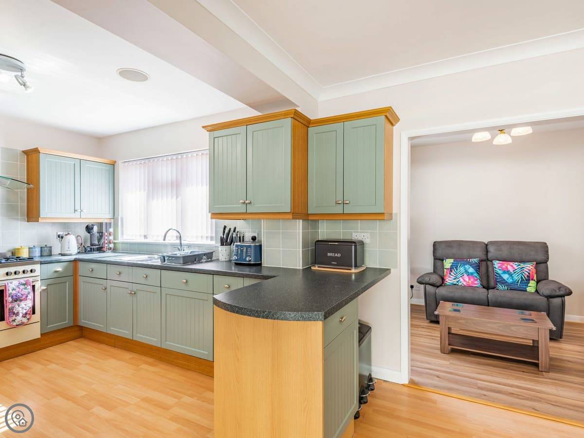 Seacroft Lodge is in Skegness. It's a detached house, so you won't have anyone next door. It sleeps ten, in five bedrooms. There are four bathrooms, which is handy with that many people.