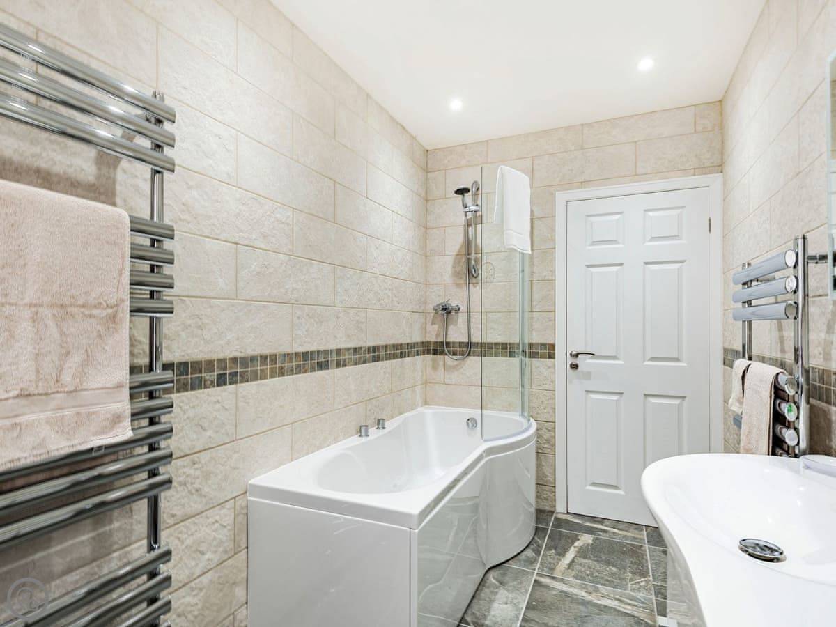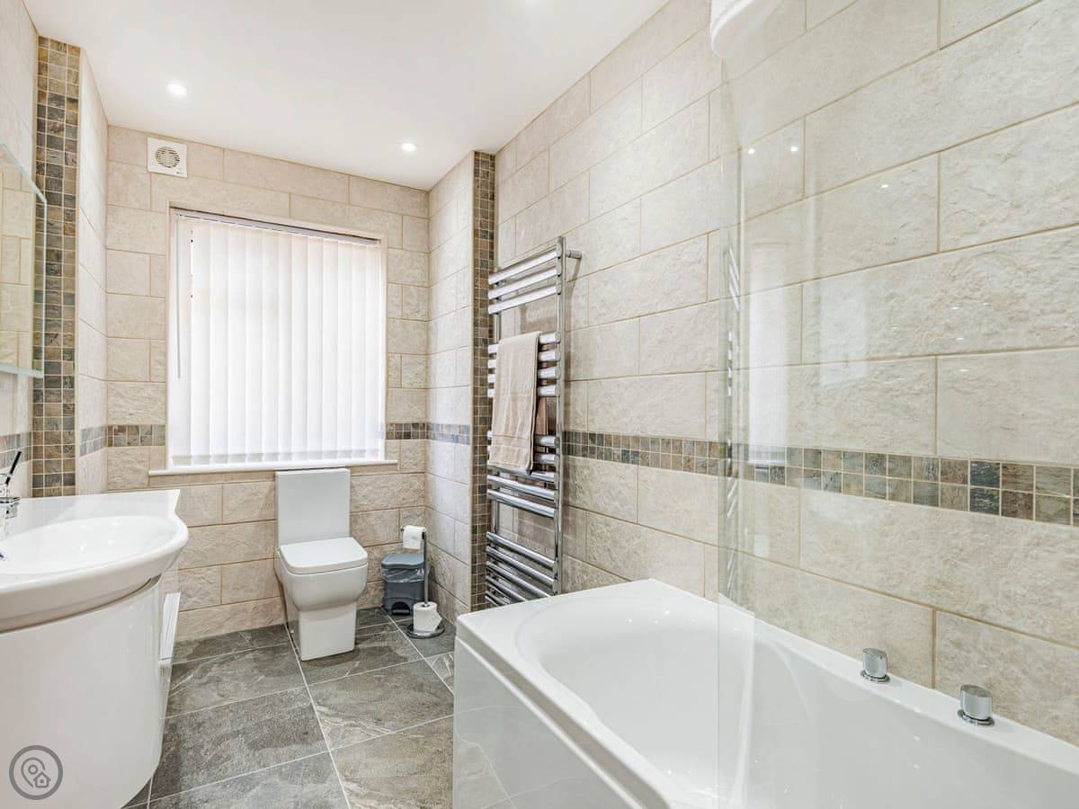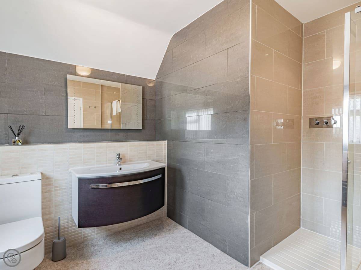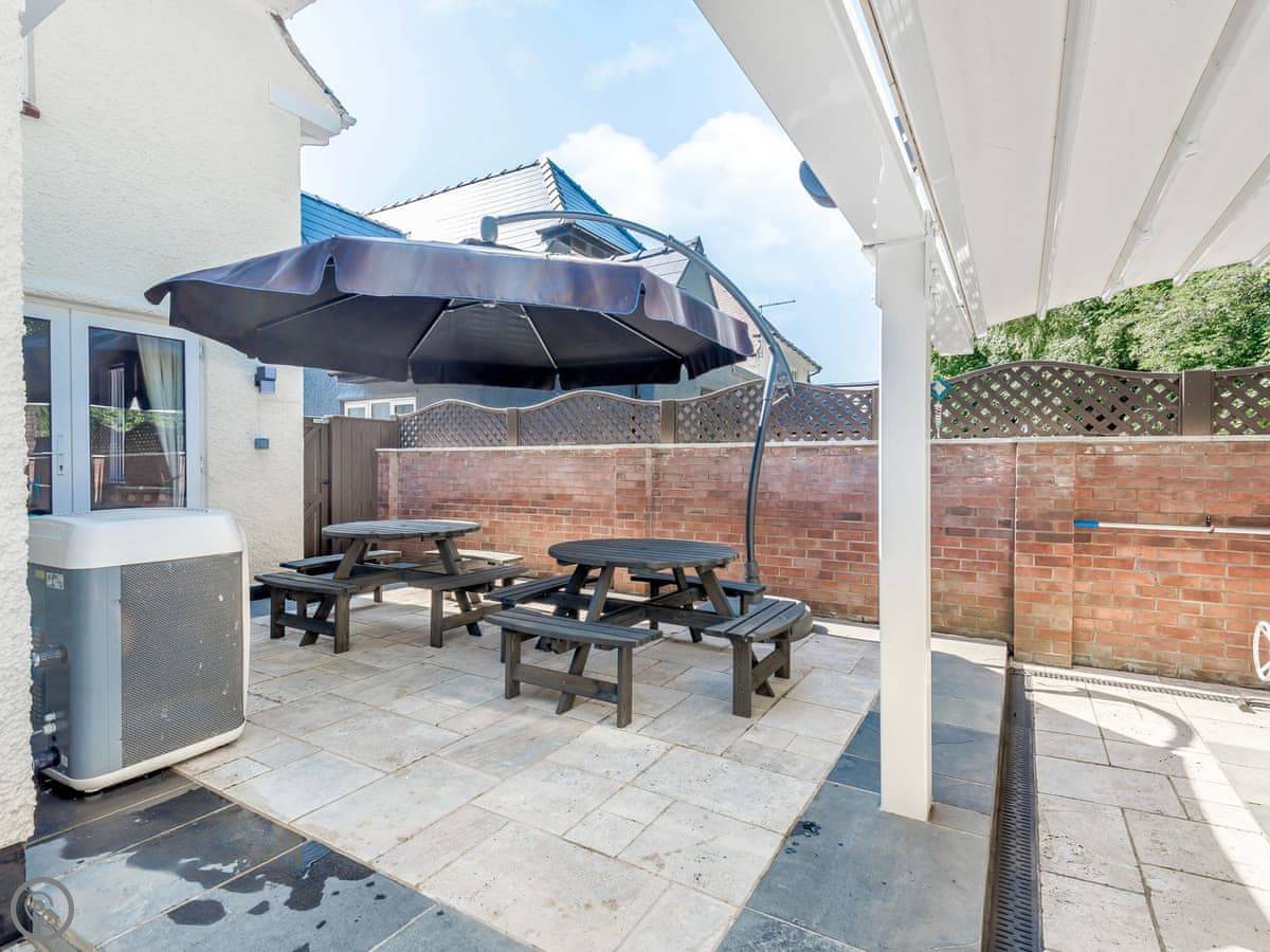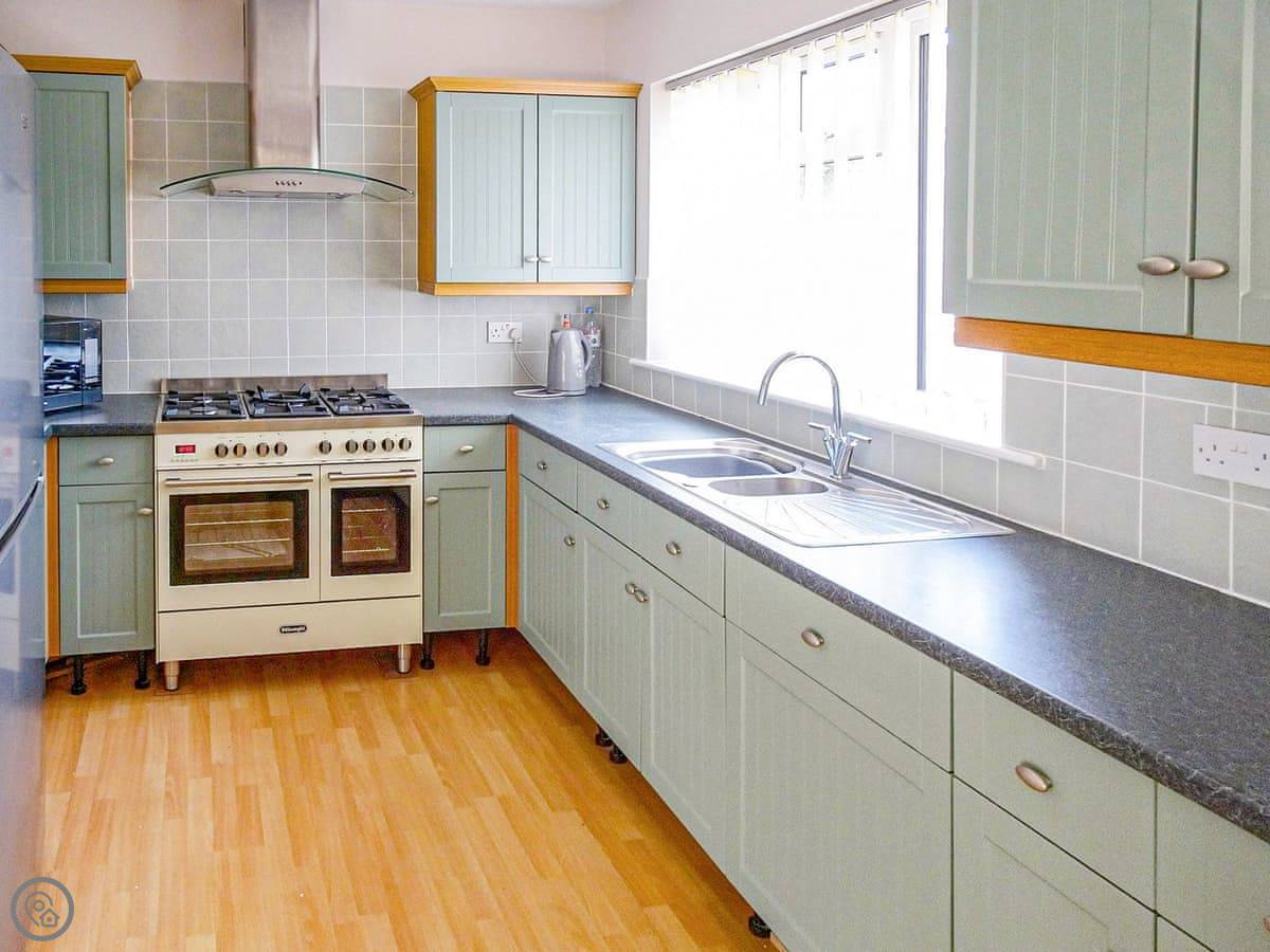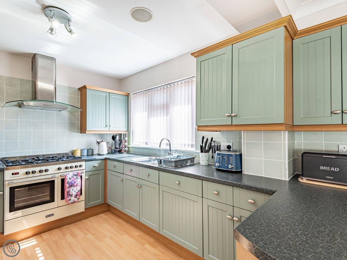 Seacroft Lodge is in Skegness. It's a detached house, so you won't have anyone next door. It sleeps ten, in five bedrooms. There are four bathrooms, which is handy with that many people.