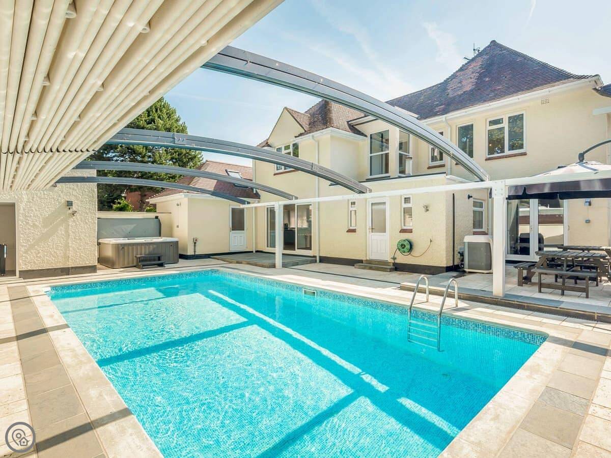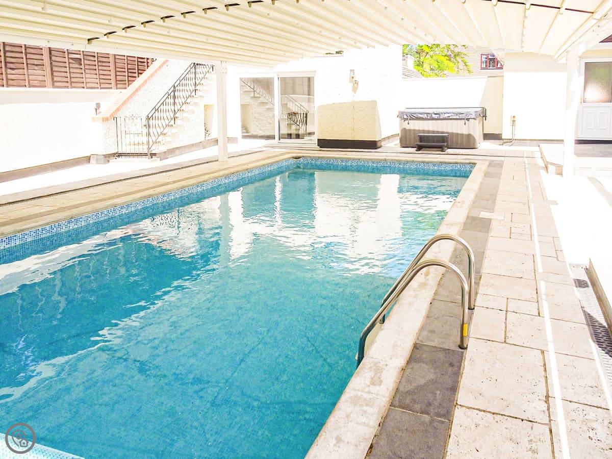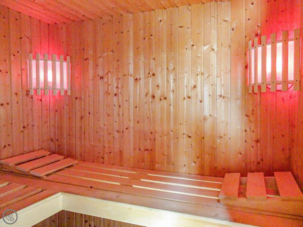 The main thing is the pool. It's heated and undercover, so you can use it whatever the weather. There's a hot tub next to it, and a sauna inside. There's a lift between the ground floor and the first floor. The stairs are normal.