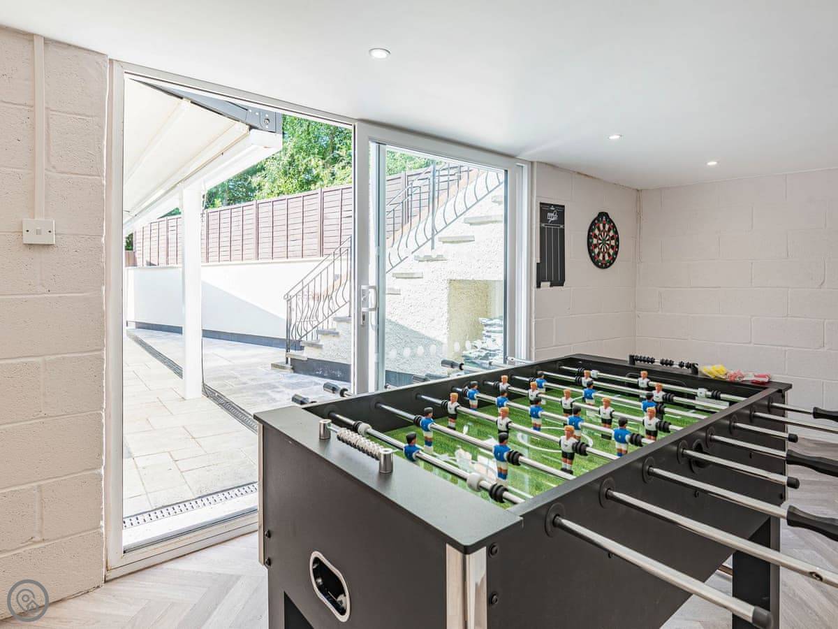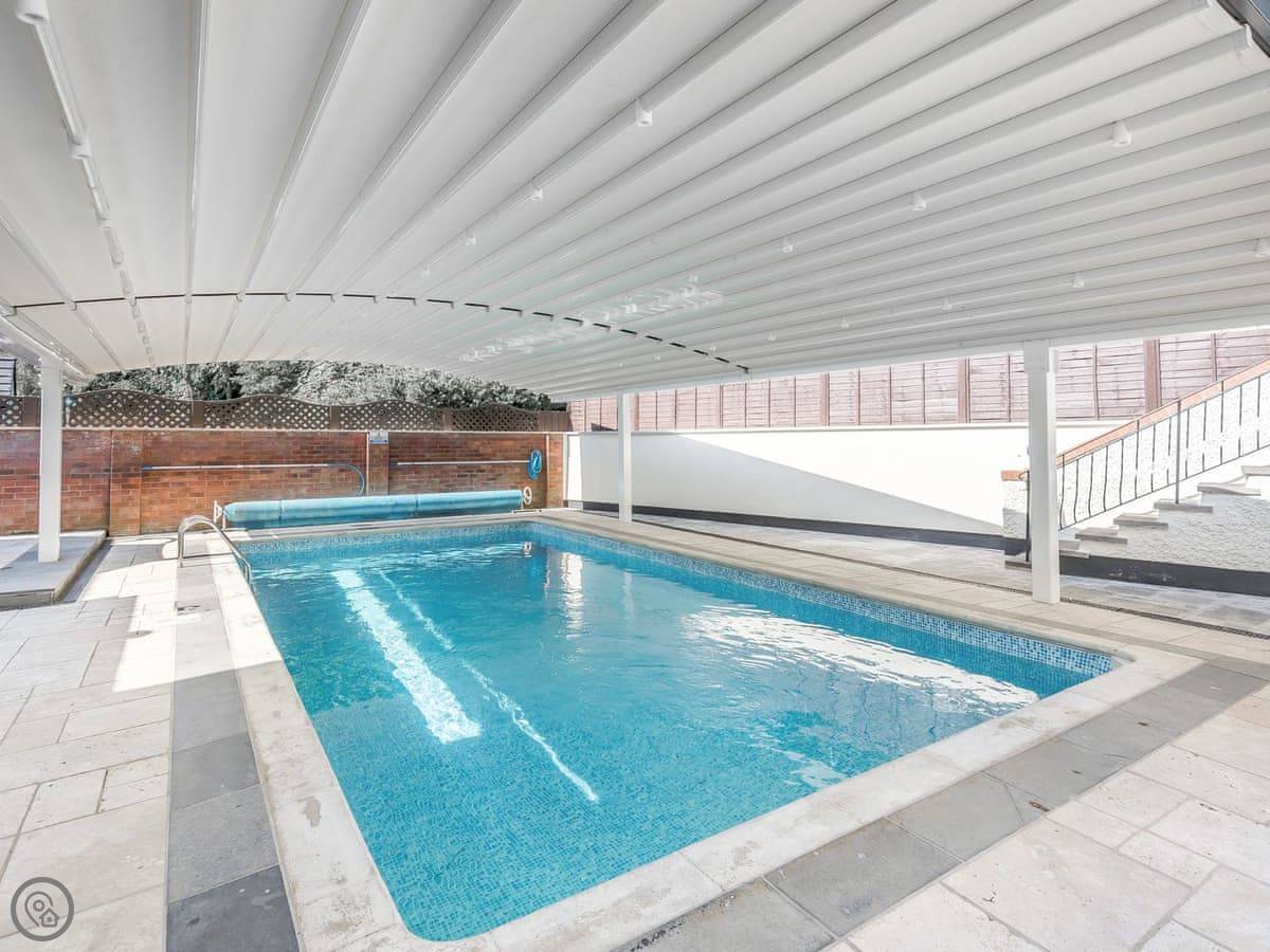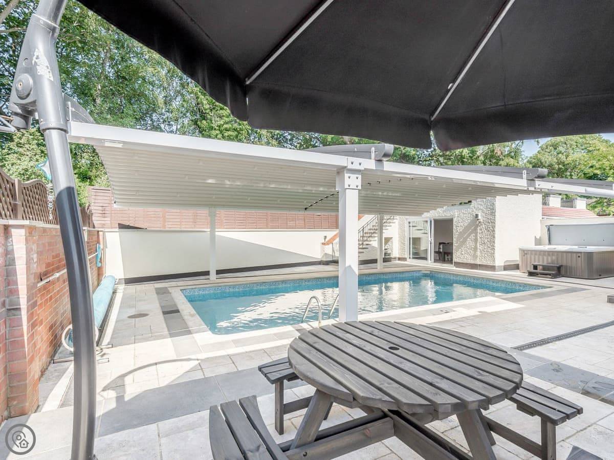 The main thing is the pool. It's heated and undercover, so you can use it whatever the weather. There's a hot tub next to it, and a sauna inside. There's a lift between the ground floor and the first floor. The stairs are normal.