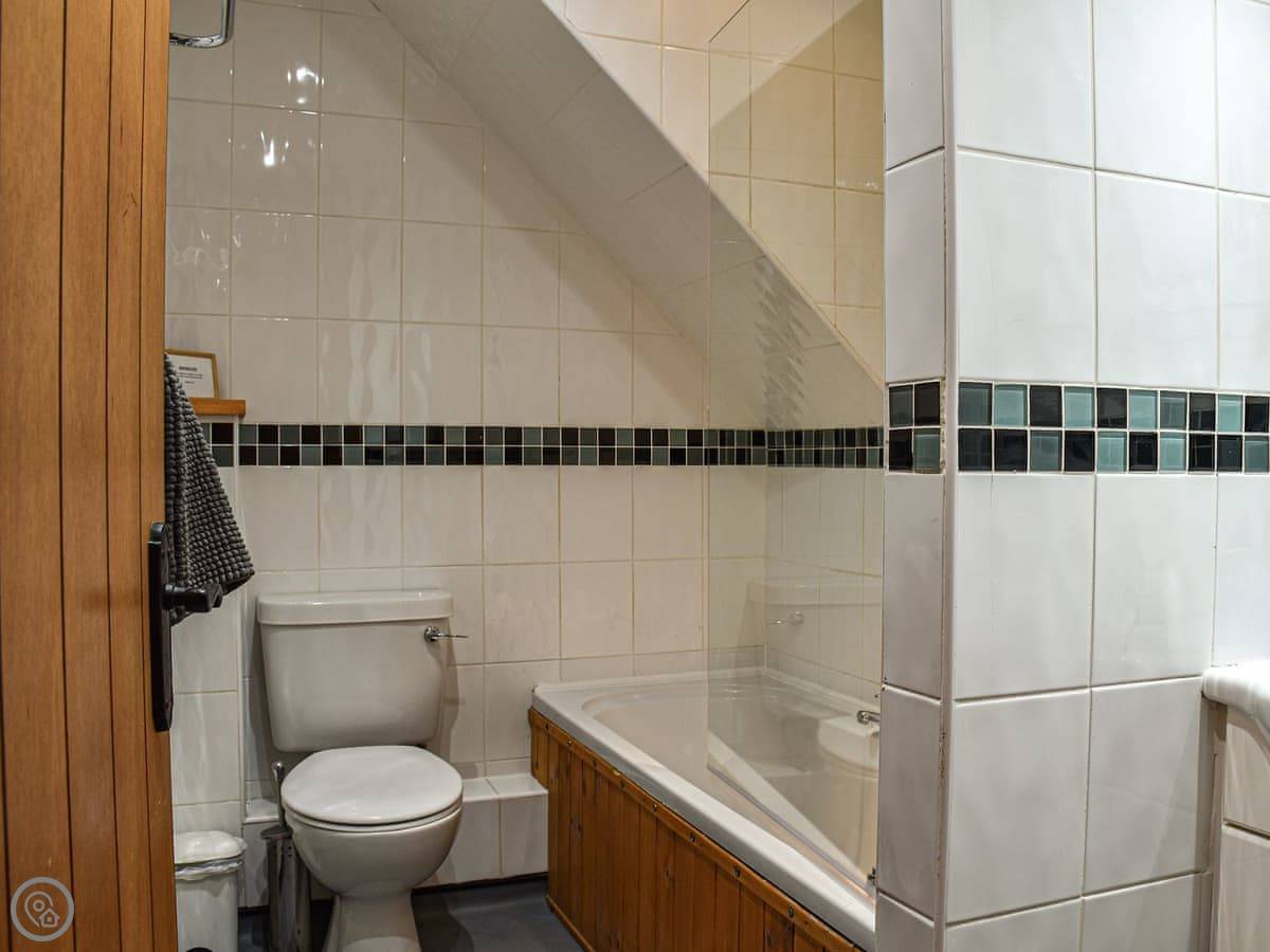 The cottage sleeps six. Three bedrooms, one bathroom. It's got a 4 star rating. It's comfortable and clean. It's on three floors. The ground floor is open plan, with the living area at the front and the kitchen at the back. The top floor is an attic bedroom with twin beds. The stairs are okay, but they are cottage stairs, so watch your head on the way up to the attic.