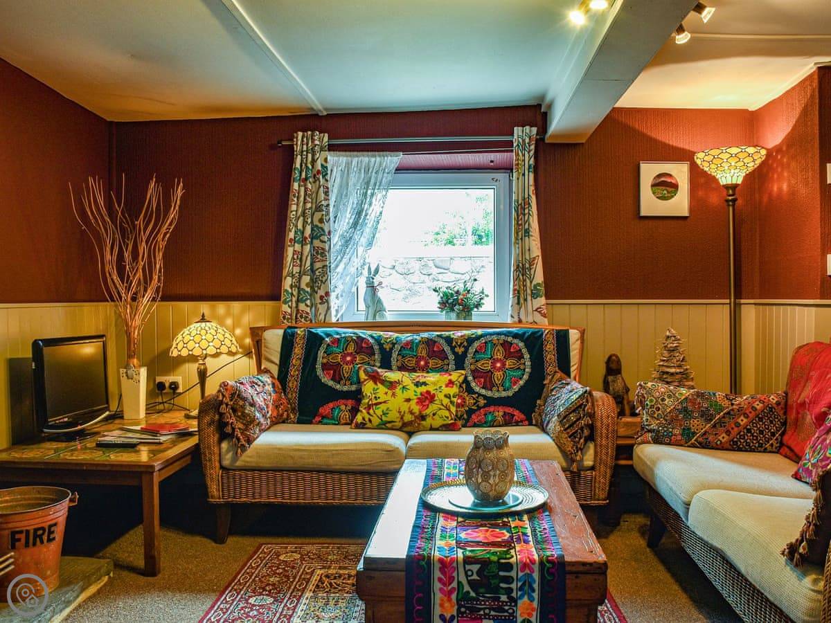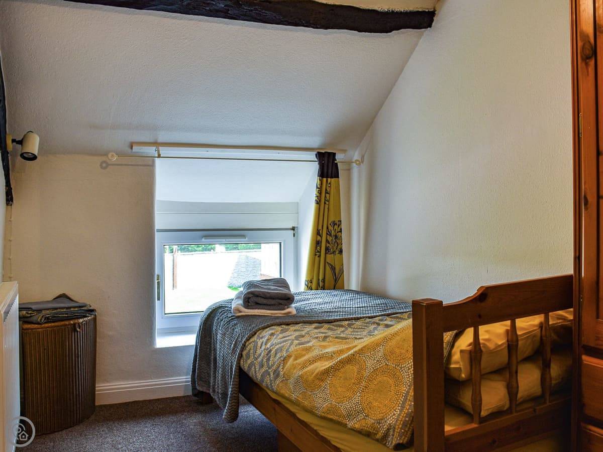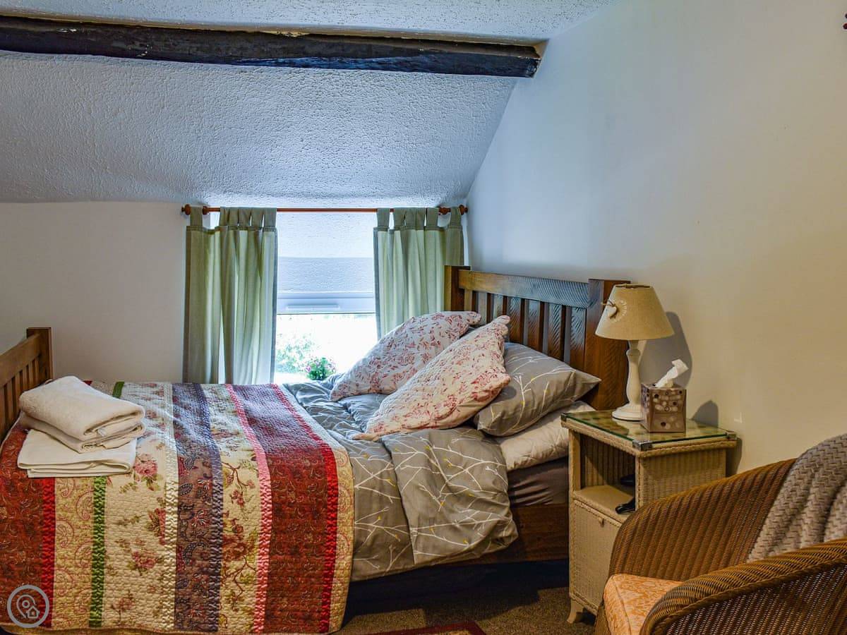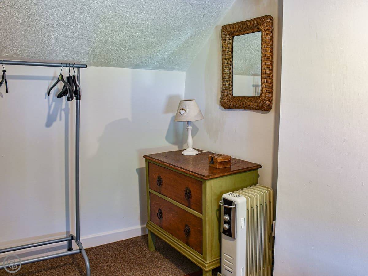 The living room is a warm and inviting place to relax and enjoy a cost evening in, the wood burner fuels the central heating, and there are electric heaters throughout the property as well. There’s a compact but well-equipped kitchen with access to a small outside courtyard. The bathroom is also on the ground floor and has a bath with shower over, toilet and wash hand basin. Upstairs are two bedrooms, one double bedroom with a bedside table, chest of drawers and a hanging rail, the second bedroom is a comfortable single. Across the way is your own garden space to enjoy. Set up with a decked seating area and firepit, you can make the most of the good weather and enjoy relaxing outside. There’s also a lockable shed that houses the wood supply for Mill Cottage and can be used to store bicycles or other outdoor kit. Just in front of the shed is the parking spot for this property – space for one car here. There is additional on road parking available at the end of the lane on the common, if required.