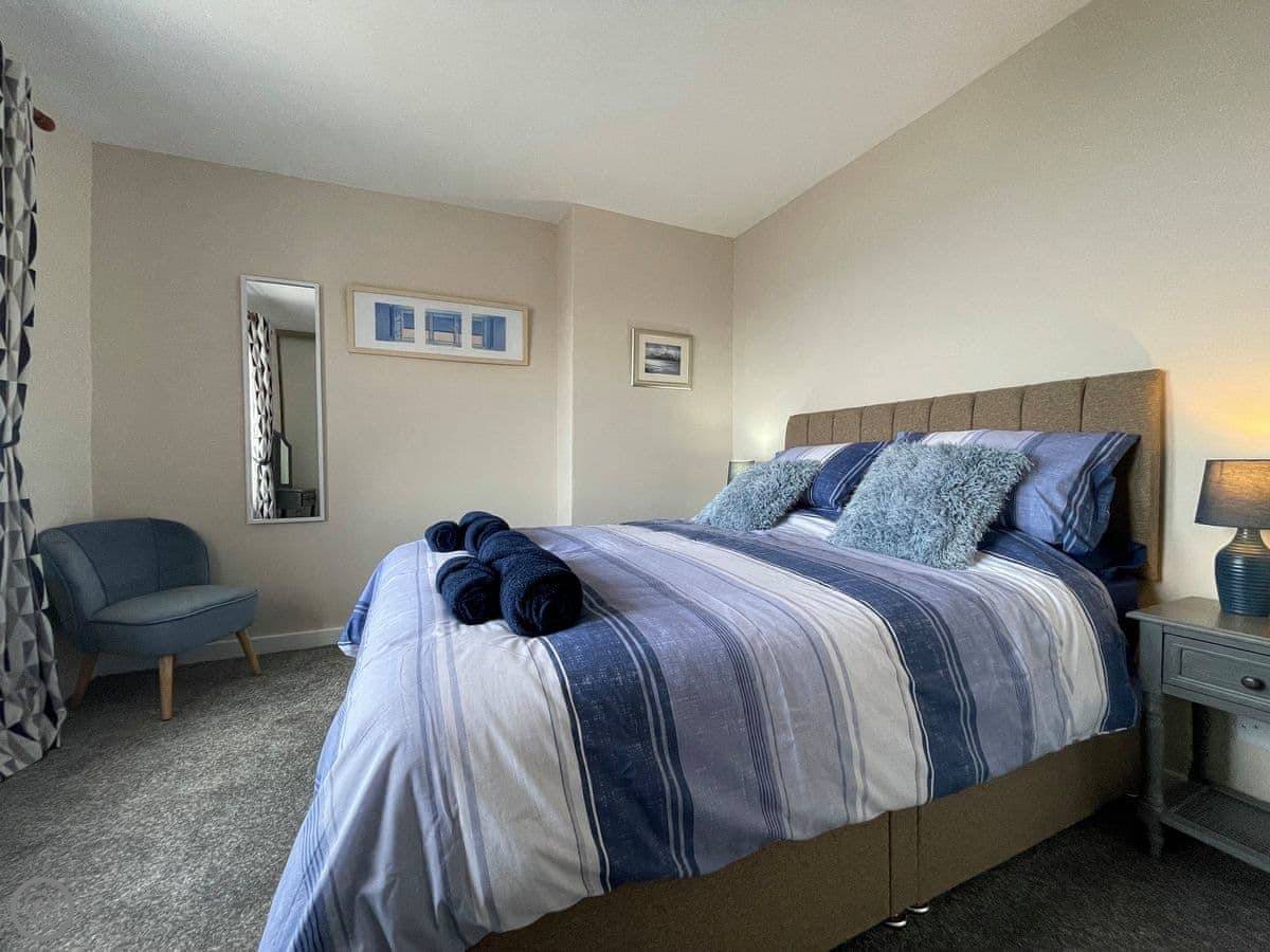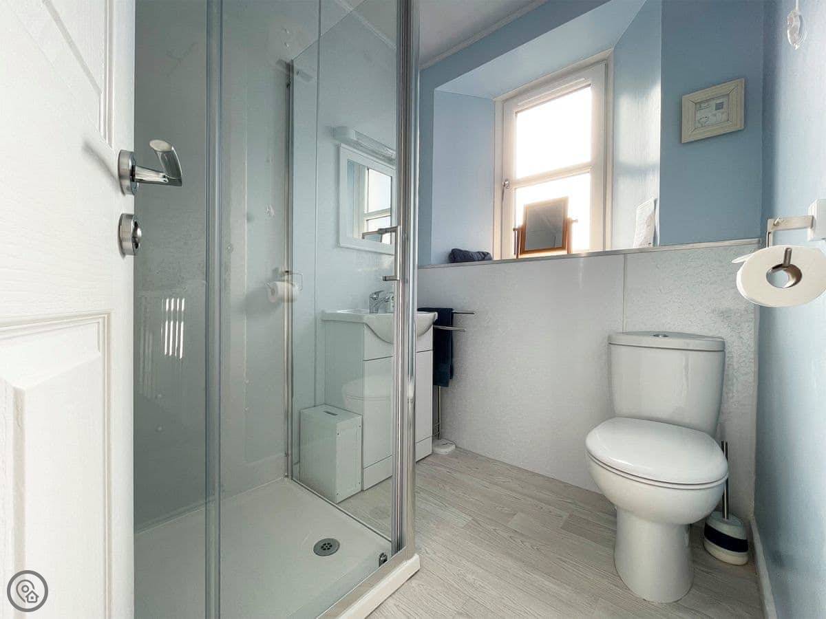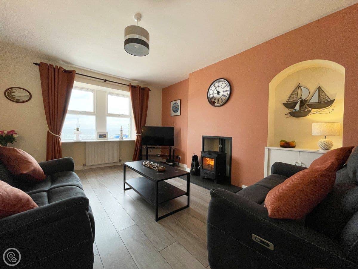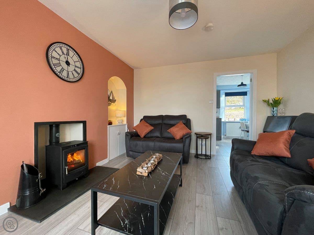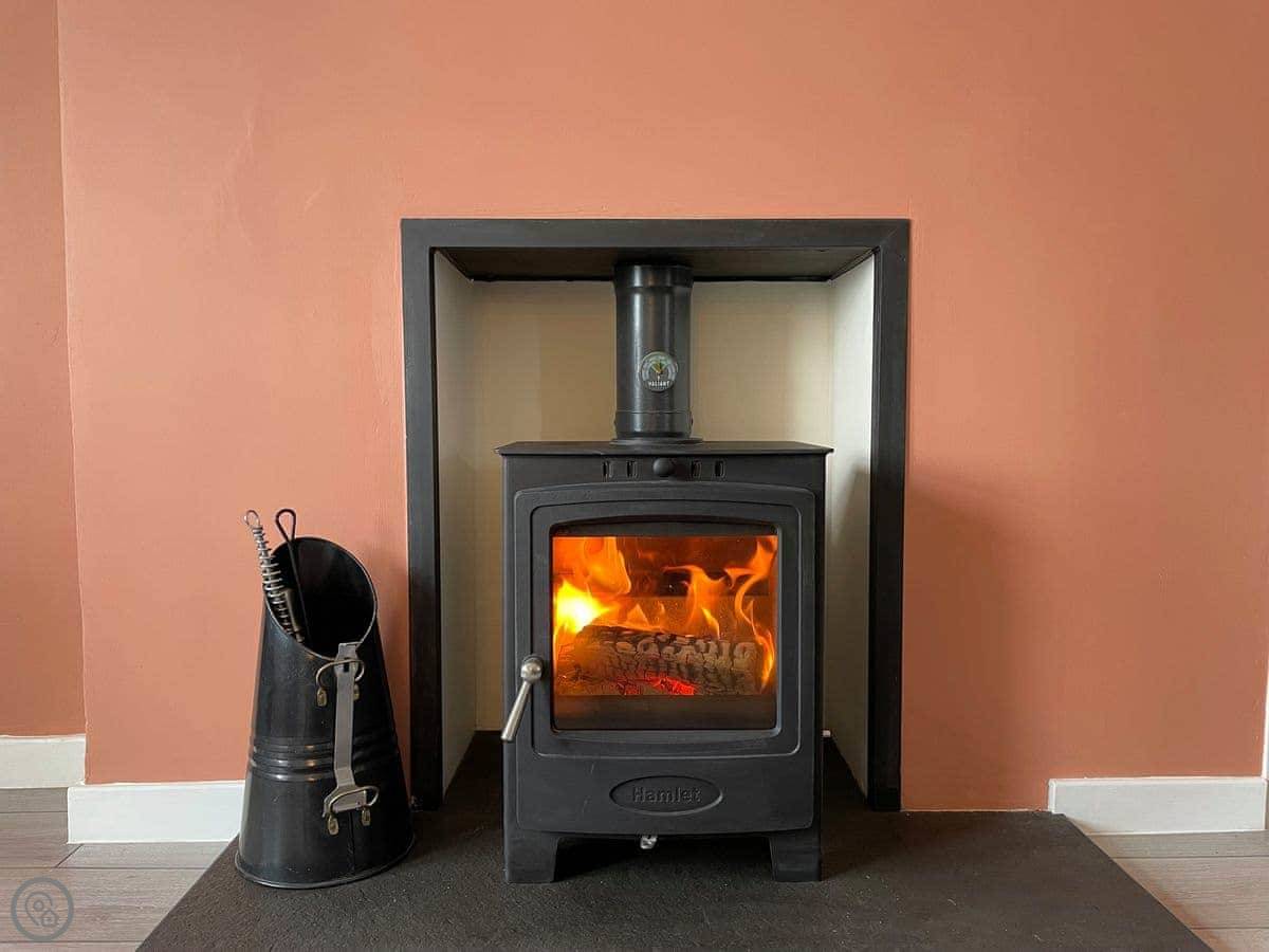 It sleeps four. Two bedrooms upstairs and one bathroom. It's got a 4 Star rating. The heating is electric, and there's a wood-burning stove in the living room. You'll need to bring your own wood or buy it locally. The WiFi works.