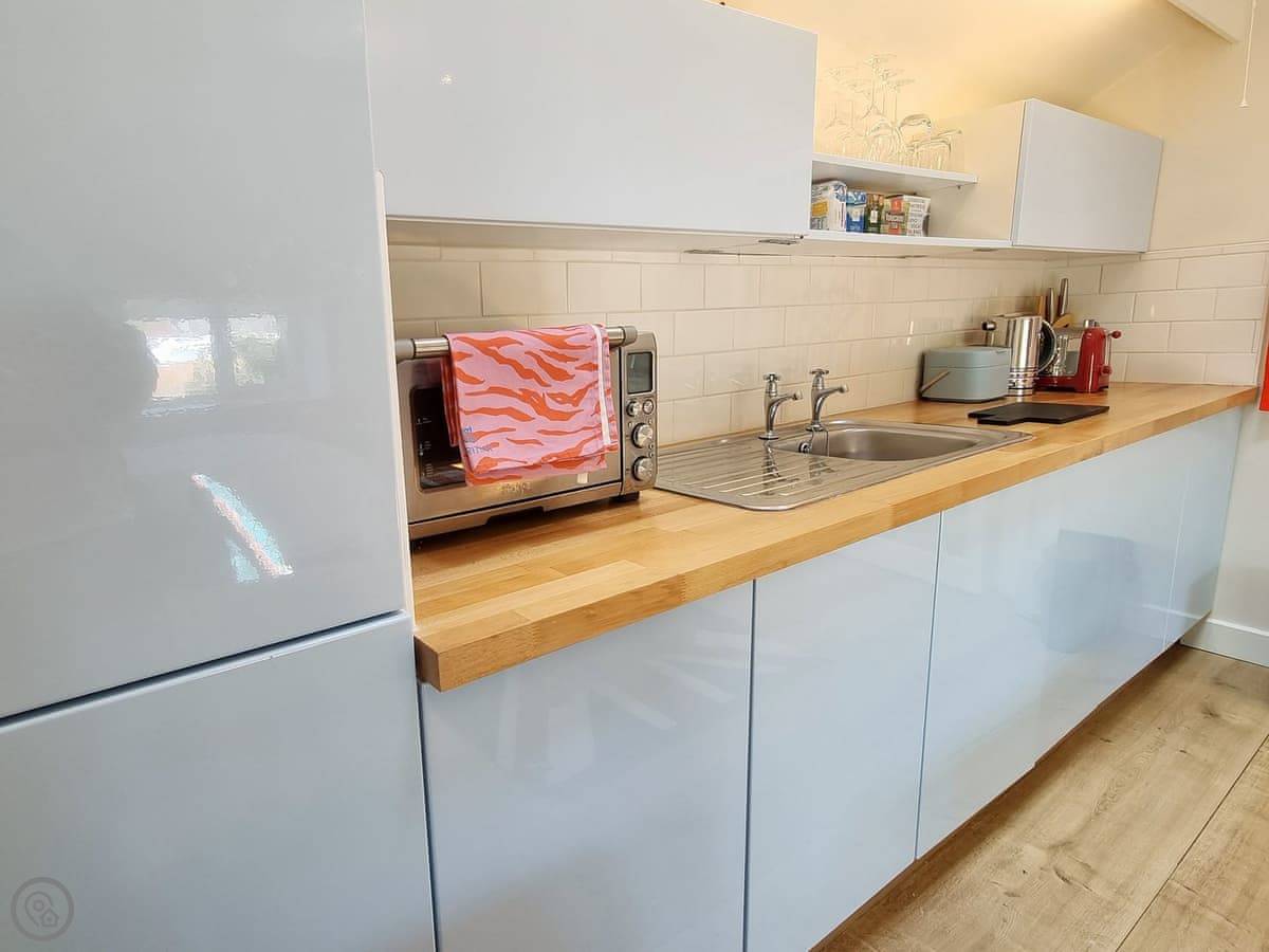 Head up the drive and through the wooden gates to The Piggery. Outside you have a private gravelled courtyard with bistro seating, perfect for relaxing with a glass of wine after a day out exploring, there is also a free to use electric vehicle charging point. Inside, you have an open plan living/kitchen/bedroom, the vaulted ceiling adds to the feeling of space and the Velux windows are great for star gazing at the dark skies above. The kitchen is well equipped with fridge/freezer, Sage mini oven, microwave, air fryer and induction hobs, while the living area has a comfortable sofa, DAB radio and a selection of apps on the Smart TV including Netflix, Amazon prime, Sky news and others. The bedroom area has a comfy double bed with high quality bedding and views over a private garden, and there is a shower room off the hallway. Your four legged family member is more than welcome to stay with you free of charge at The Piggery, and will enjoy the miles and miles of plentiful walks around the Cam Valley from your doorstep!