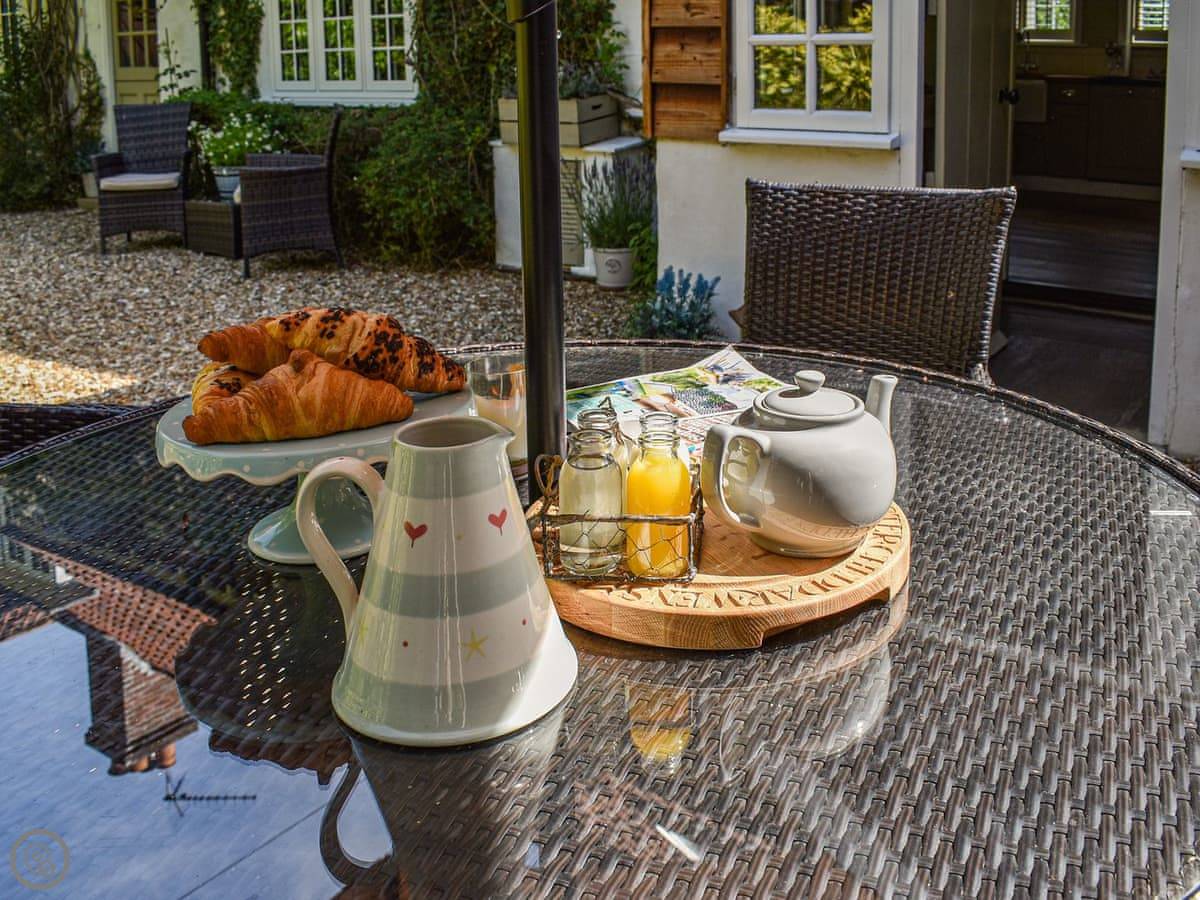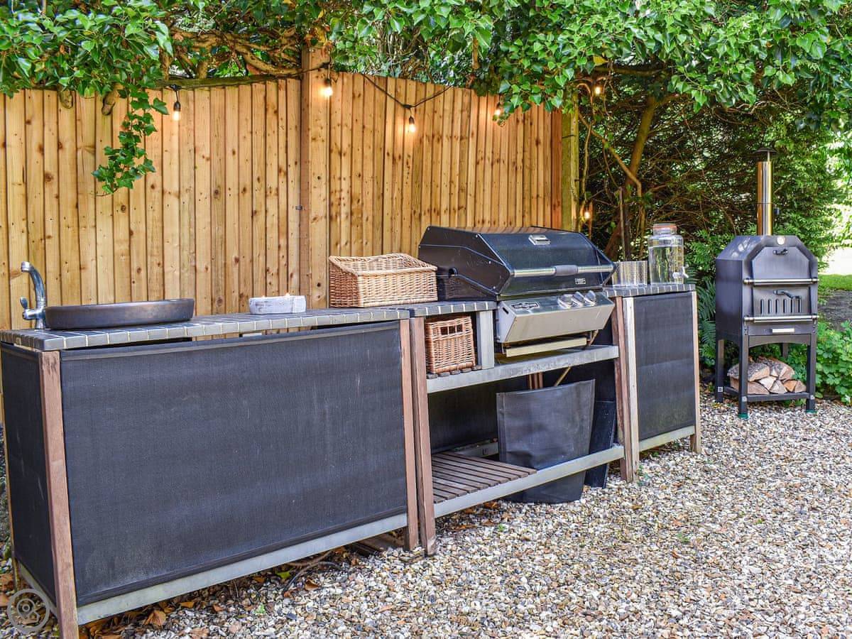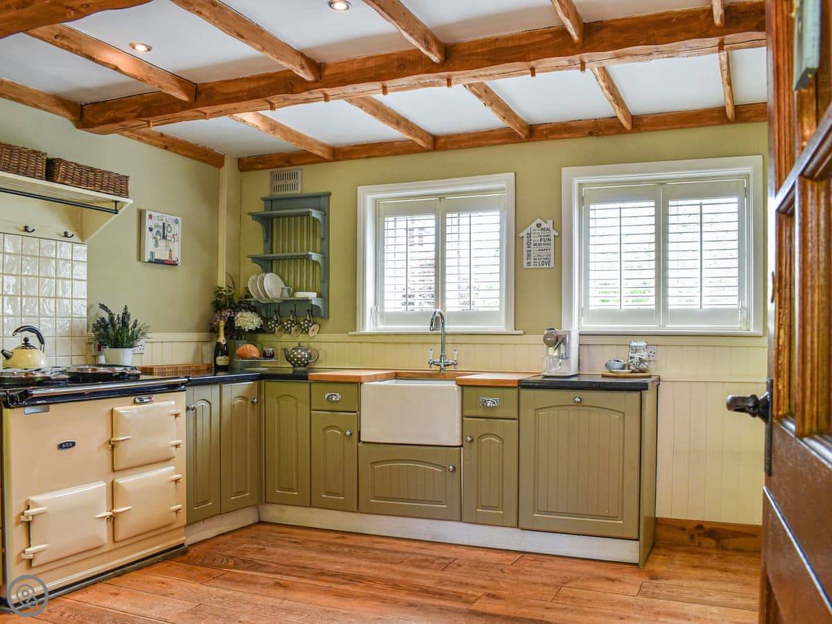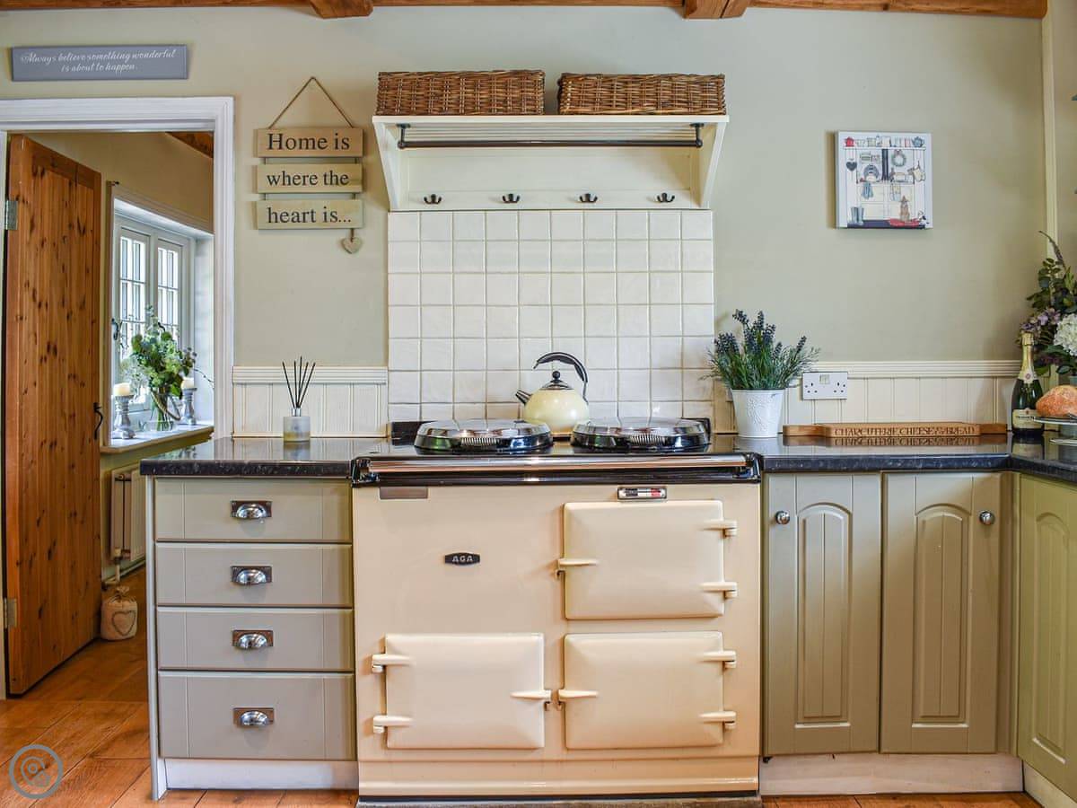 The stairs are narrow and steep. There's an Aga in the kitchen. It also has a separate outdoor kitchen area with a BBQ, which is handy.