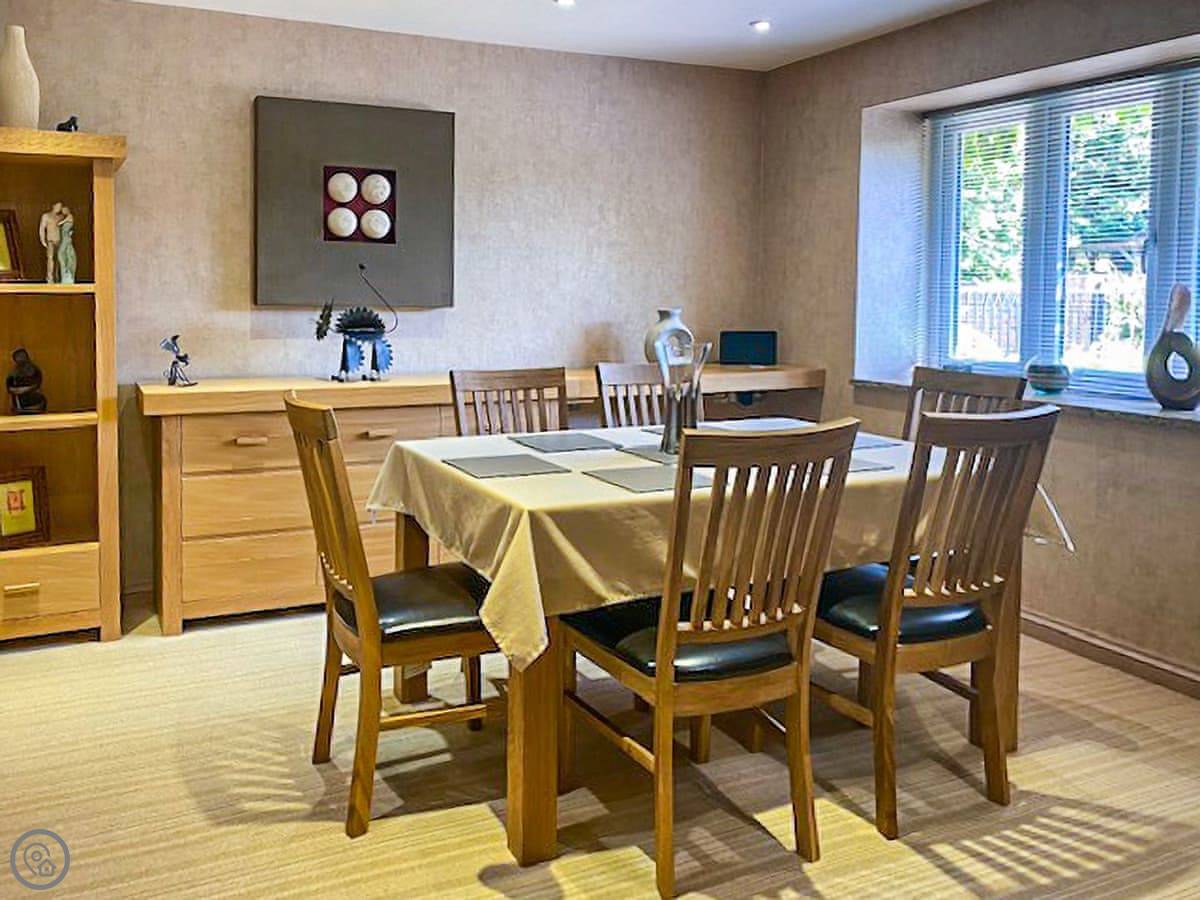 It sleeps six. There are four bedrooms, two are en-suite doubles. Two bathrooms in total. There's a south-facing lounge and a separate kitchen diner. The whole place was done up recently, so it's in very good condition. It has a 5 Star rating.