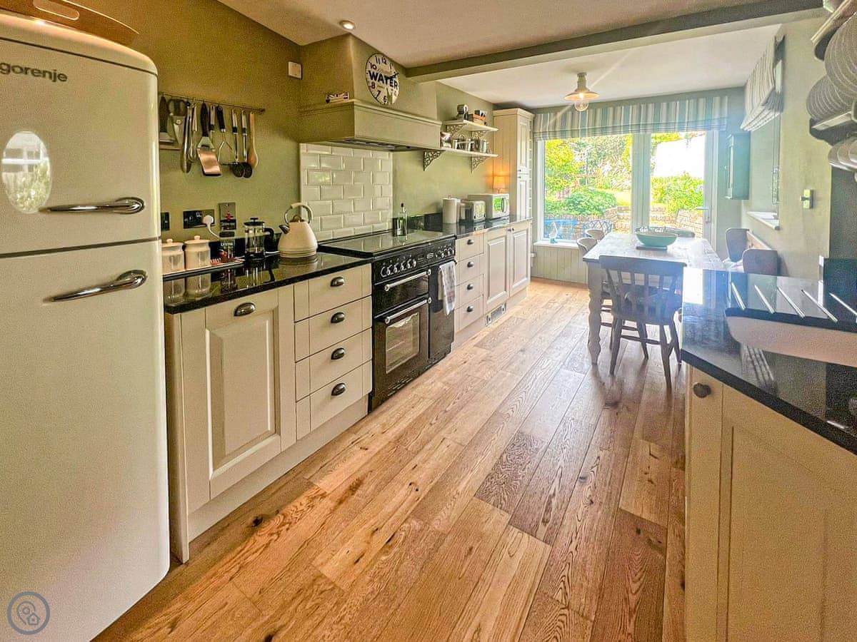 Facilities: there's a woodburning stove, a washing machine, a dishwasher. Bedding and towels are included. There's a cot and a highchair if you need them.